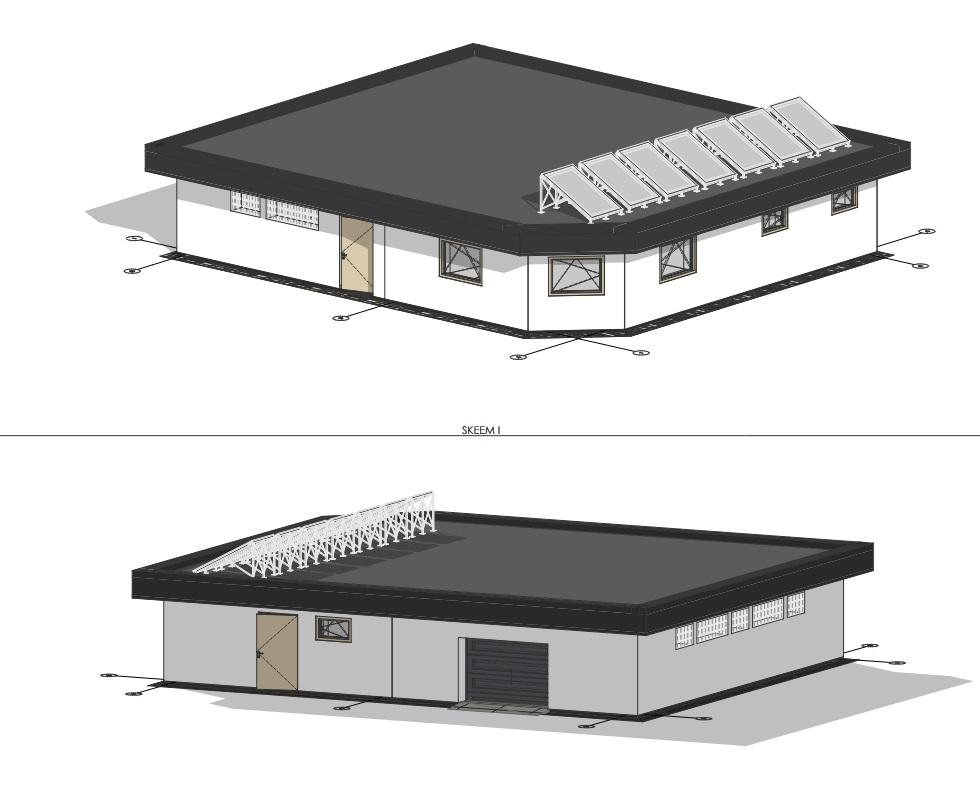 Plaanis on plaatvundament soojendusega + lintvundament mitteköetavas osas. Seinad FIBO plokk. Katus puit ja bituumenkate, soojendus.