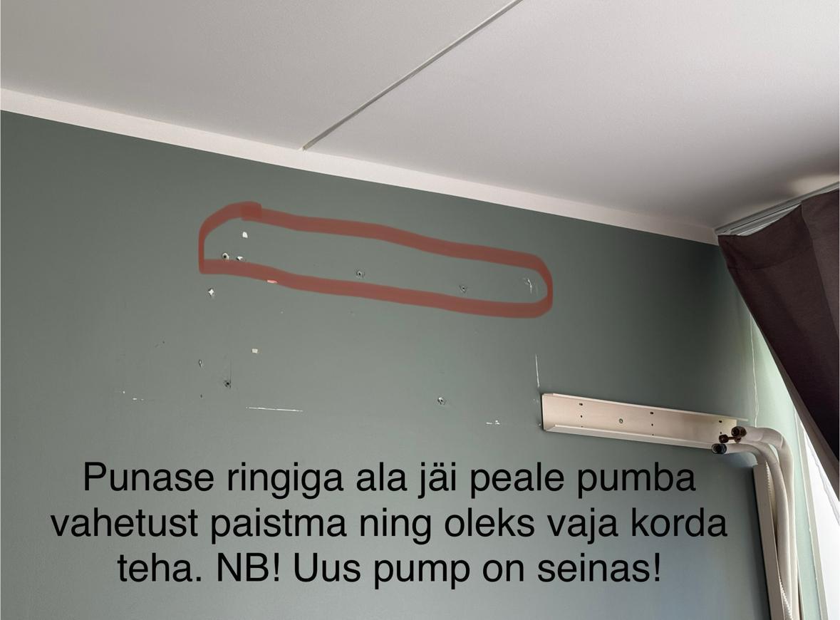 Vaja oleks teha väikseid värviparandusi, mis tekkisid peale õhksoojuspumba vahetamist ja on lae all (lihvida - värvida).