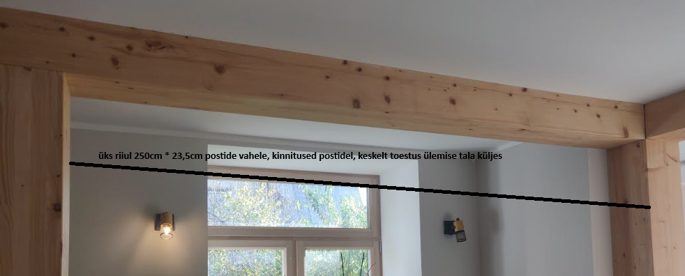 Pakkumine koostatud materjaliga mis saadud küsitluse info põhjal. Seega 28mm liimpuit mis kas üle lakkida või õlitada. Riiul peab jääma matt. Kandurid võimalikult seina tooni. Sama tooni nagu sein kindlalt ei saa. Paigaldusel selgub kas postist seinani riiuleid tuleb 2 või 3 tk. Enne võitja välja kuulutamist palun eravestluses leppida kokku aeg millal töödega võimalus alustada. Edu hankes! |