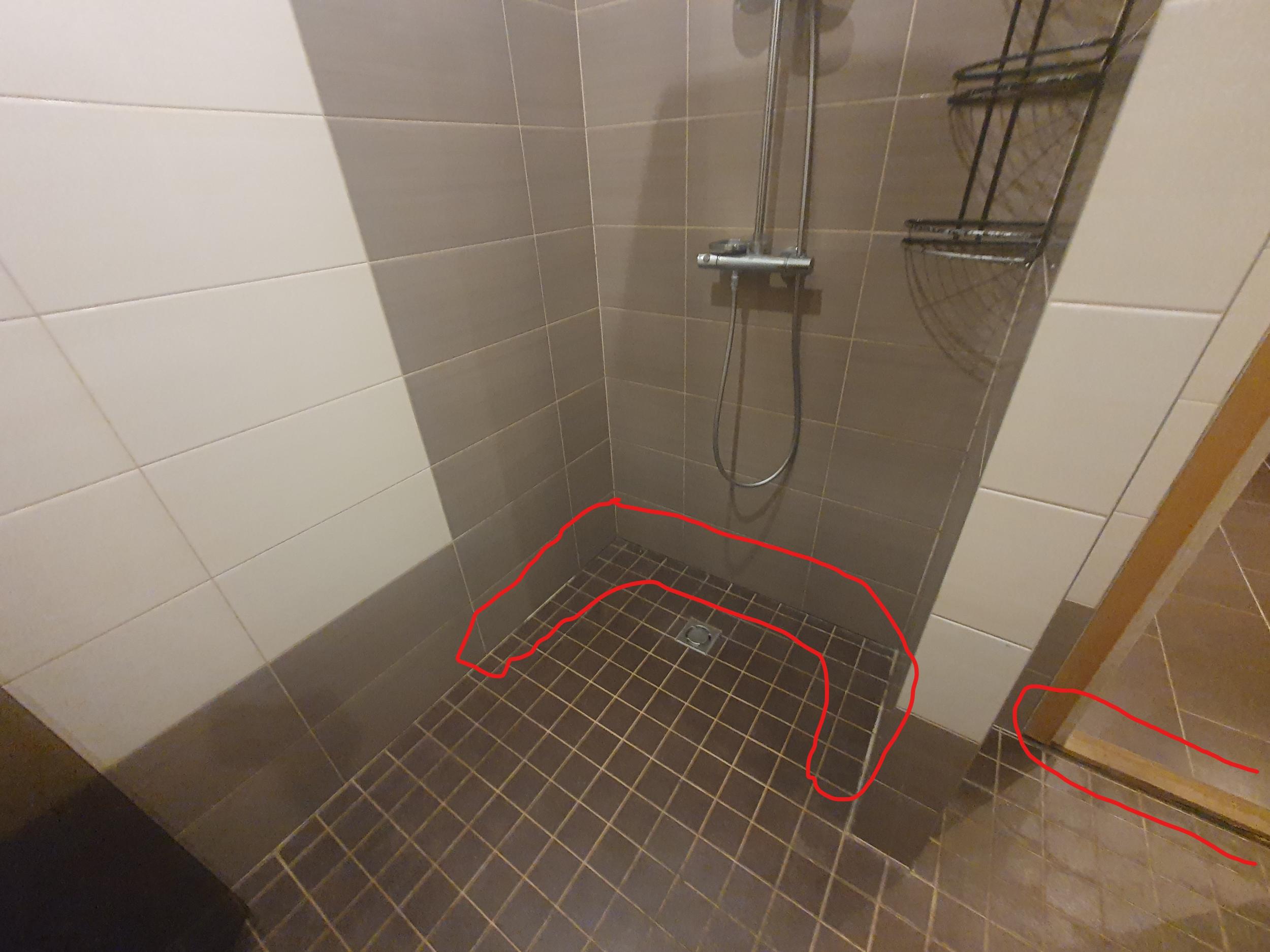 - Töö eesmärk on üle vaadata, kas sinna piisab lihtsalt uue silikooni panemisest või peab sinna midagi muud tegema (põranda ja seina plaatide vaheline vahe on üsna sügav) ning vastavalt ka ära teha