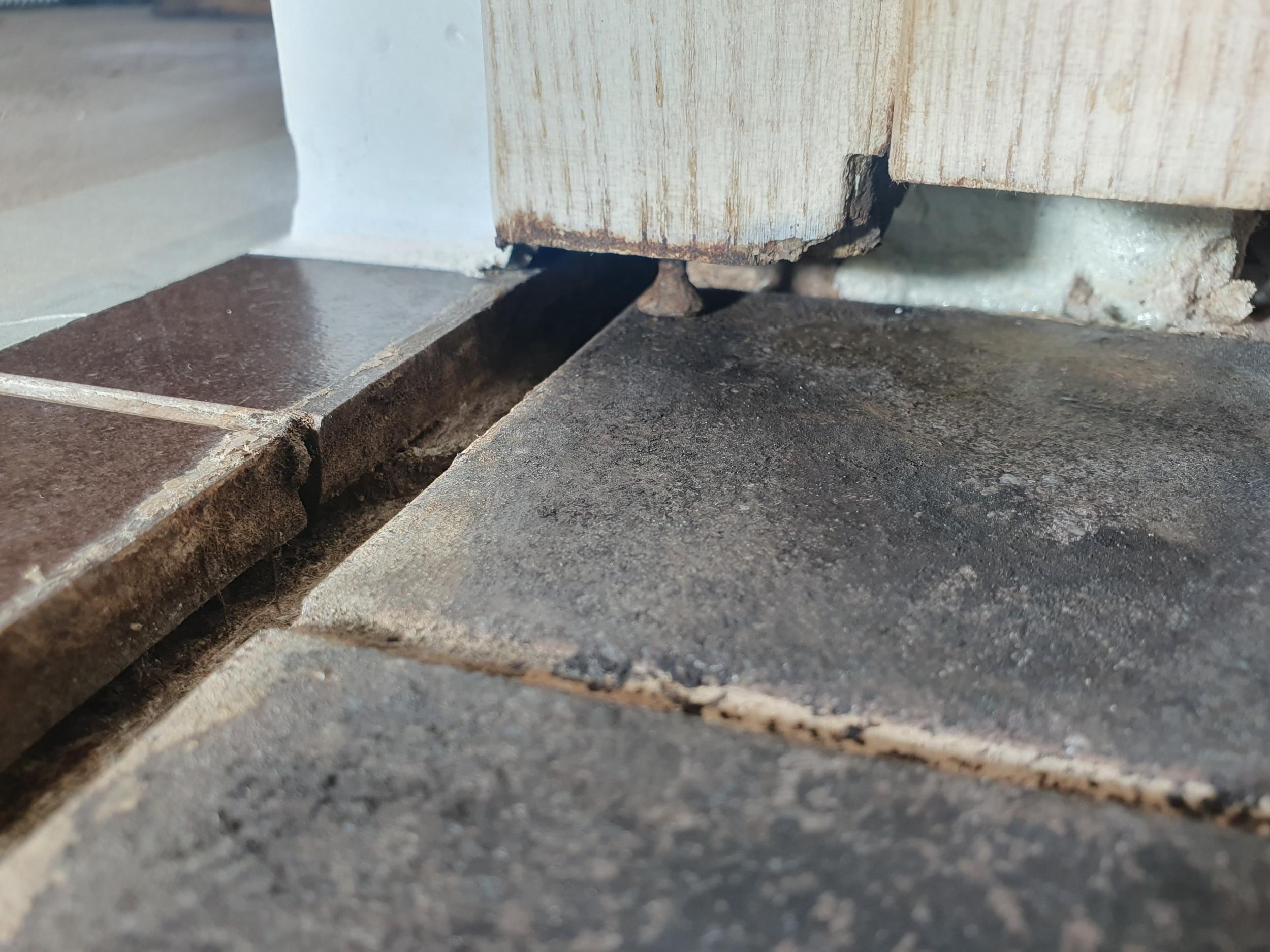 - Kahe ruumi plaatide vahel on väike ~1cm vahe - see tuleb ära täita (et sinna vesi ei koguneks) ja ruumide plaadid omavahel hermeetiliselt ära ühendada (vannitoa plaadid on ~2mm madalamal kui riietusruumi plaadid)