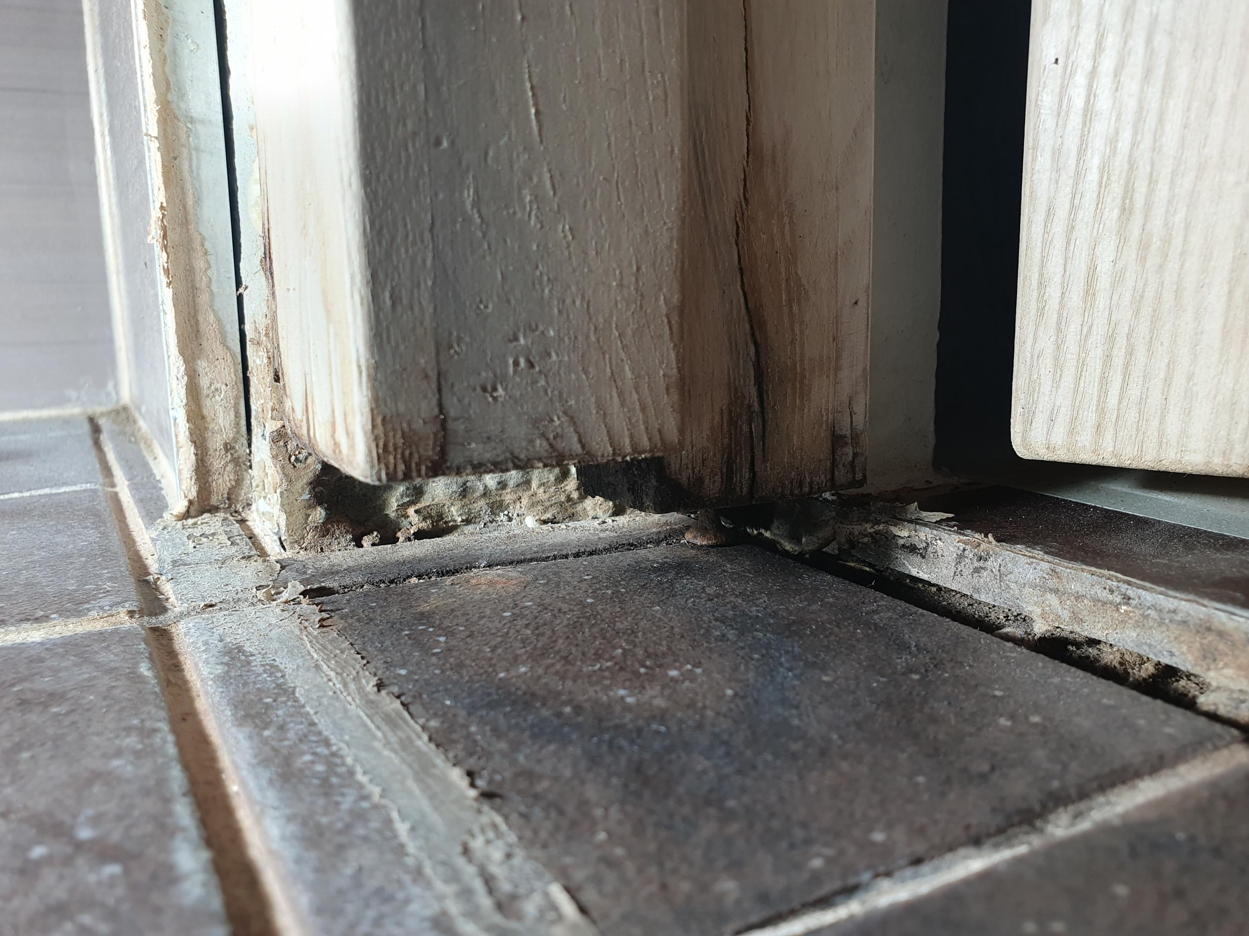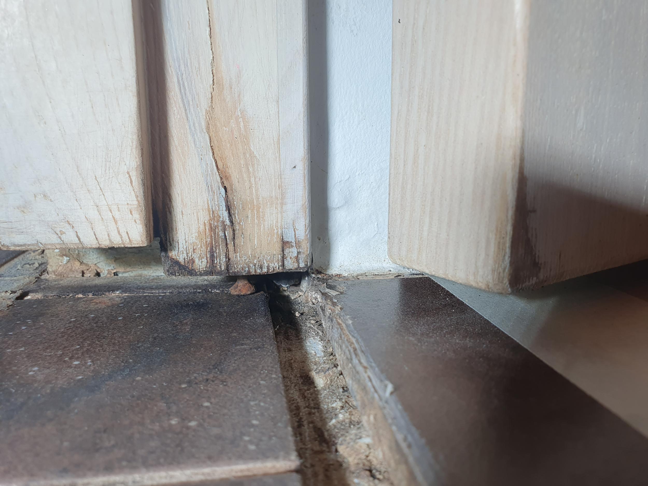 - Mõte on ukseraami pehkinud osa (2-3cm) maha lõigata ning ülejäänud uks/raam alles jätta, ja lävepaku asemel jätta õhuava