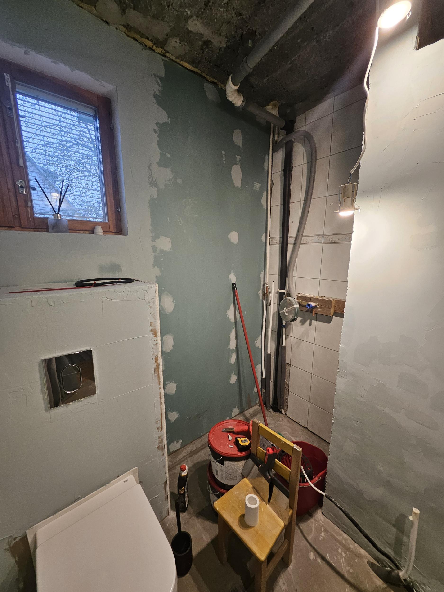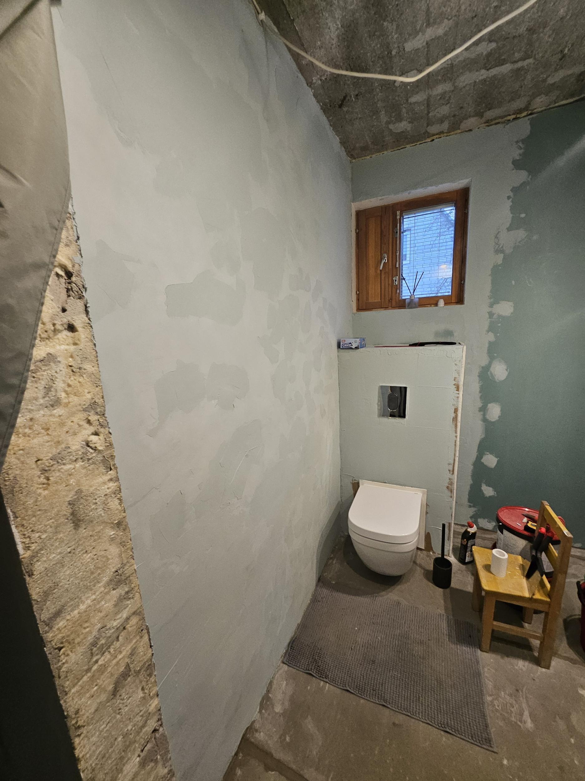 2. Kolme seina pahteldamine (üks kiht pahtlit pandud) ja lihvimine. Pahtel on olemas.