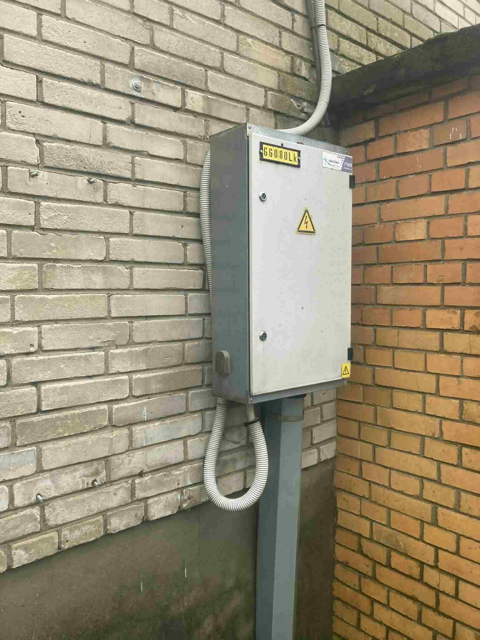 Korterelamu sees liitumiskilbi ja arvestite vahelise kaablite vahetus.