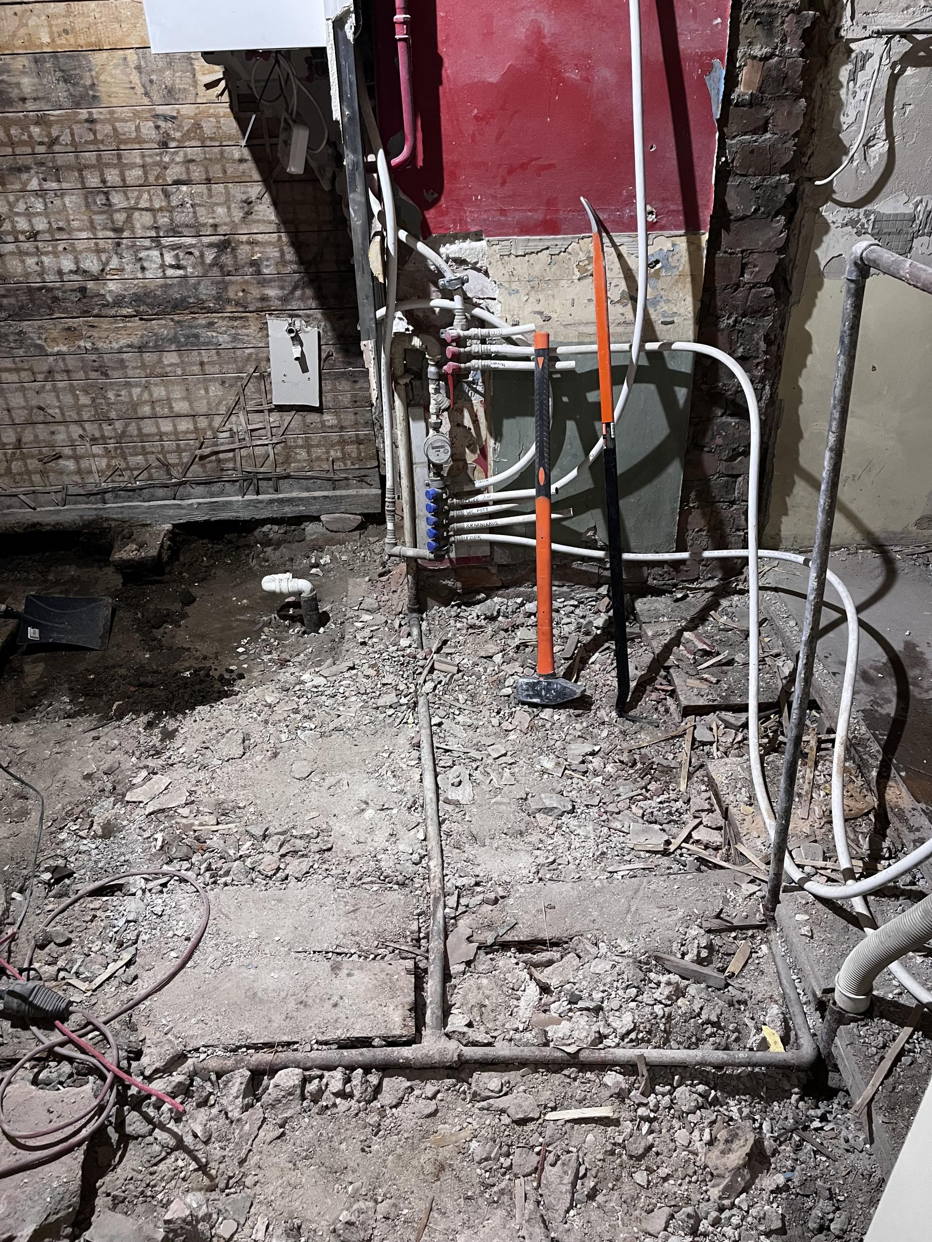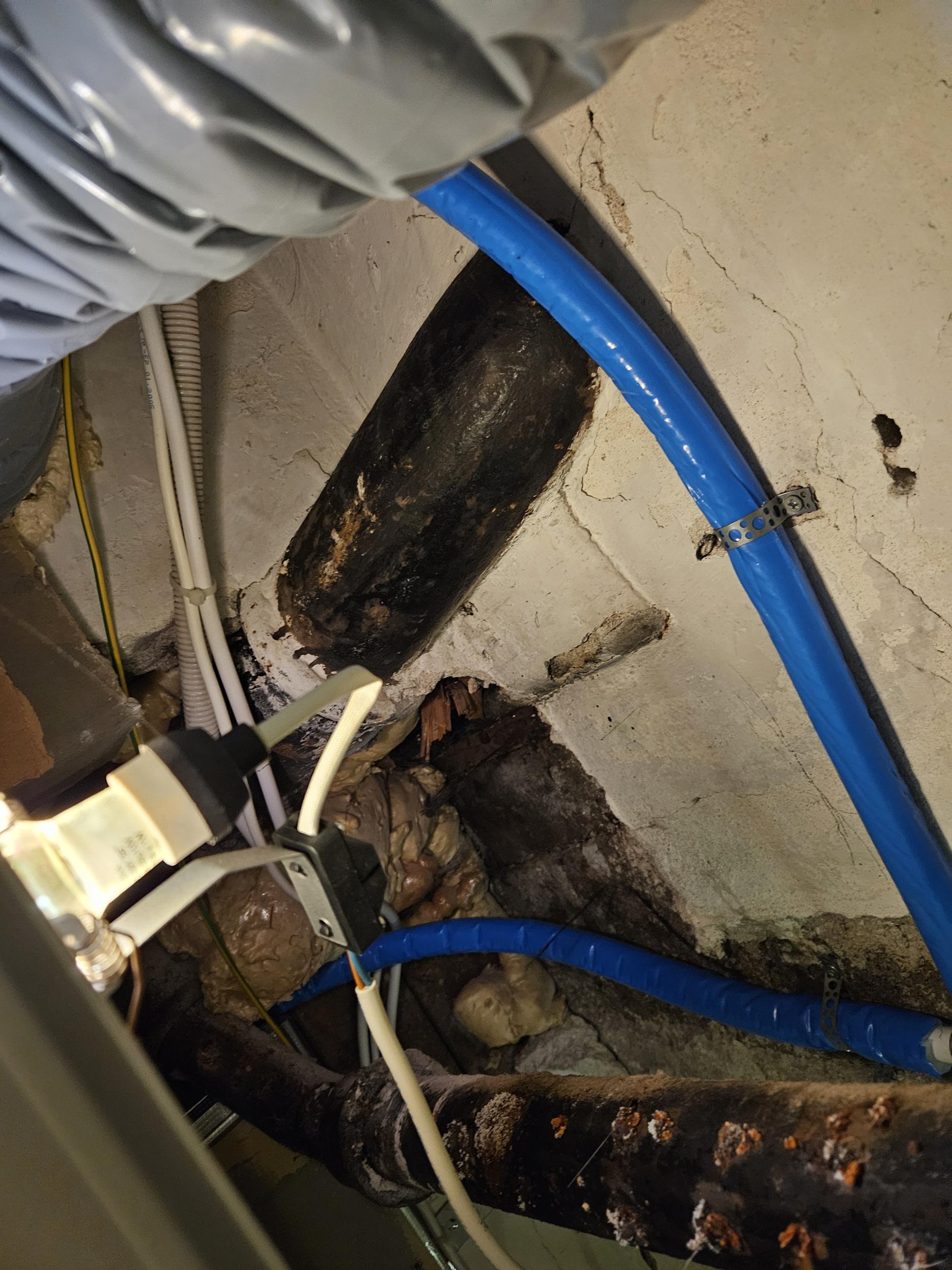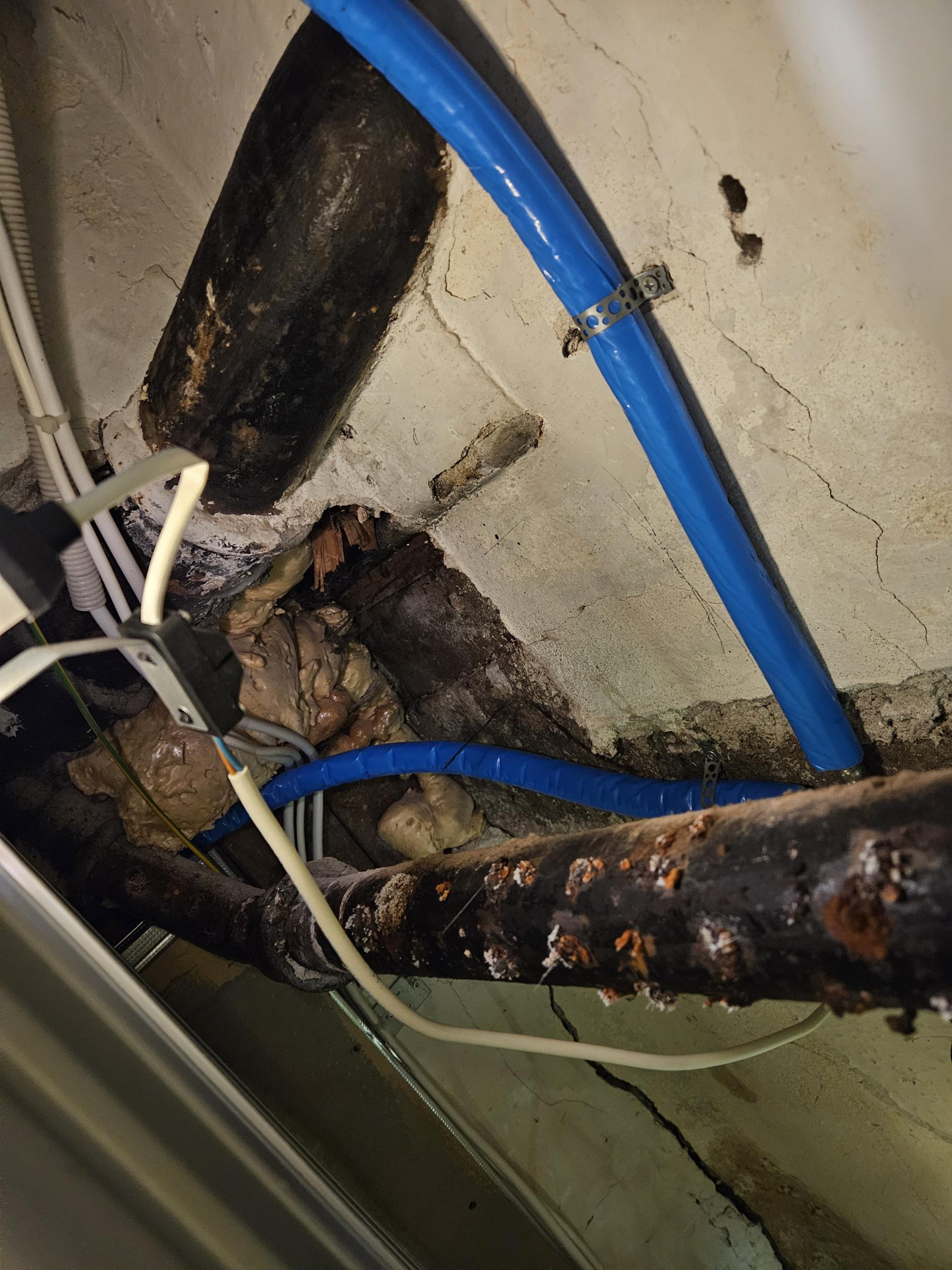 Korterelamus on vaja osaliselt vahetada kahe korteri vahel amortiseerunud malmtorud ja veetoru. Ülemise korteri kanalisatsioonitorud lähevad läbi vahelahe alumise korruse korteri lae pealt püstakusse. Vaja oleks alates malmpüstakust uued torud (kolmikud) paigaldada läbi vahelae kuni ülemise korterini (üks 110mm toru vahelaest läbi kust hargneb hiljem edasi). Ülejäänud malmist olemasolevad harud tuleb eemaldada.