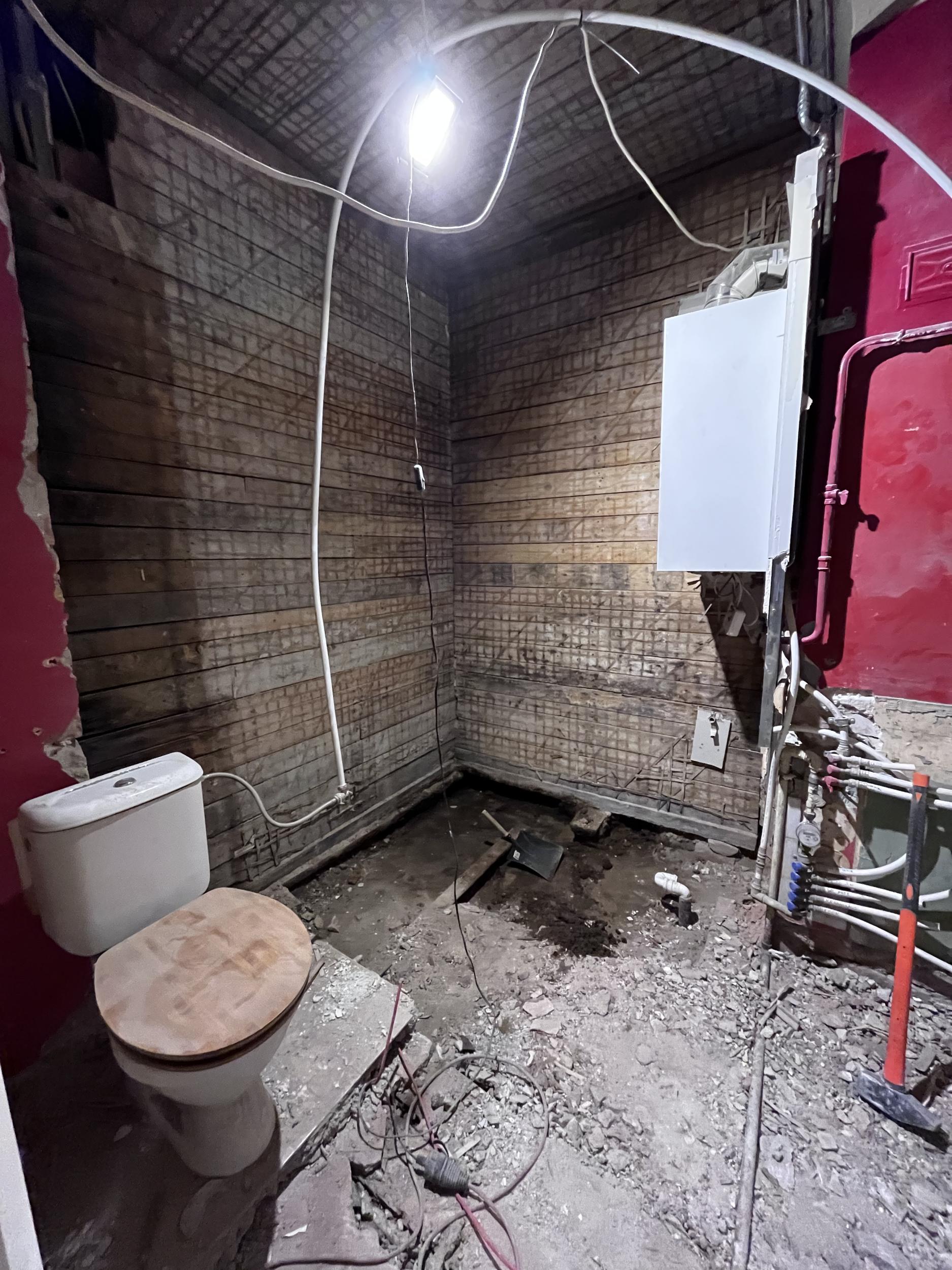 Ülemises korteris demonteeritakse wc ja põrandabetoon kuni vahelae betoonini.