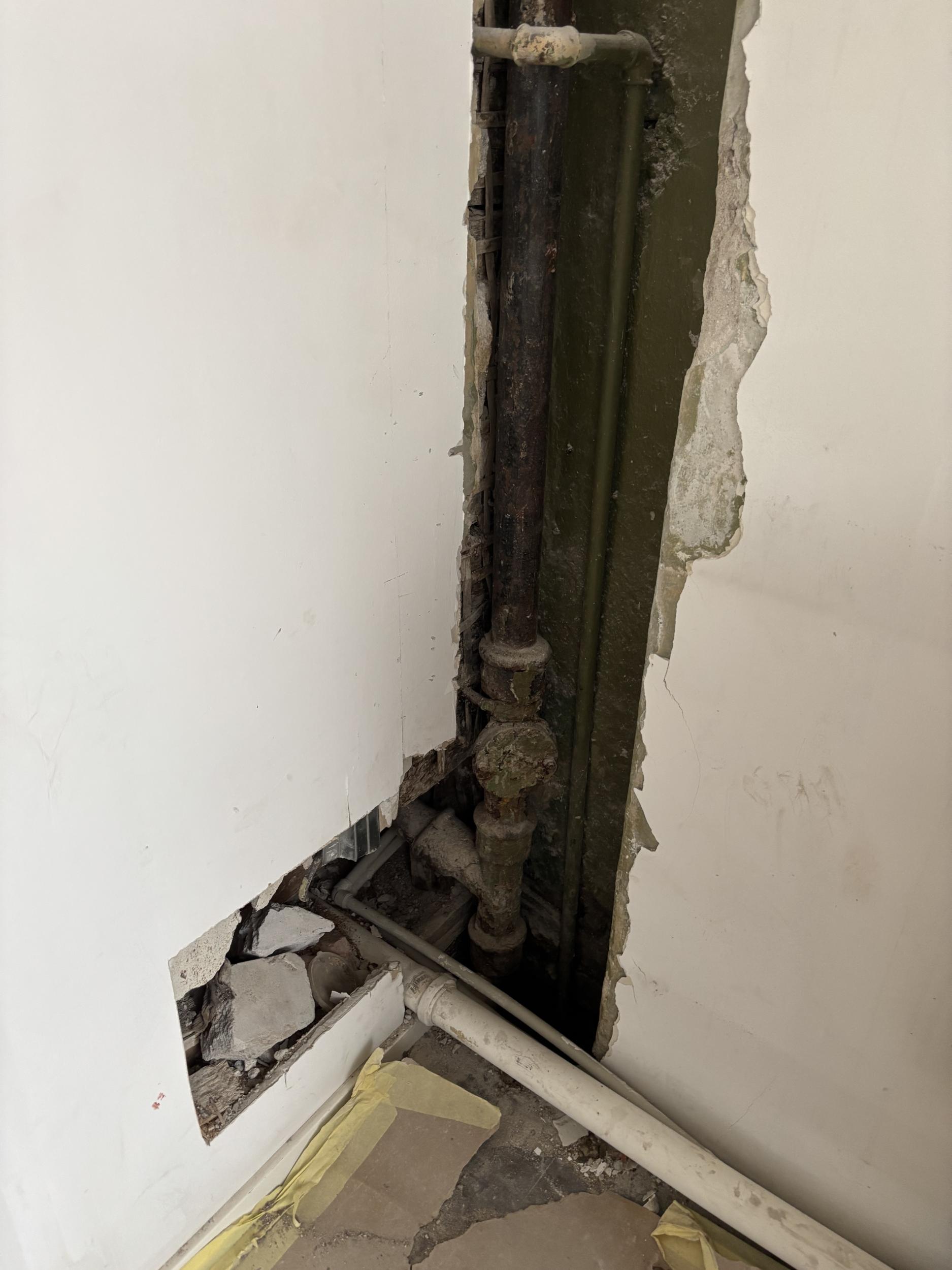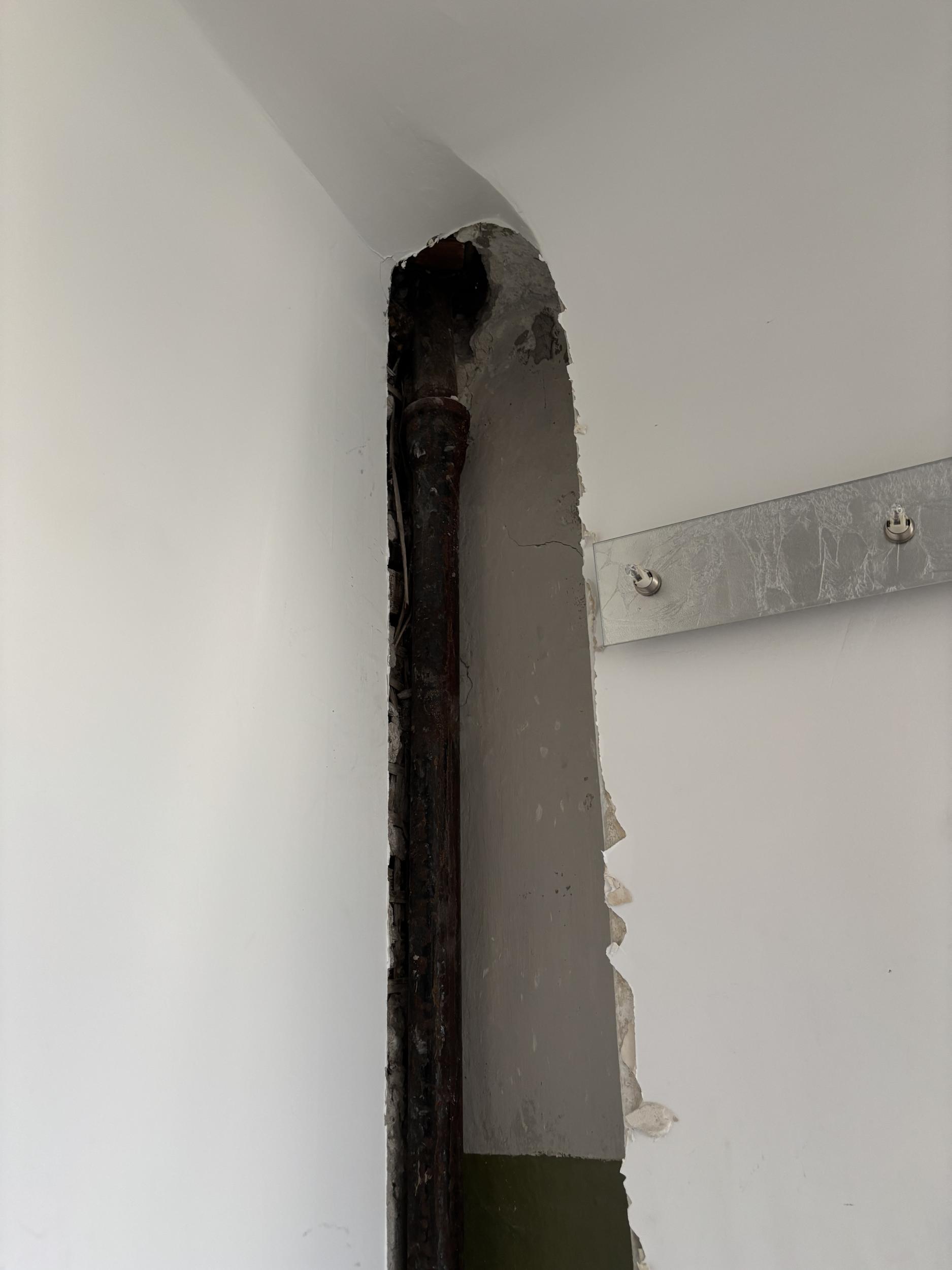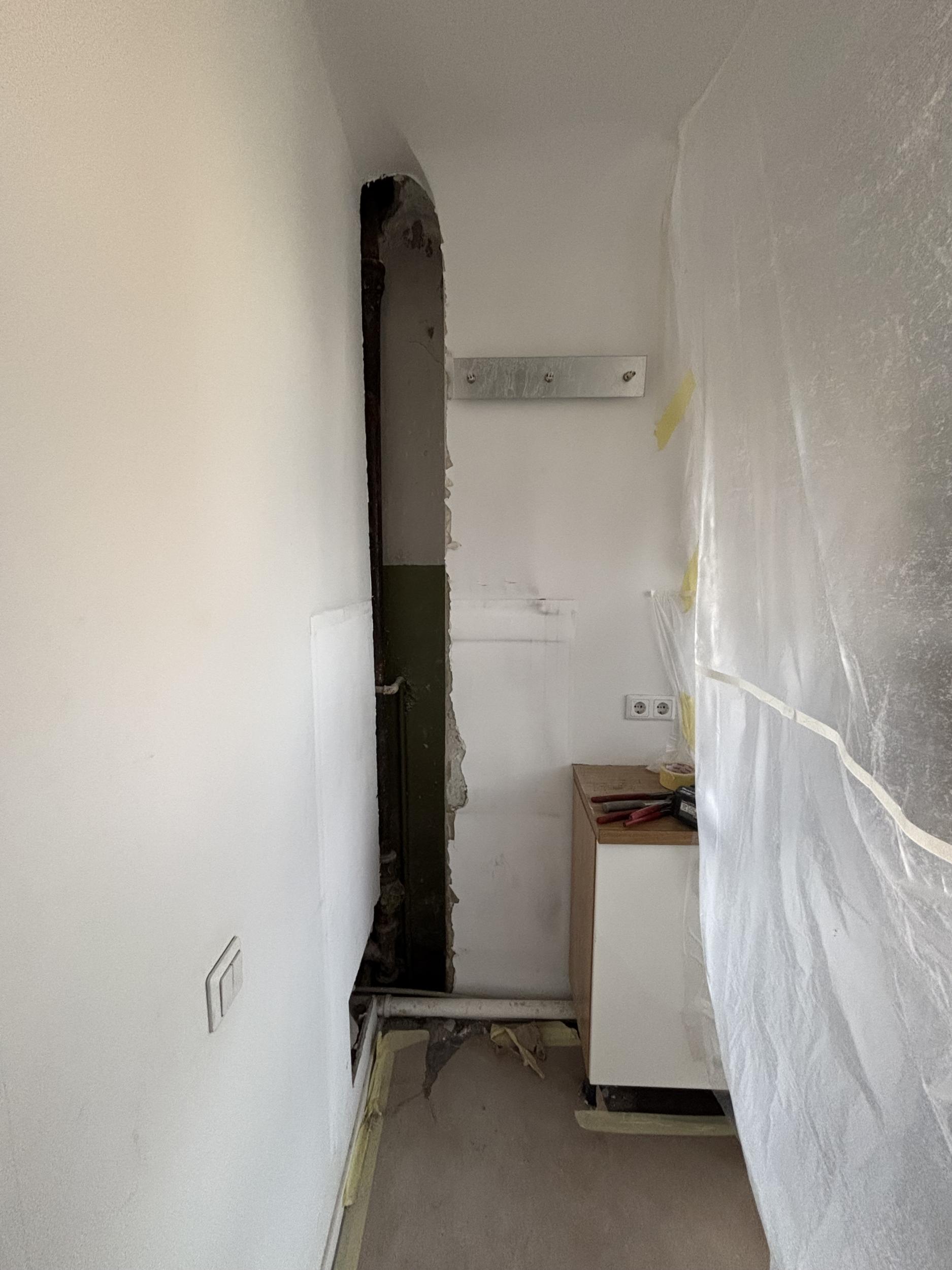 Korteris vahetati seina taga asuv kanalisatsioonitoru ning oleks vaja siseviimistlus taastada. Ühes seinas u 30cm lai ja terves seina kõrguses maast laeni auk. Küljeseinas umbes 40x60cm auk nagu pildil näha.