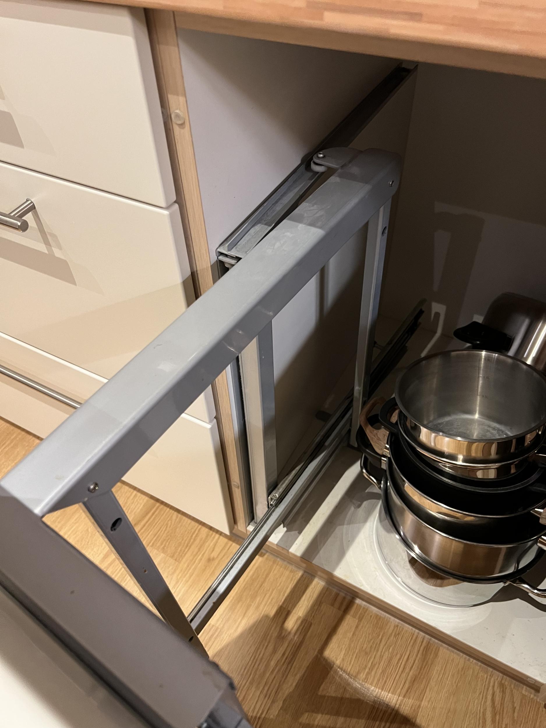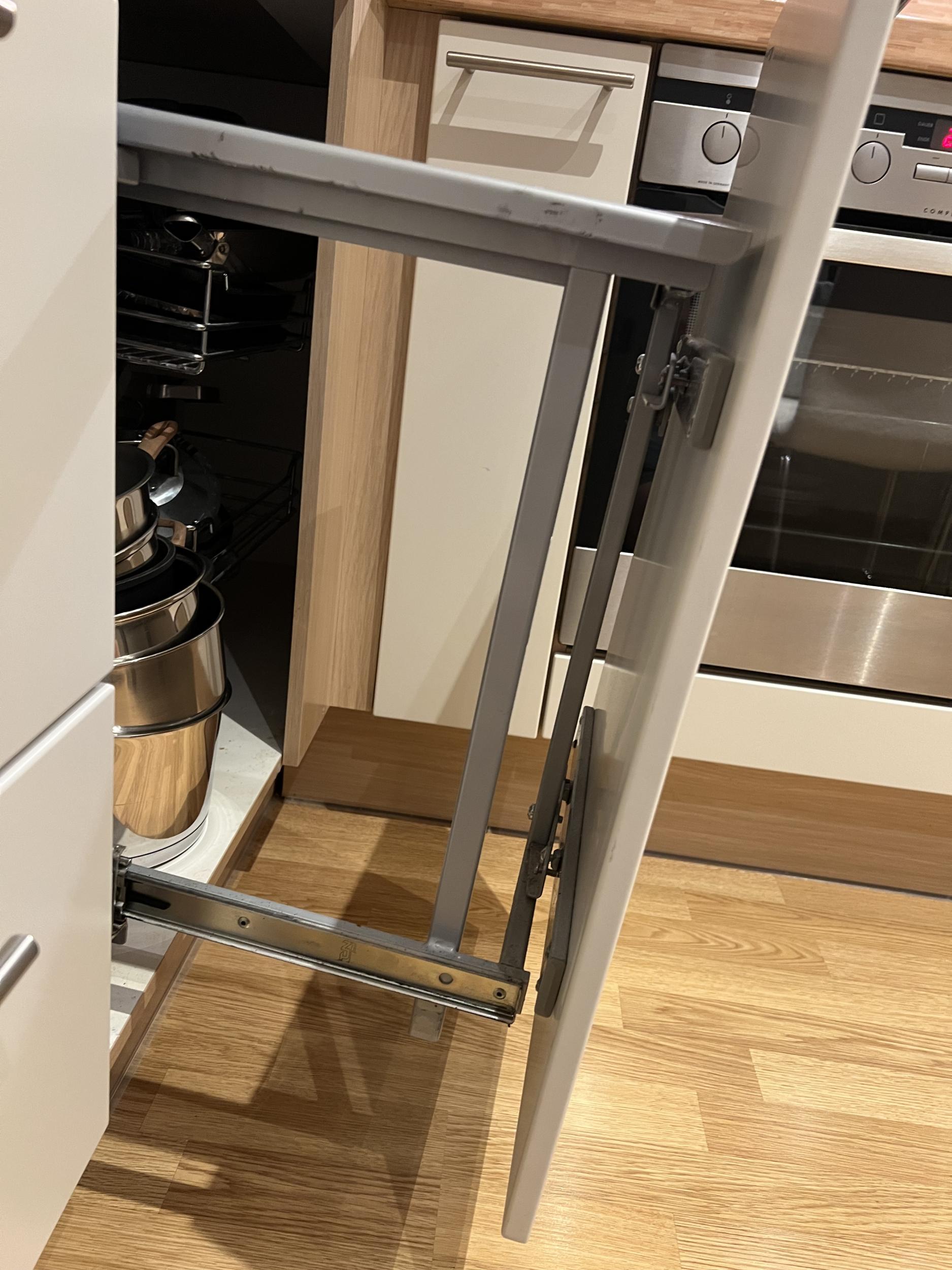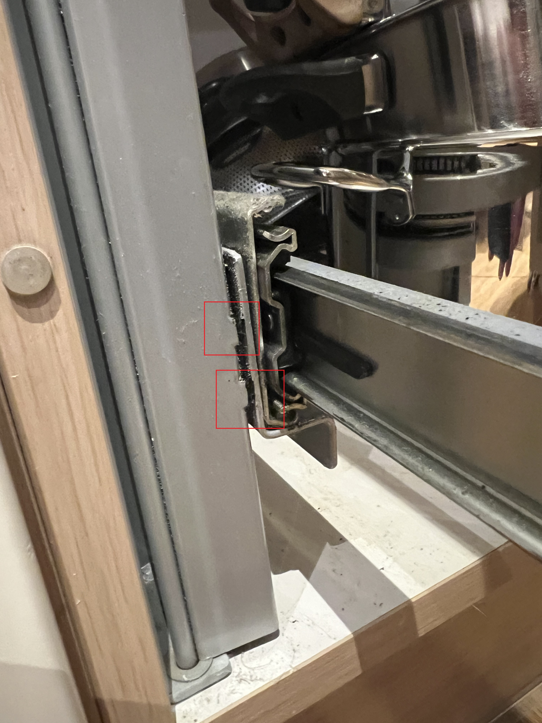 Köögikapi mehhanismil läksid katki 2 keevituskohta, näidatud pildil. On vaja mehhanism kapist maha võtta, katkine koht kinni keevitada ja tagasi paigaldada.