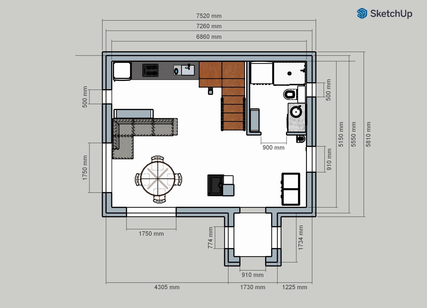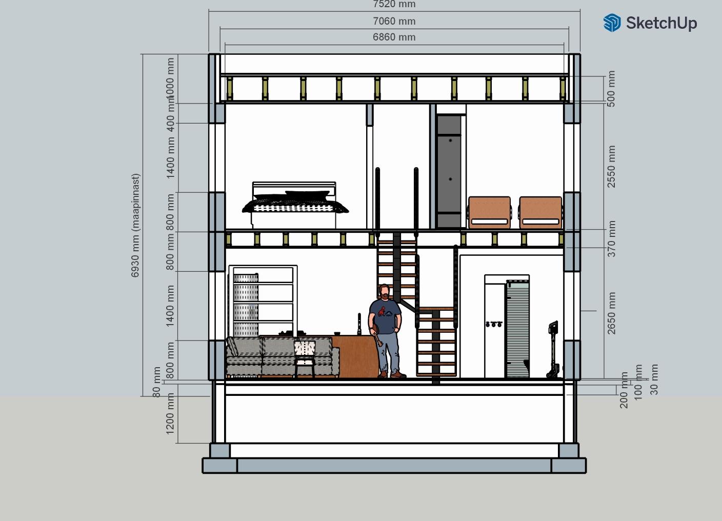 Töötame koos. Olen hoonest teinud 3D mudeli (Sketchup 2025 Pro) ja saan exportida ka DWG. Olemas on mm-mõõdud, info planeeritud materjalide ja tehnosüsteemide kohta.