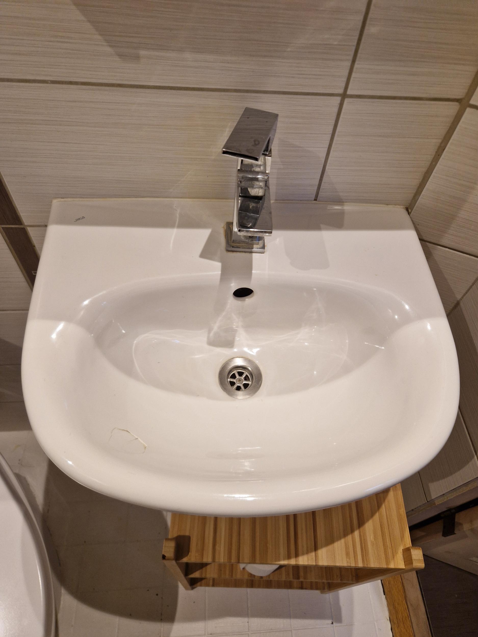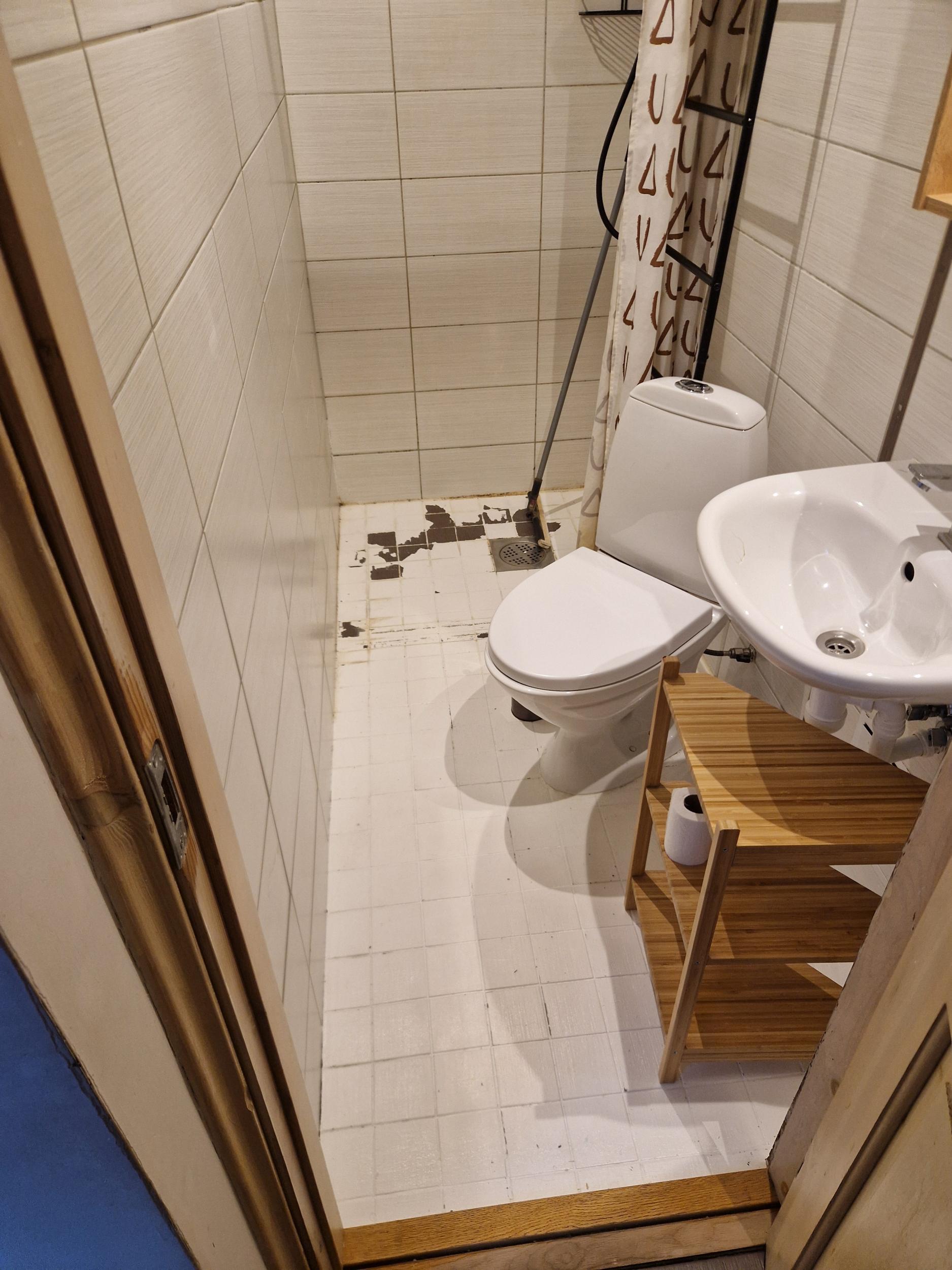 Vaja välja vahetada vannitoa põrand ja kraanikauss. Vana põrand on kunagi üle värvitud ja koorub. Põranda sees ka elektriline põrandaküte. Kraanikauss on kannatada saanud ja vajab väljavahetamist.