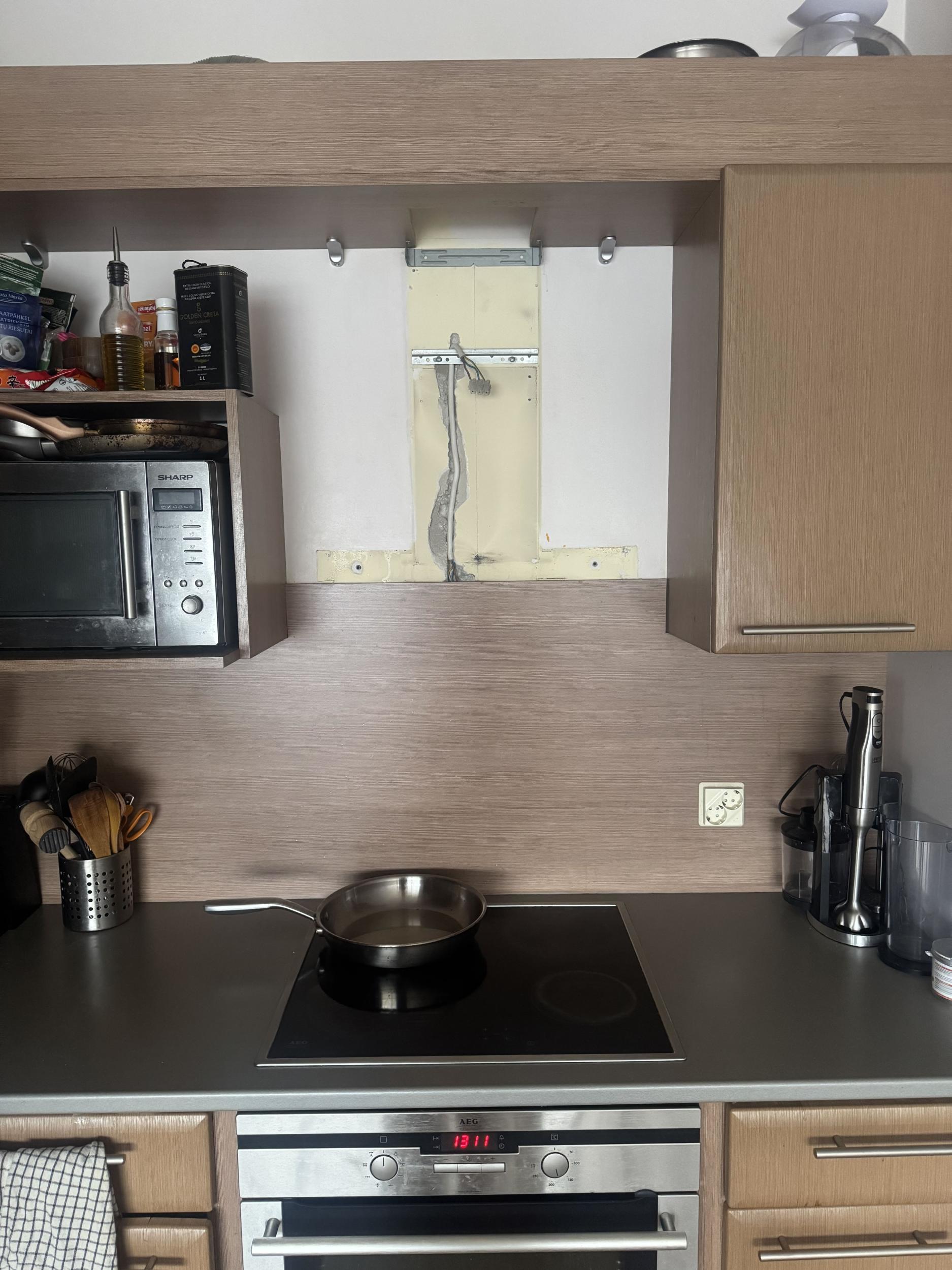 Oleks vaja köögis üles panna uus õhupuhasti, selle jaoks võiks tekitada uue 2 auguga pistikupesa kuhu saaks ühendada ka led valgusriba tööpindade valguseks. Õhupuhasti ja led riba on olemas. Seinas olevad õhupuhasti kinnitused on vanad ja ei pruugi ühilduda uutega.