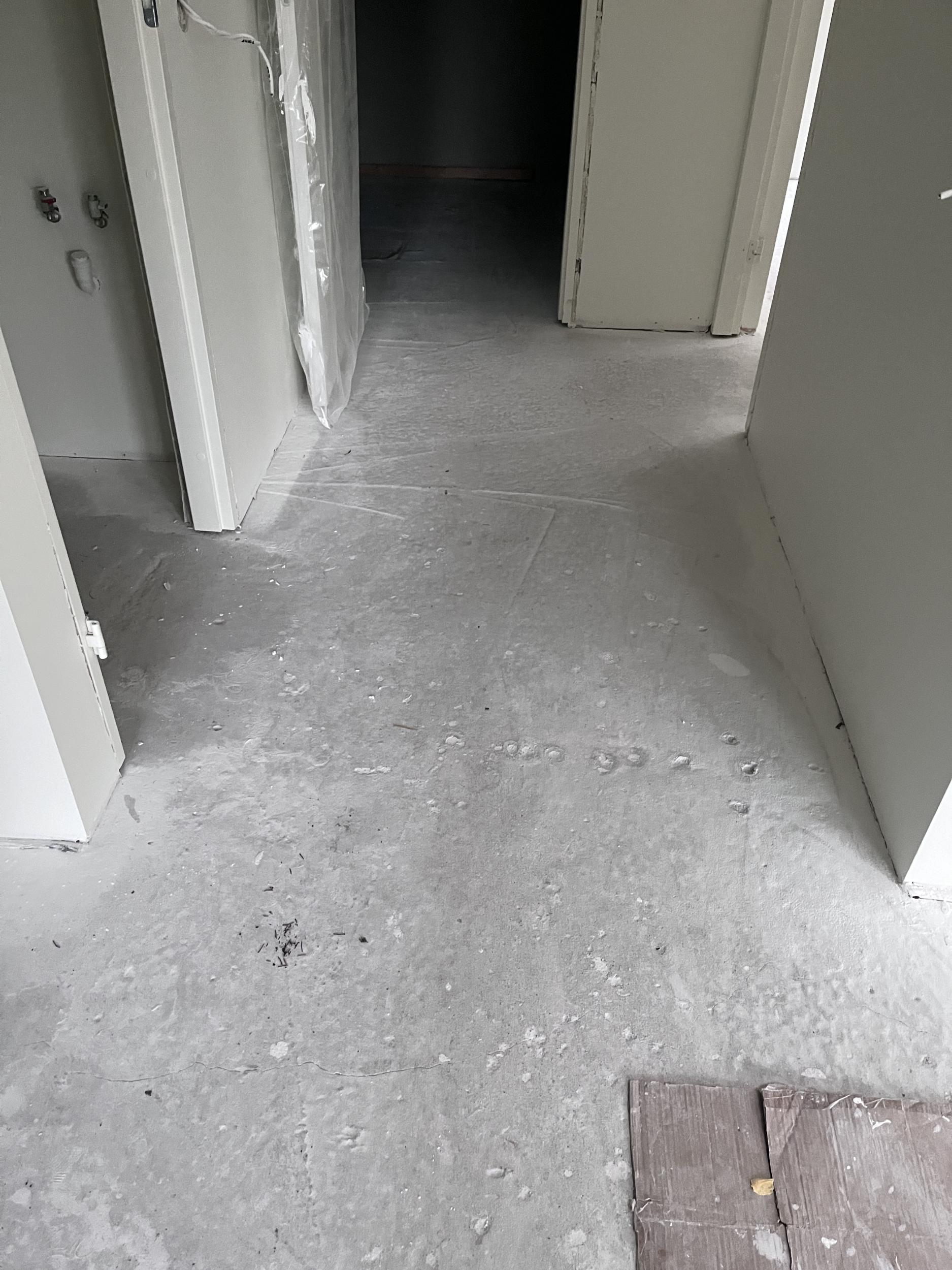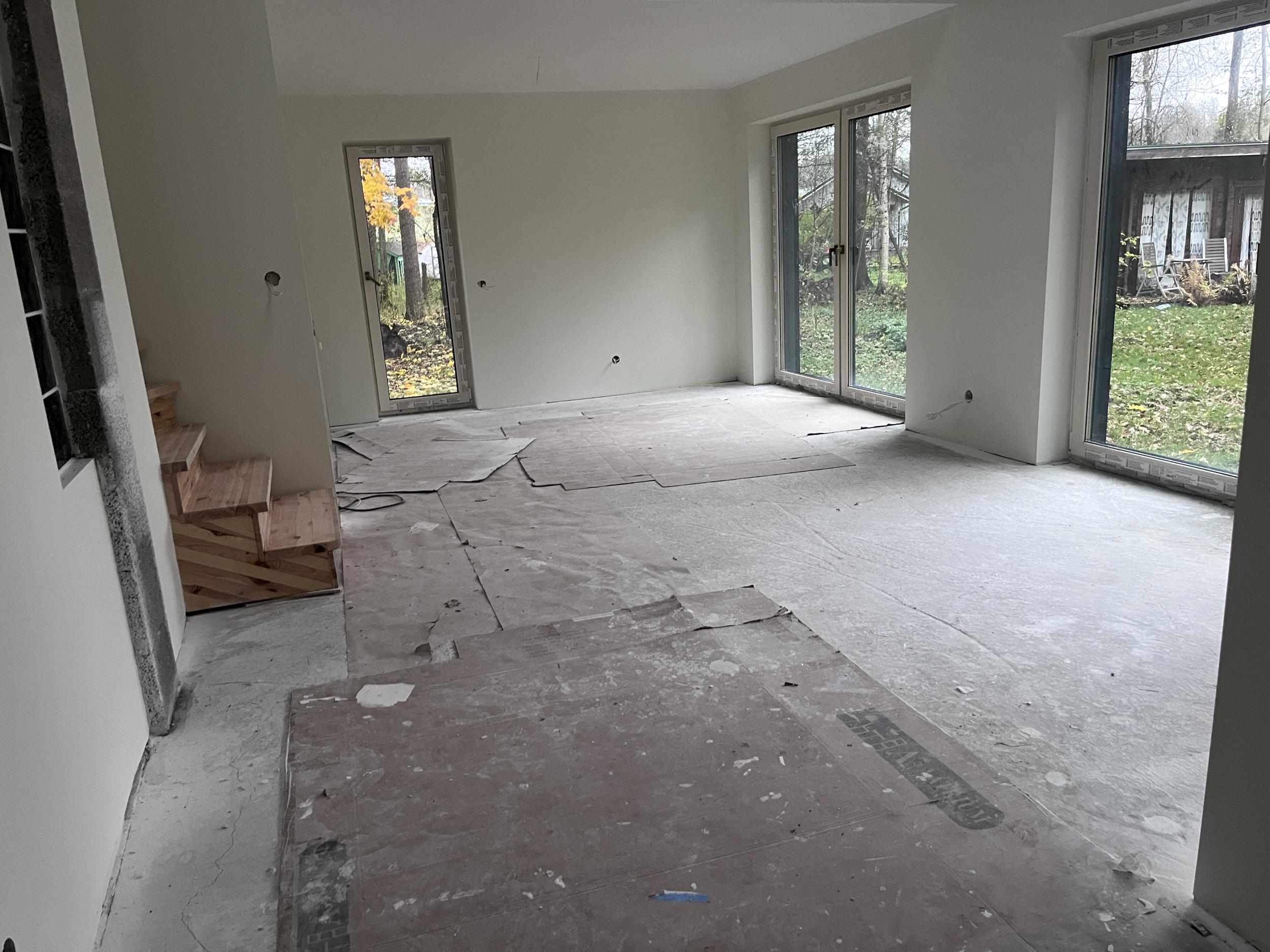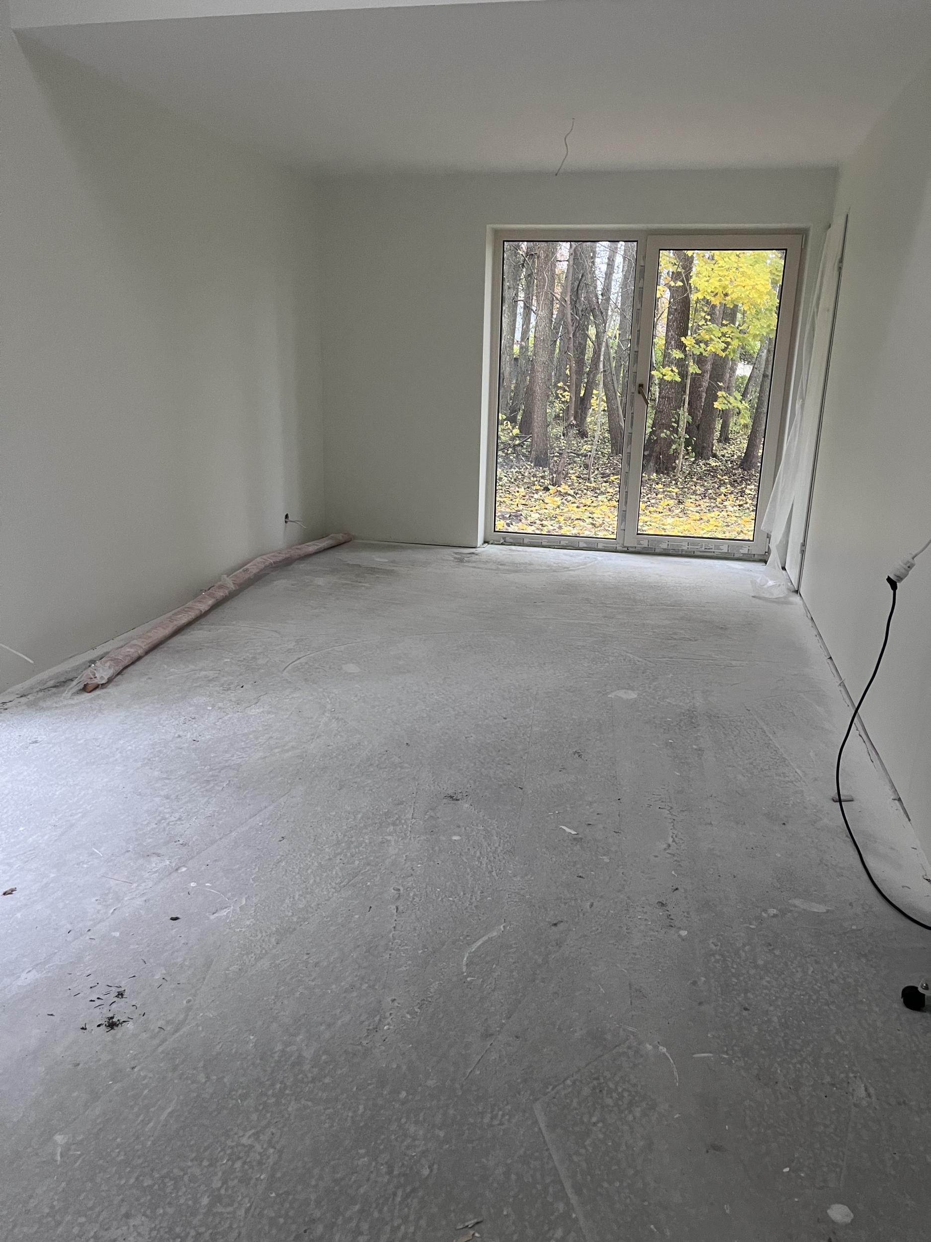 - Teises toas ja koridoris (pind 36.7 m2) tuleb hiljem parkett, seal lihtsalt lihvida ebatasasused siledaks.
