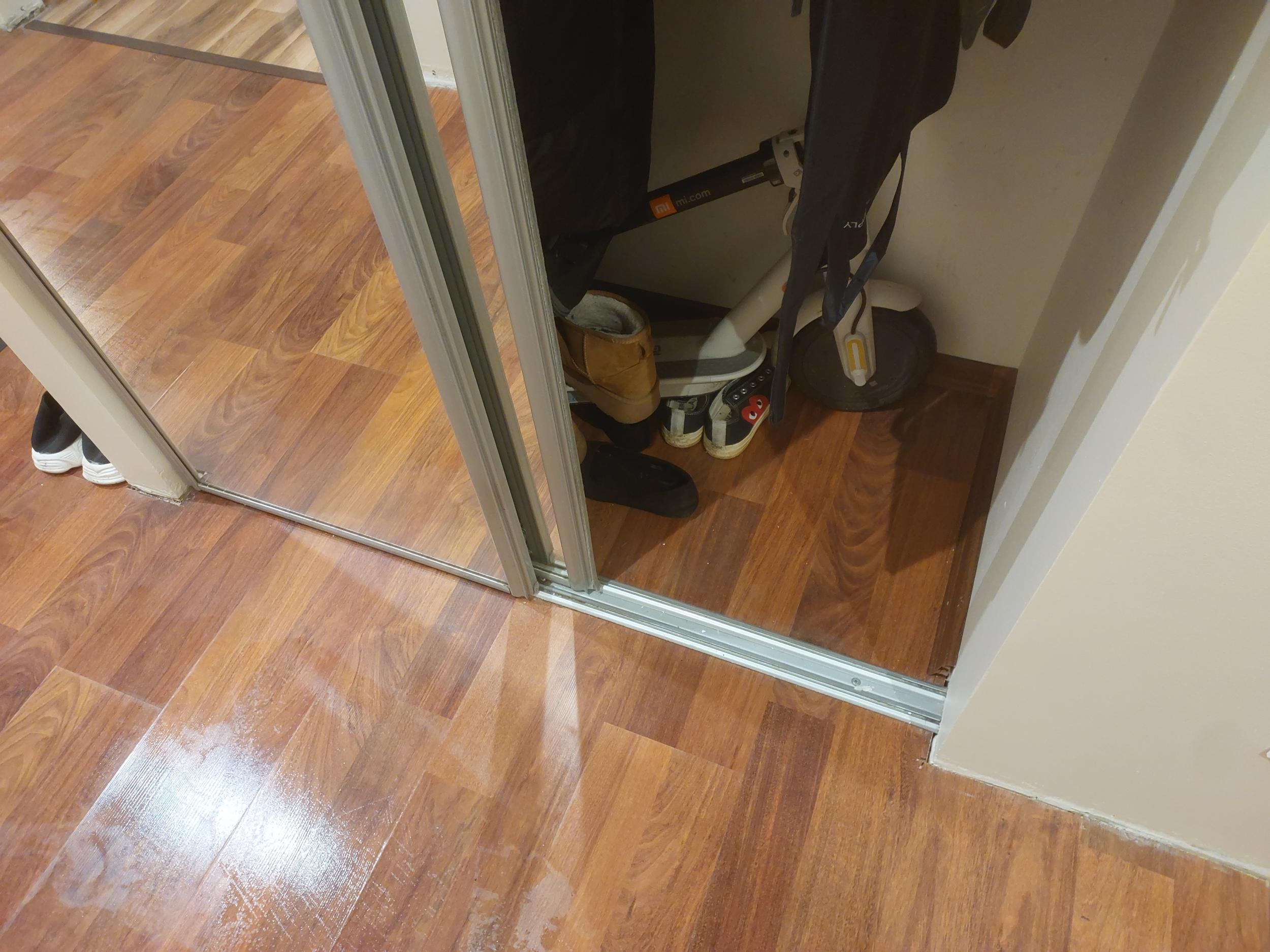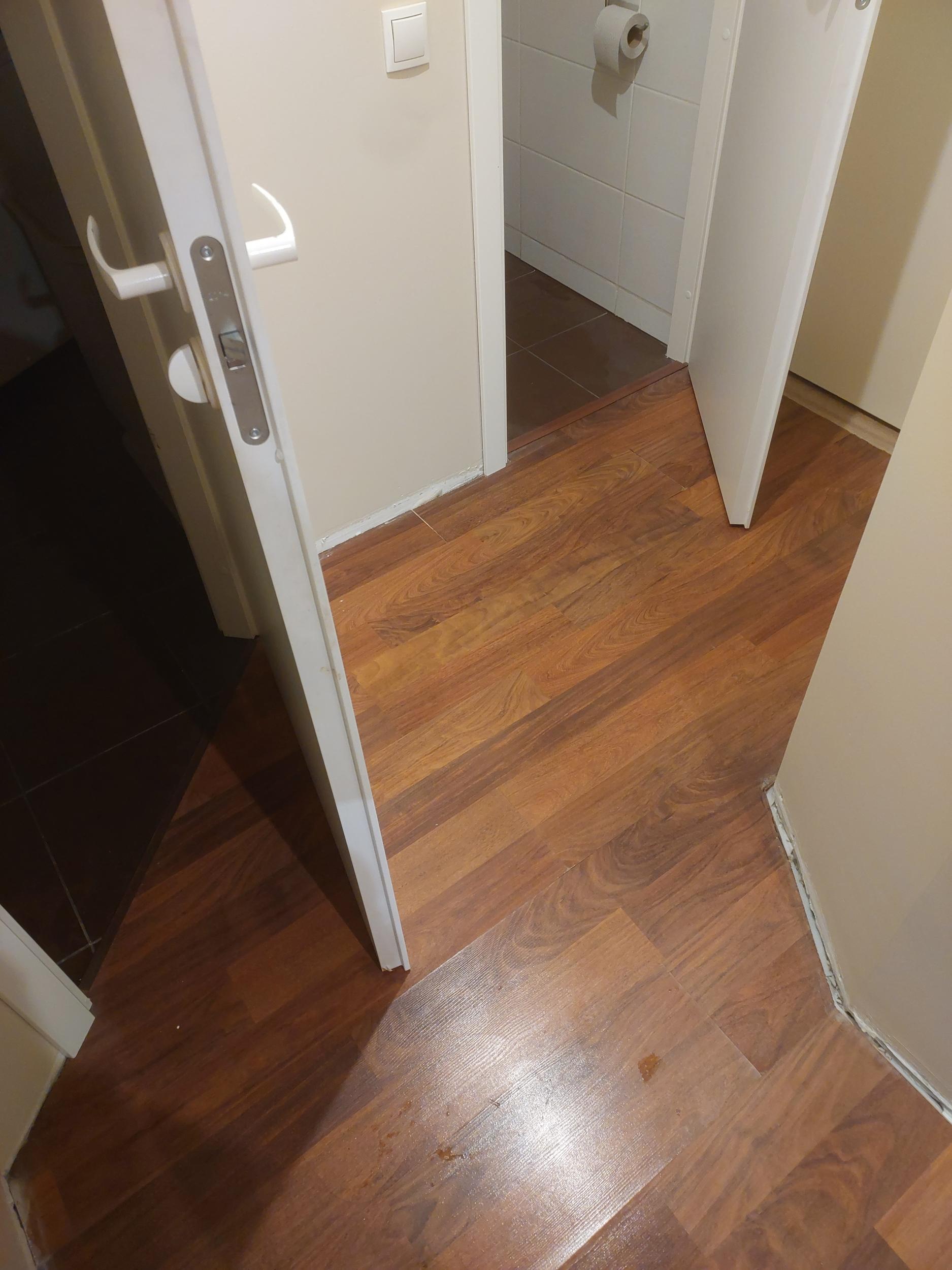 Parketi võib paigaldada vana olemasoleva peale, aga pildil olevad kaks ust ei anna enam sel juhul käima. Ilmselt peaks neid saama tõsta? Garderoobiuks tuleb tööde ajaks ära võtta ning pärast tagasi panna (vt pilti). Kogupind on 42m2.