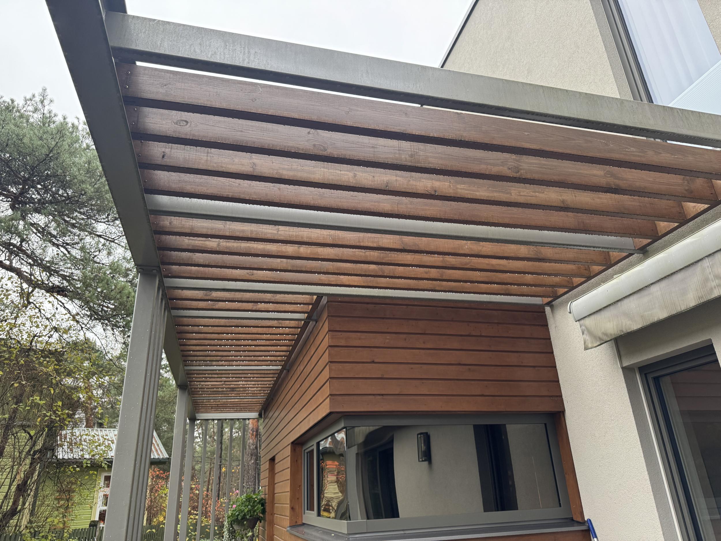 Sooviks katta puidust talad plekist kübarprofiiliga, et kaitsta puit niiskuse eest tala on 45mm lai. Kübarprofiilplekk võiks olla värvitud toon RAL9007 või RR41