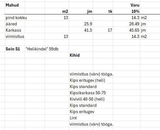 Sooviksime 2 topeltkipsiga seina, helitõke ca 54-59 db.