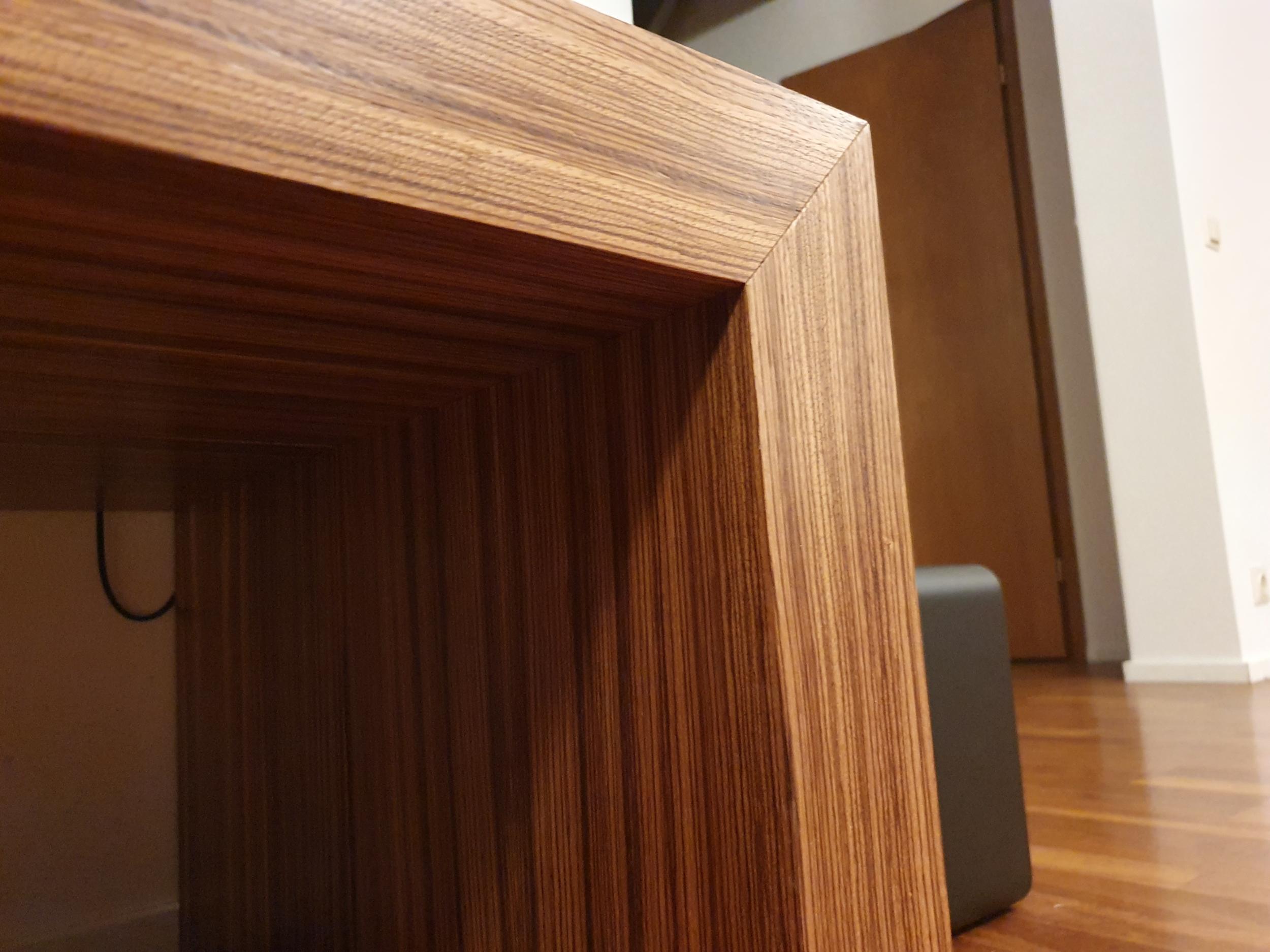 TV alus, igast küljest (kõik pinnad) nauraalse Zebrano spooniga (olemasoleva mööbli spoon sai MASSist ostetud, 0.6mm), mati lakiga, nurgad/servad nii lahendatud, nagu kaasas olevatel piltidel. Transport Tallinnas, Piritale.