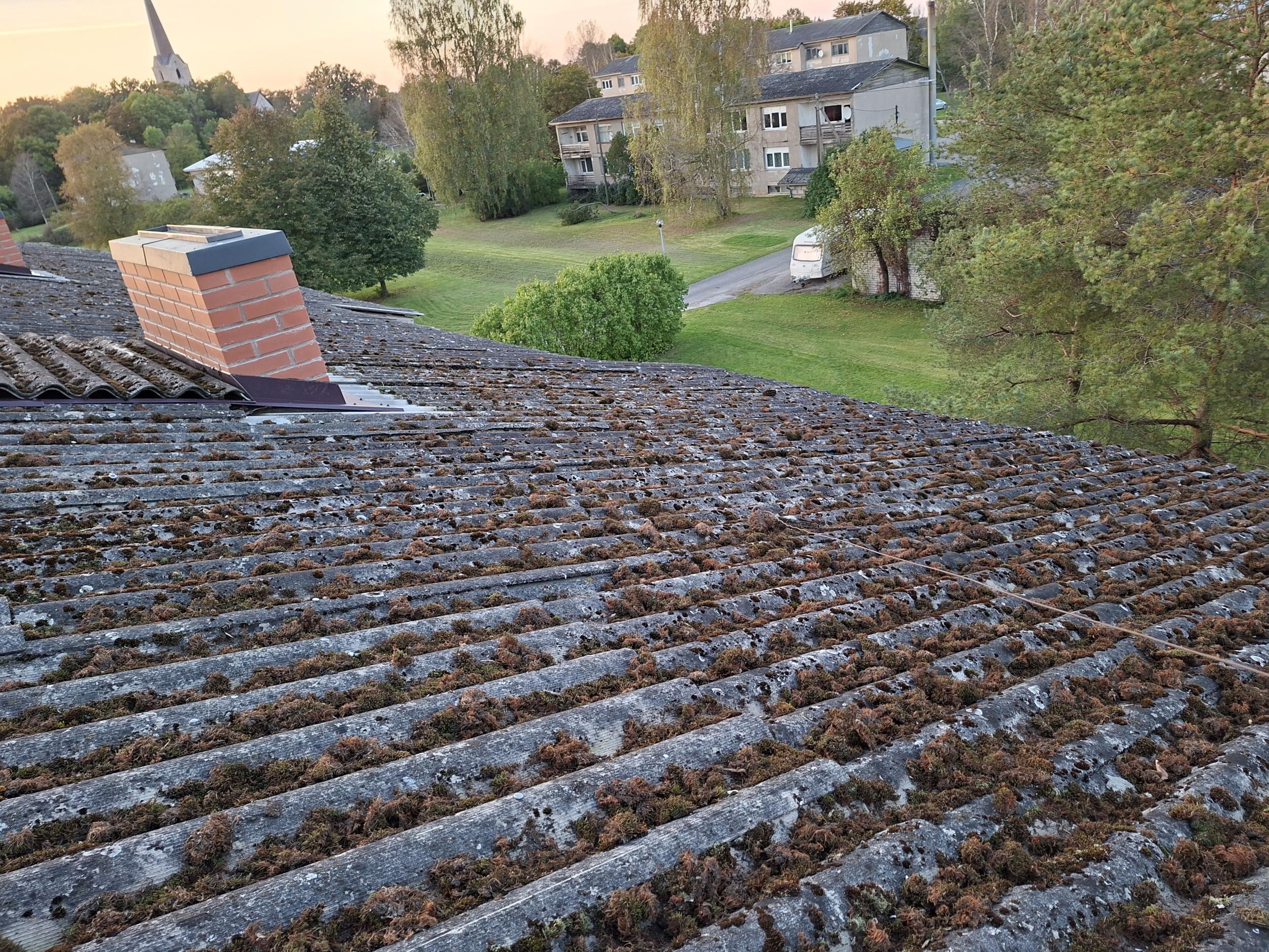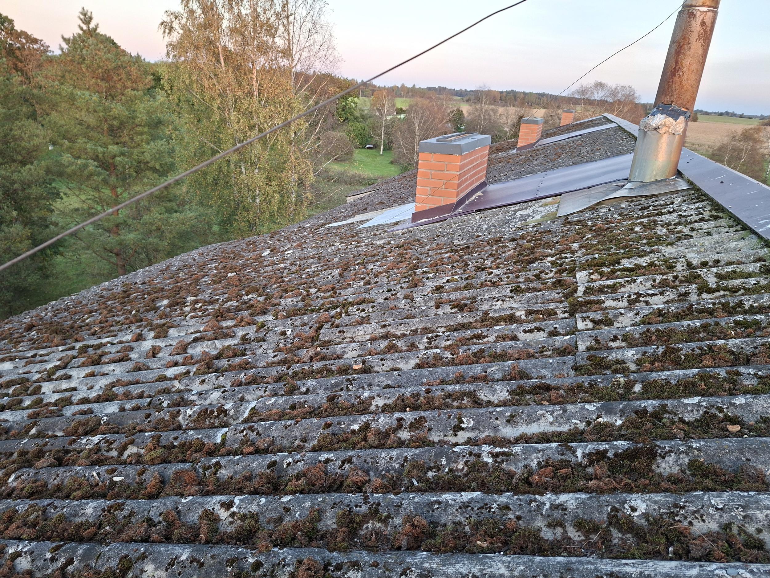 Oleks vaja vahetada ca 70 m² eterniiti ja roovitus. Vendikorsten lagunes ära ja kukkus katuse peale laiali, kahjustades eterniiti.