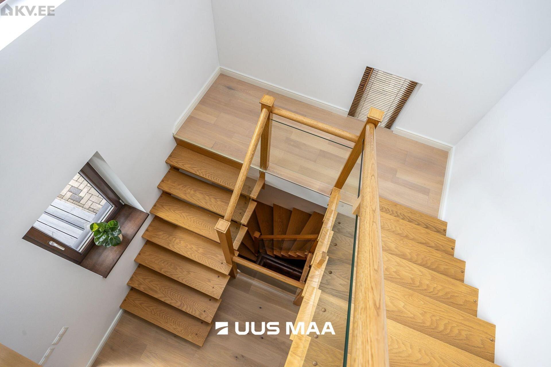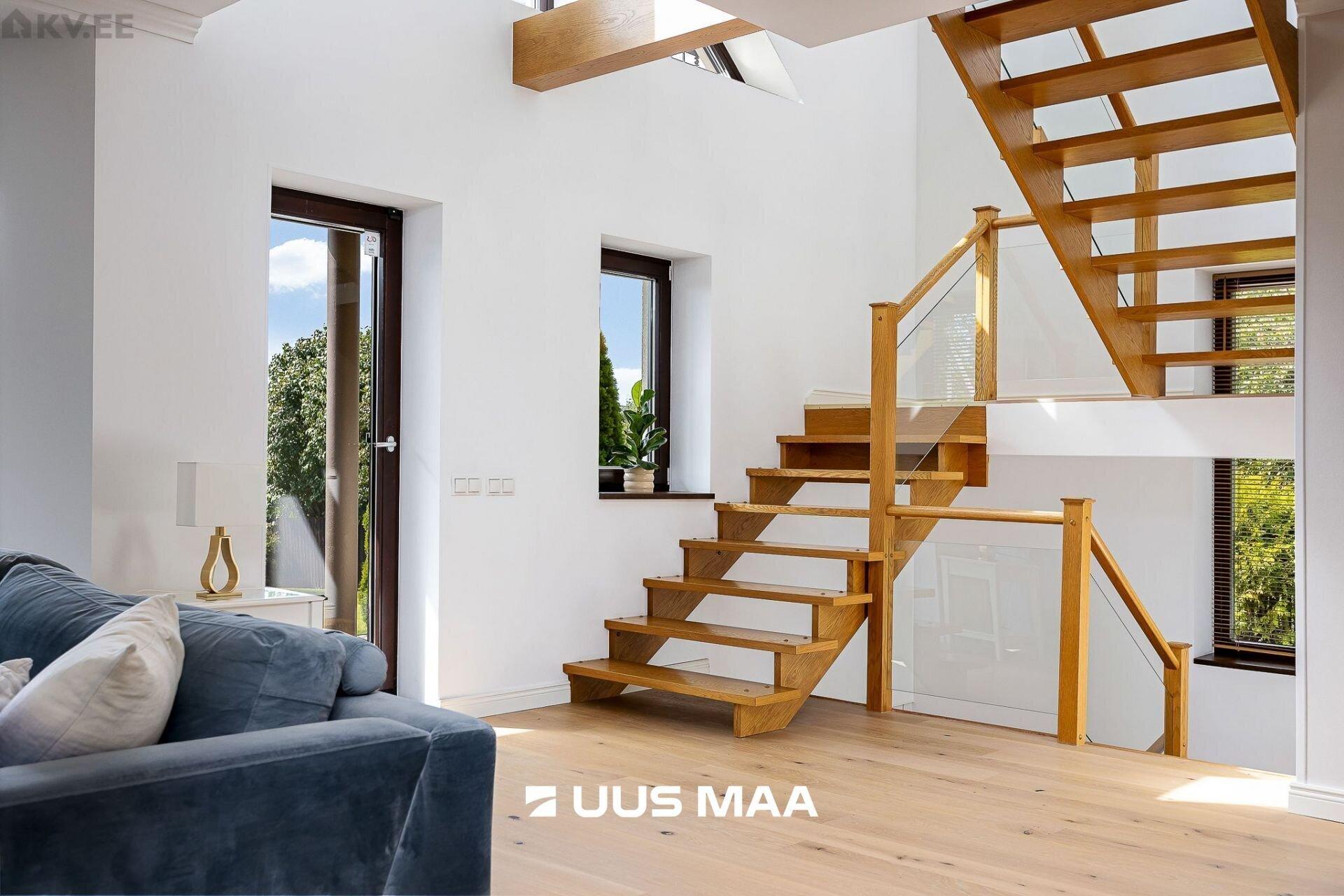 Soovime olemasoleva trepi (astmed, käsipuud, klaasipostide vahele jäävad detailid jms) lihvida ning viimistleda uuesti. Trepp on valmistatud vineerist ja kaetud tammespooniga. Soovime uueks tooniks heledat tamme.