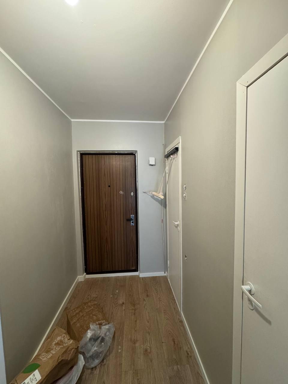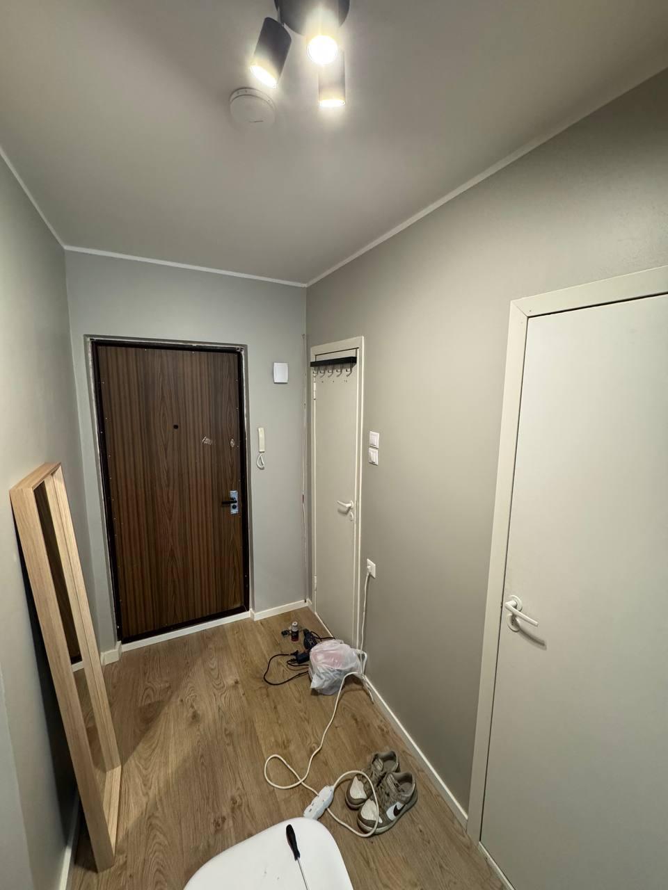 Tegemist on Lasnamäe paneelmaja 1-toalise korteri esikuga. Vaja on mõned kohad parandada ja viimistleda ning siis esik värvida. Põrandaliiste maha ei võta – need jäävad külge. Seintel tapeeti ei ole, seinad on värvitud.