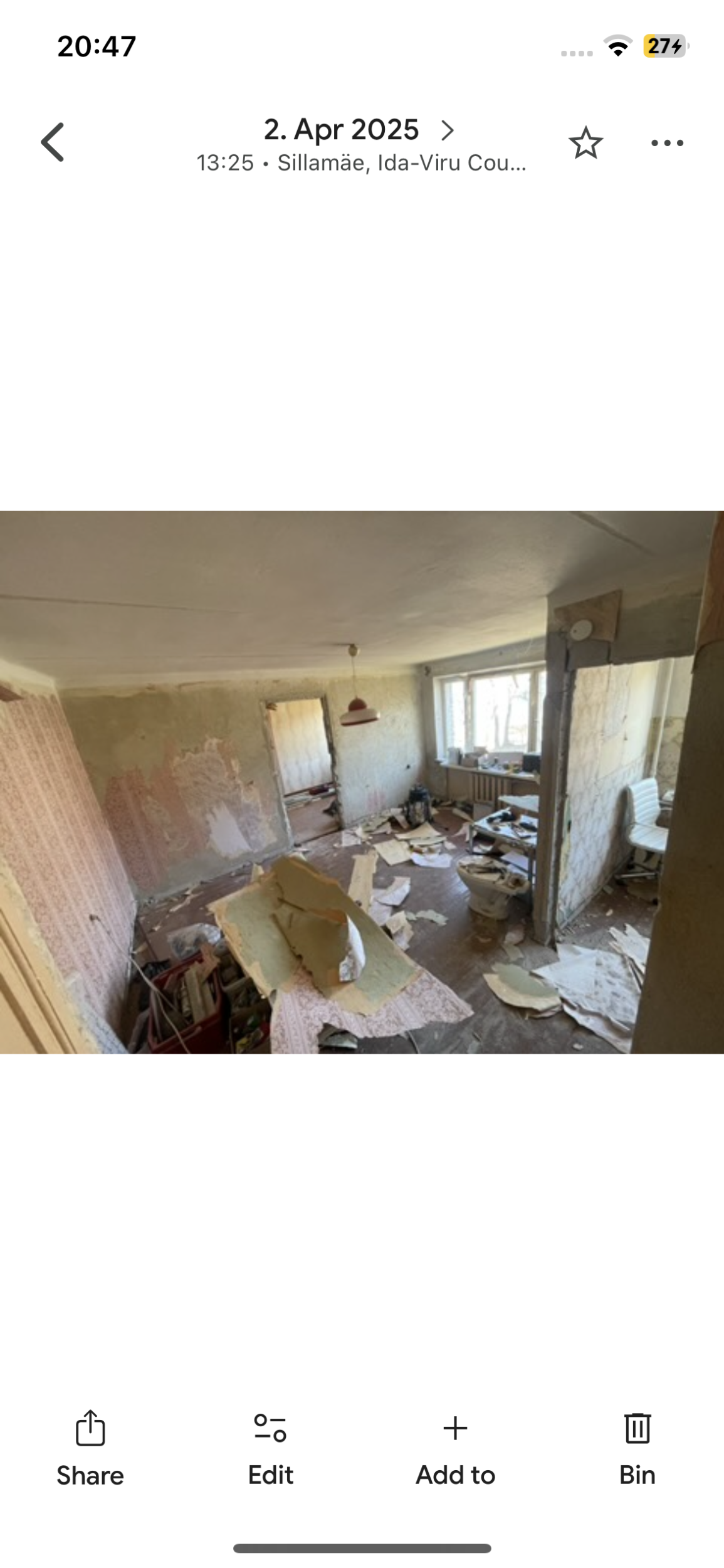 Kipsplaadi paigaldus köök+2 elutuba. Ainult seinad. Kipsplaadi paigaldus toimub liimiseguga(tapeet on eemaldatud ja seinte kruntimine nakkekrundiga on tellija töö). Materjal ja selle transportimine tööde teostaja poolt. Korter asub Ranna tänaval, 3 korrusel. Korteri põrandapindala on 39m2 .