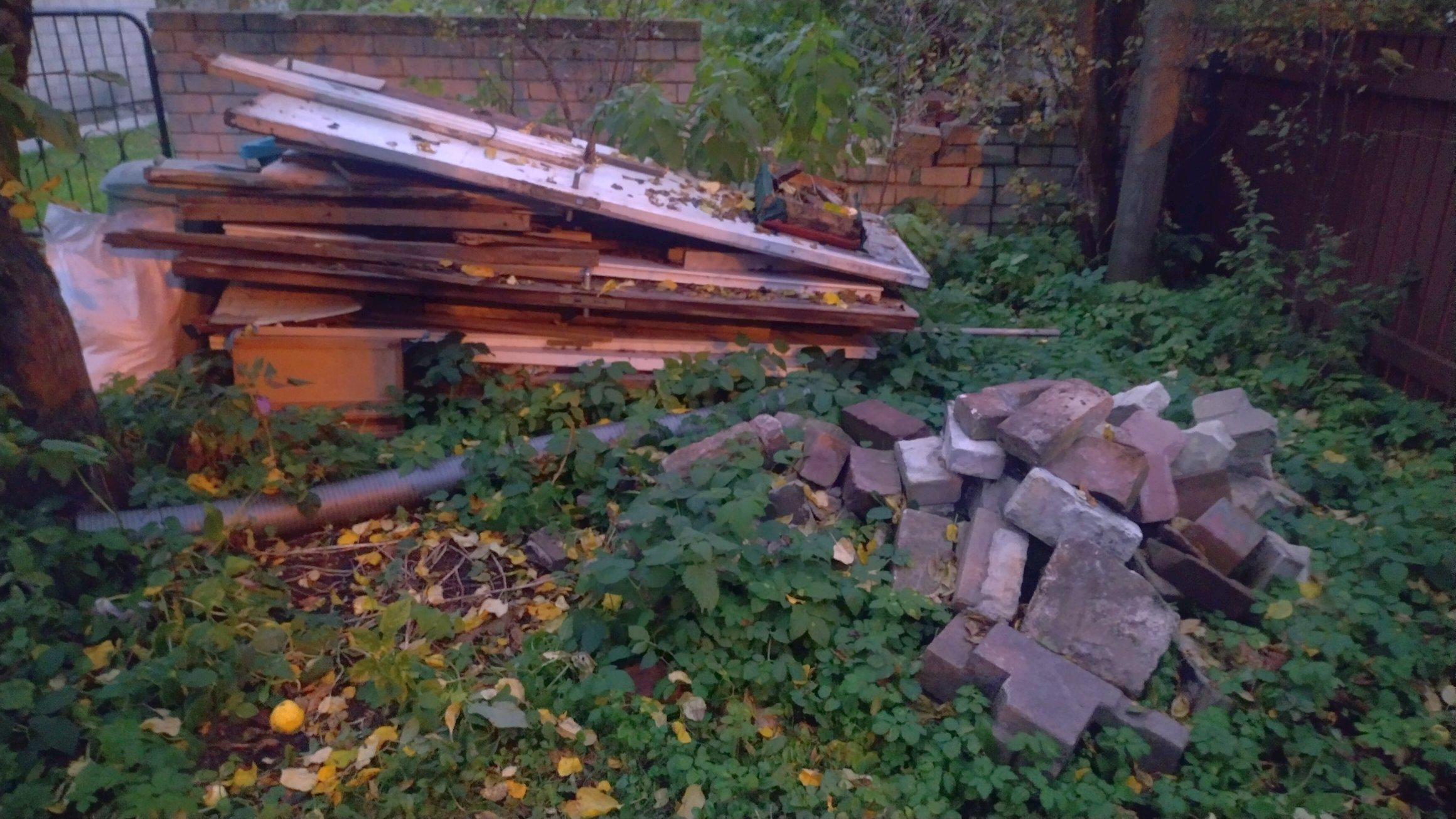 Töö sisaldab lammutusjääkide pealelaadimist (kõrge veok või konteineri ei sobi) ja äravedu koos utiliseerimisega. Orienteeruv kogus 4m3 sh puit ja puituksed 2,4m3, silikaattellised 1m3, lehtklaasi tükke 140L konteineris , erinevat prügimaterjali