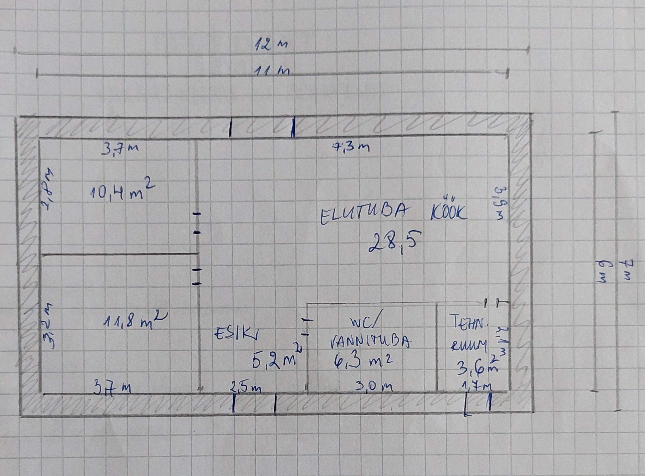 1-kordne kivimaja kelpkatusega hajaasustuse piirkonnas Anija vallas, ehitusaluse pinnaga 85 -90 m2, lisan planeeringu. Geoalust hetkel pole, võib lisada ka selle maksumuse. Elamusse planeeritud õhk-vesi küte, vesi puurkaevust, reovee jaoks rajatav imbväljak.