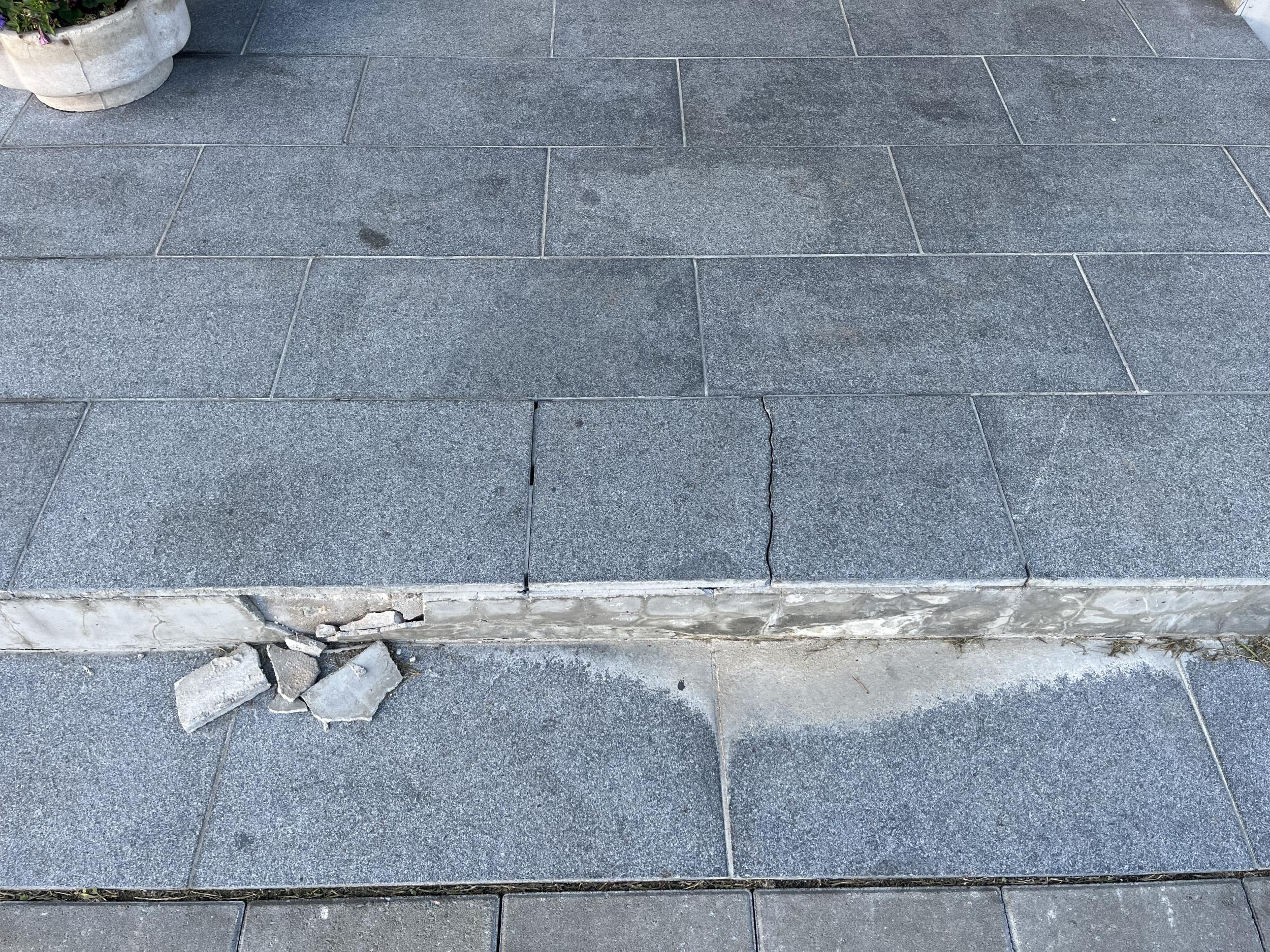 Sakus asuval kortermajal vaja parandada trepp. Üks kiviplaat on katki, lisaks üks veel lahti.