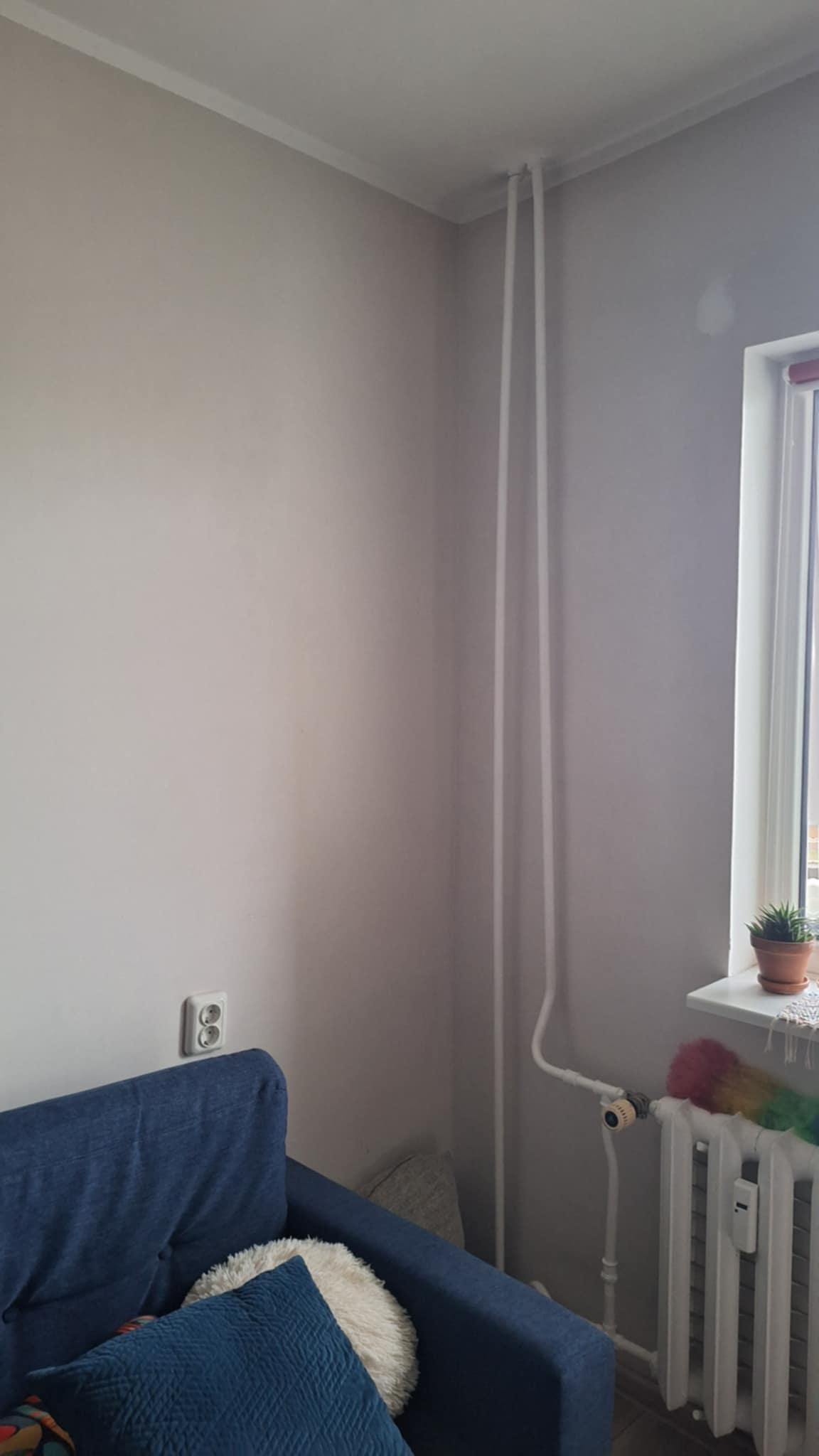 Praegu 3 seina värvitud, ühel tapeet. Ühes seinas aken ja rõduuks.