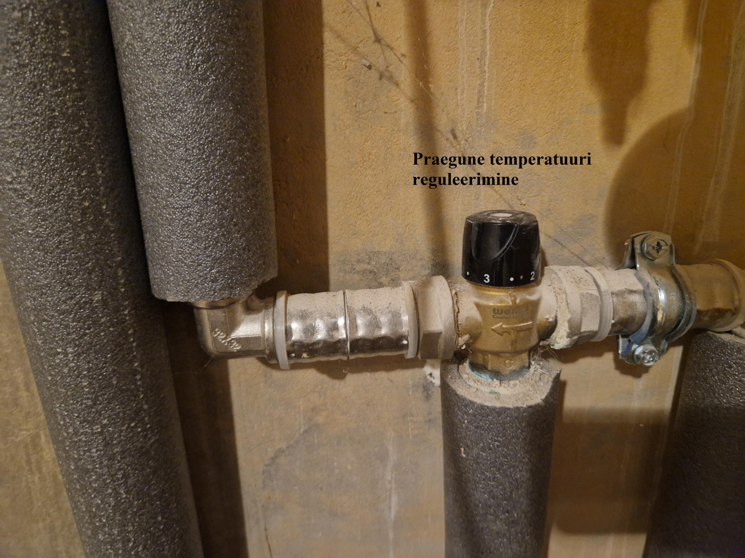 Olemas on gaasikatel Buderus Logamax Plus GB172i. Praegu töötab 1. korruse põrandaküttega manuaalselt reguleeritav 3-tee termosegisti ja tsirkulatsioonipump. Nüüd on ka maja teine korrus ning keldrikorrus viidud põrandaküttele, mistõttu on vaja need katlaga ühendada. Lisaks tuleks olemasolev manuaalne 3-tee segisti asendada automaatsega.