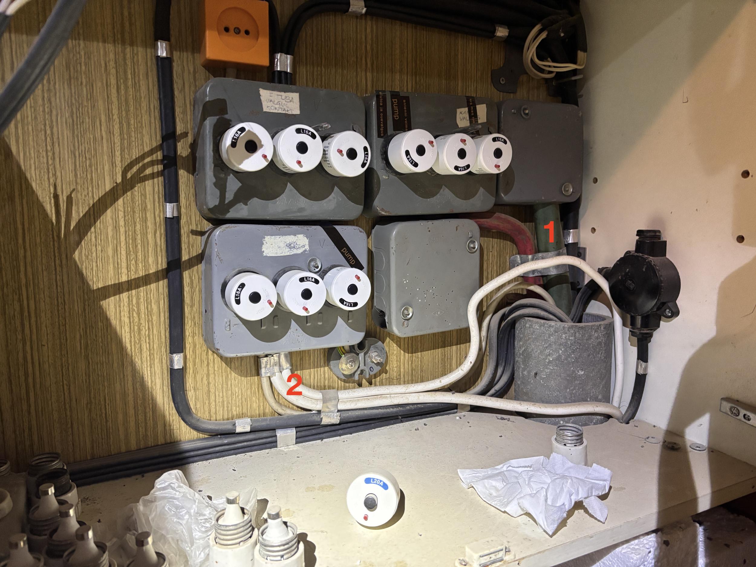 3. Esimese korruse kaabeldus on umbes 10 aastat tagasi paigaldatud ja heas korras; Hetkel tuleb see uue kilbiga ühendada (pildil tähistatud nr 2). Hiljem, kui esimesel korrusel põranda vahetame, siis tuleb sinna ka uus kaabeldus vedada.