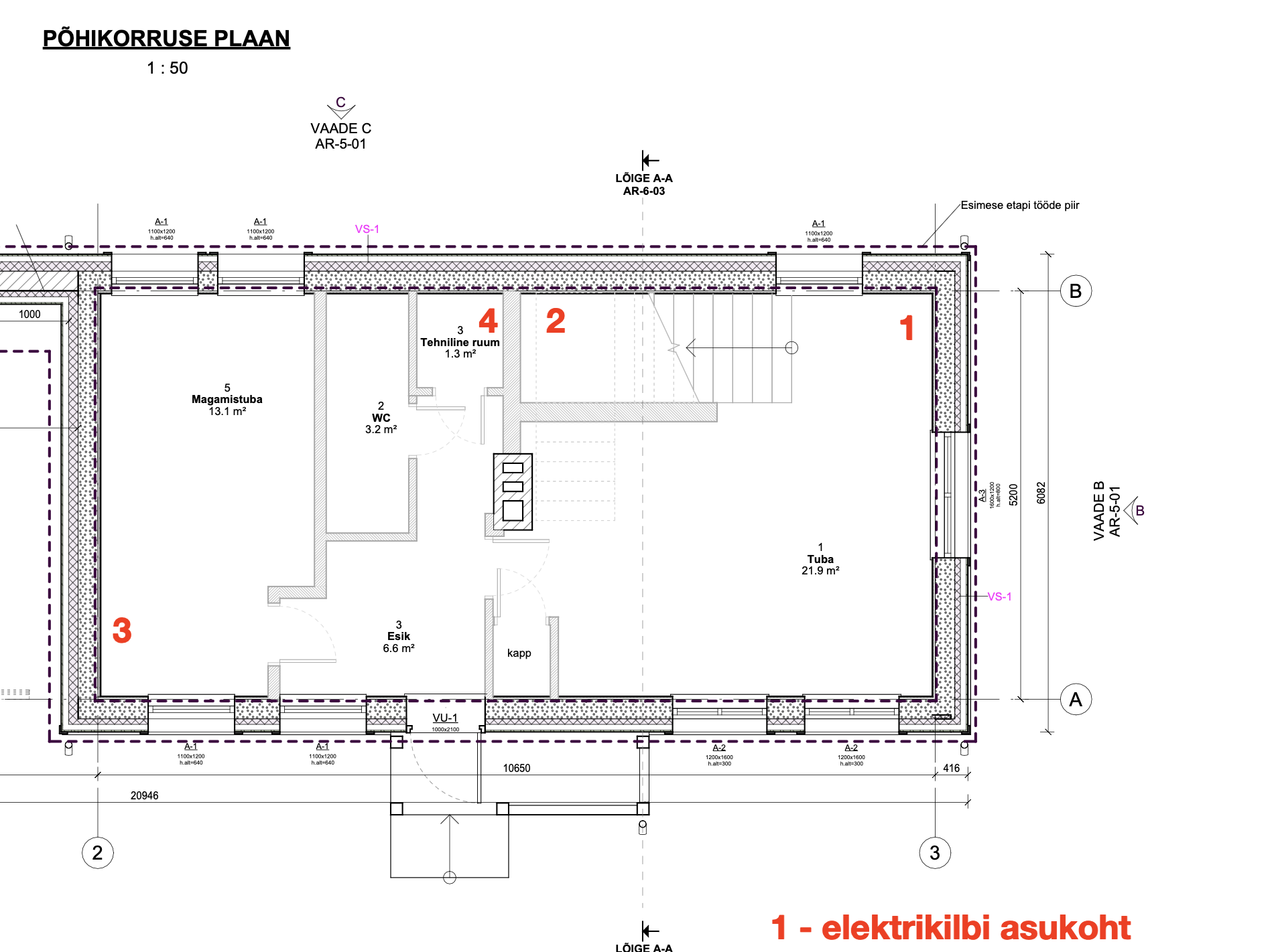 4. Elektrikilbi asukoht on ära märgitud põhikorruse plaanil (nr 1).
