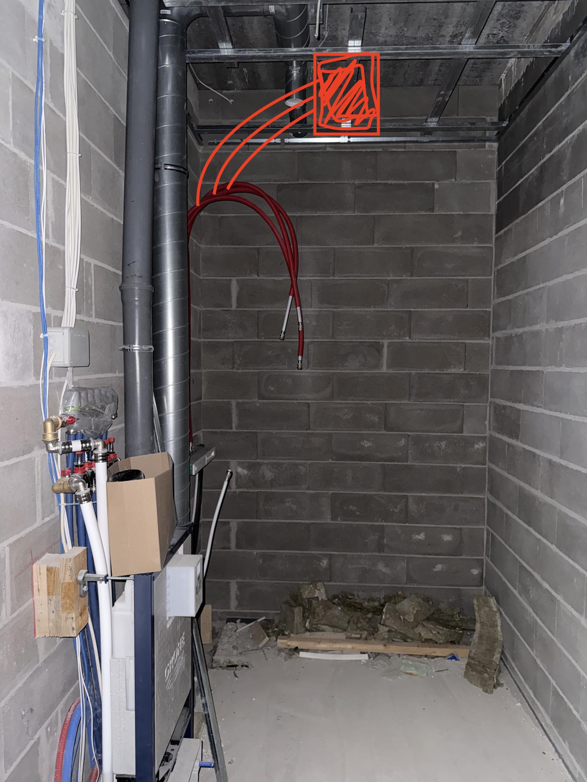 • Hetkel käivad kipsitööd – vaja paigaldada laeduši alus enne lae sulgemist, soovitavalt novembri jooksul.