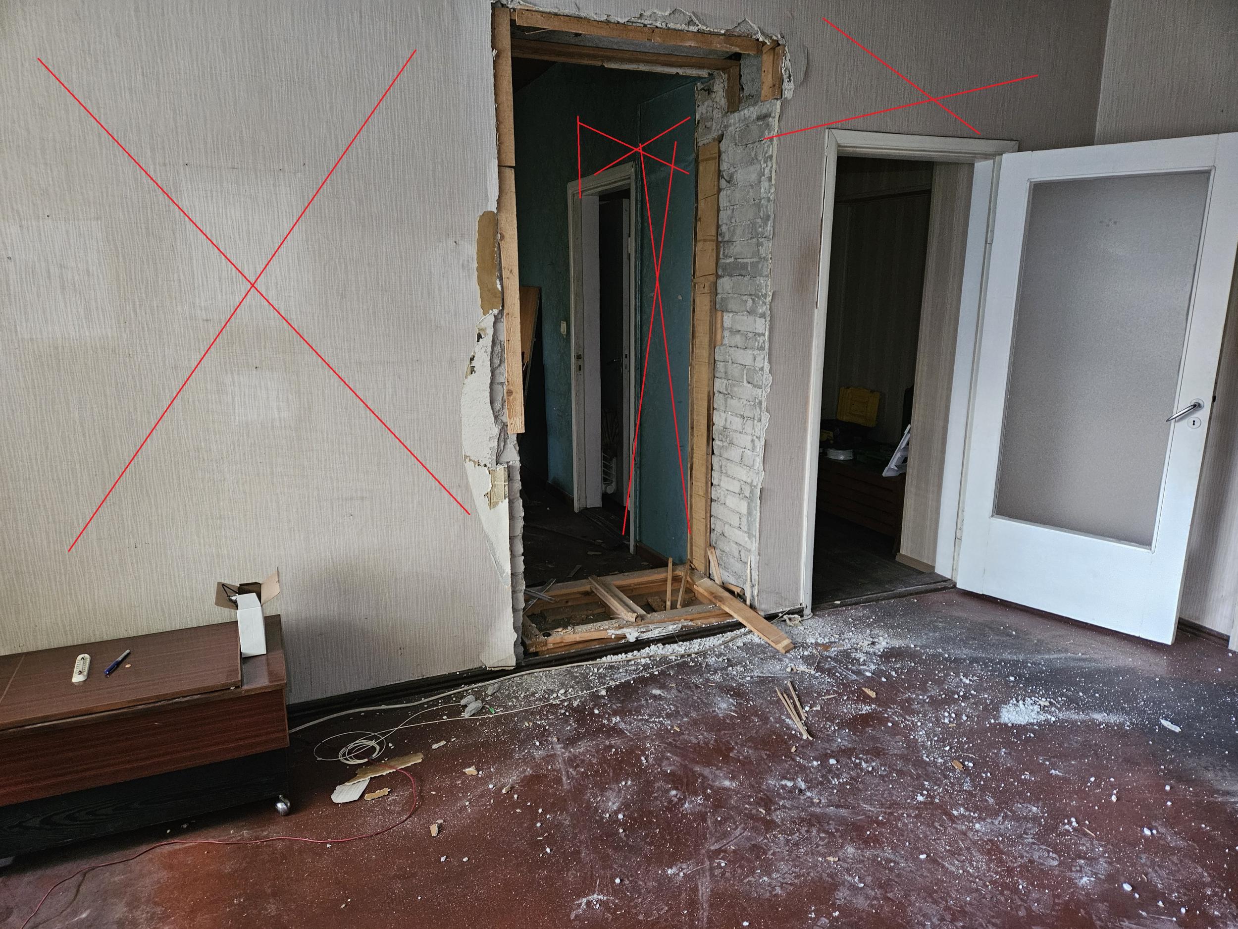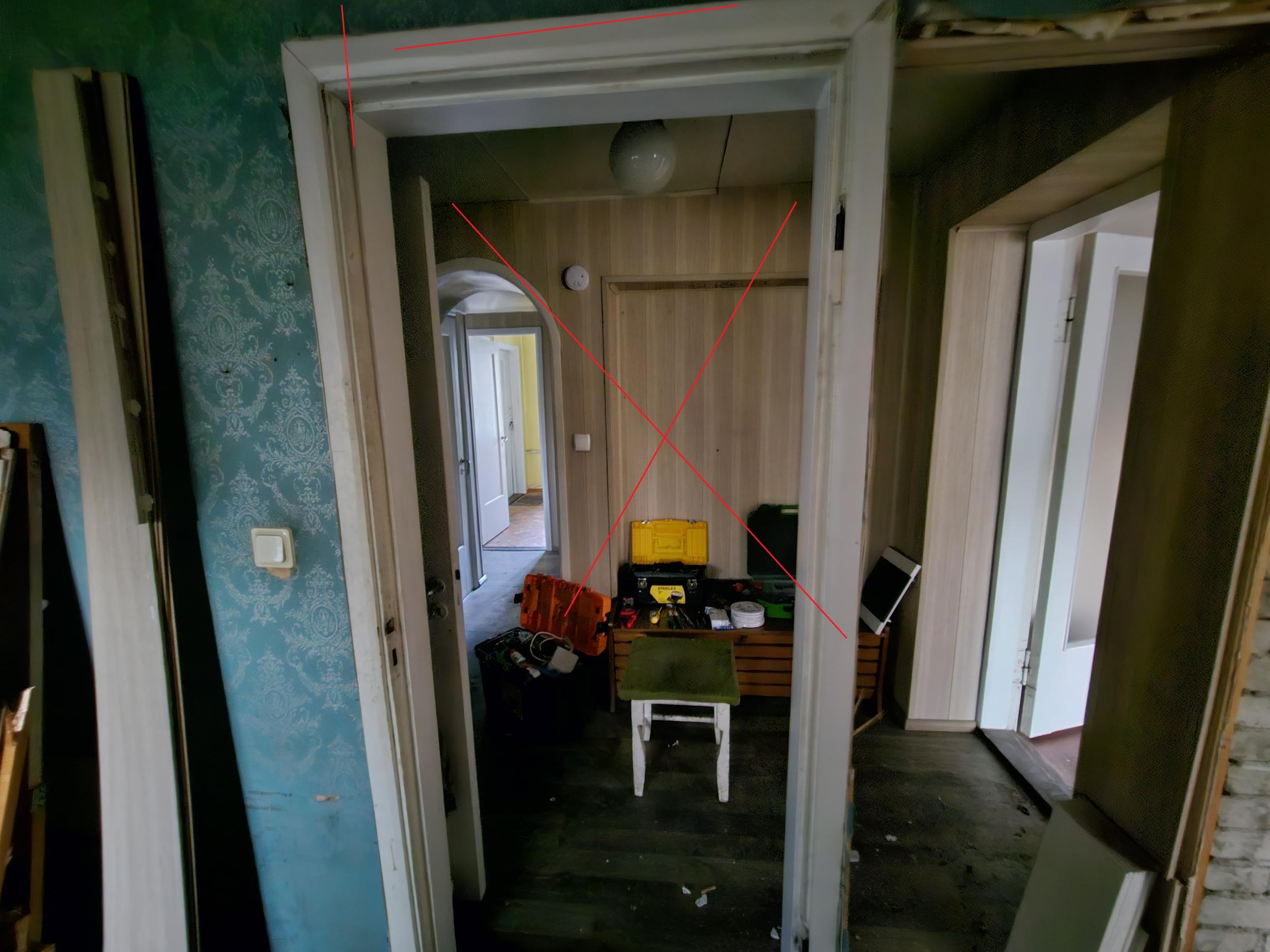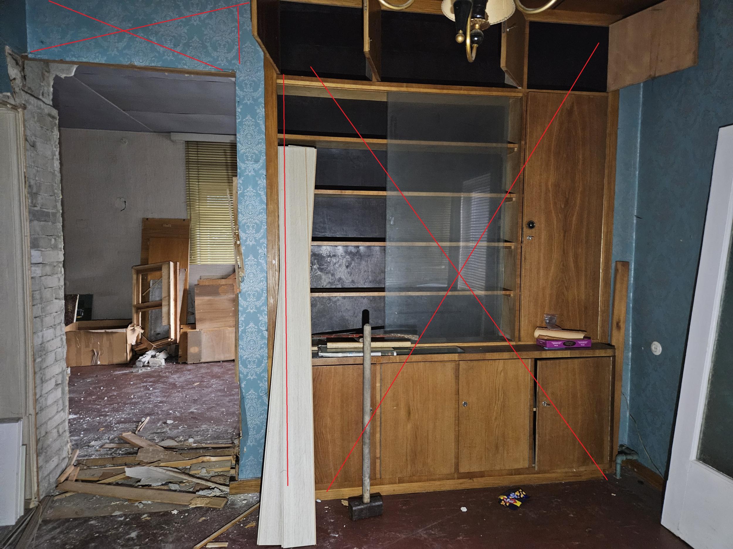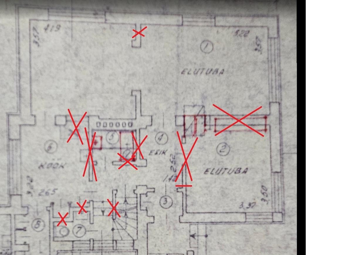 Kahe elutoa vahel on kandesein kus post jääb alles, aga sisse ehitatud kapimööbel ja selle tagune sein ära. Sarnaselt nagu kõrvalt kapp juba läinud.