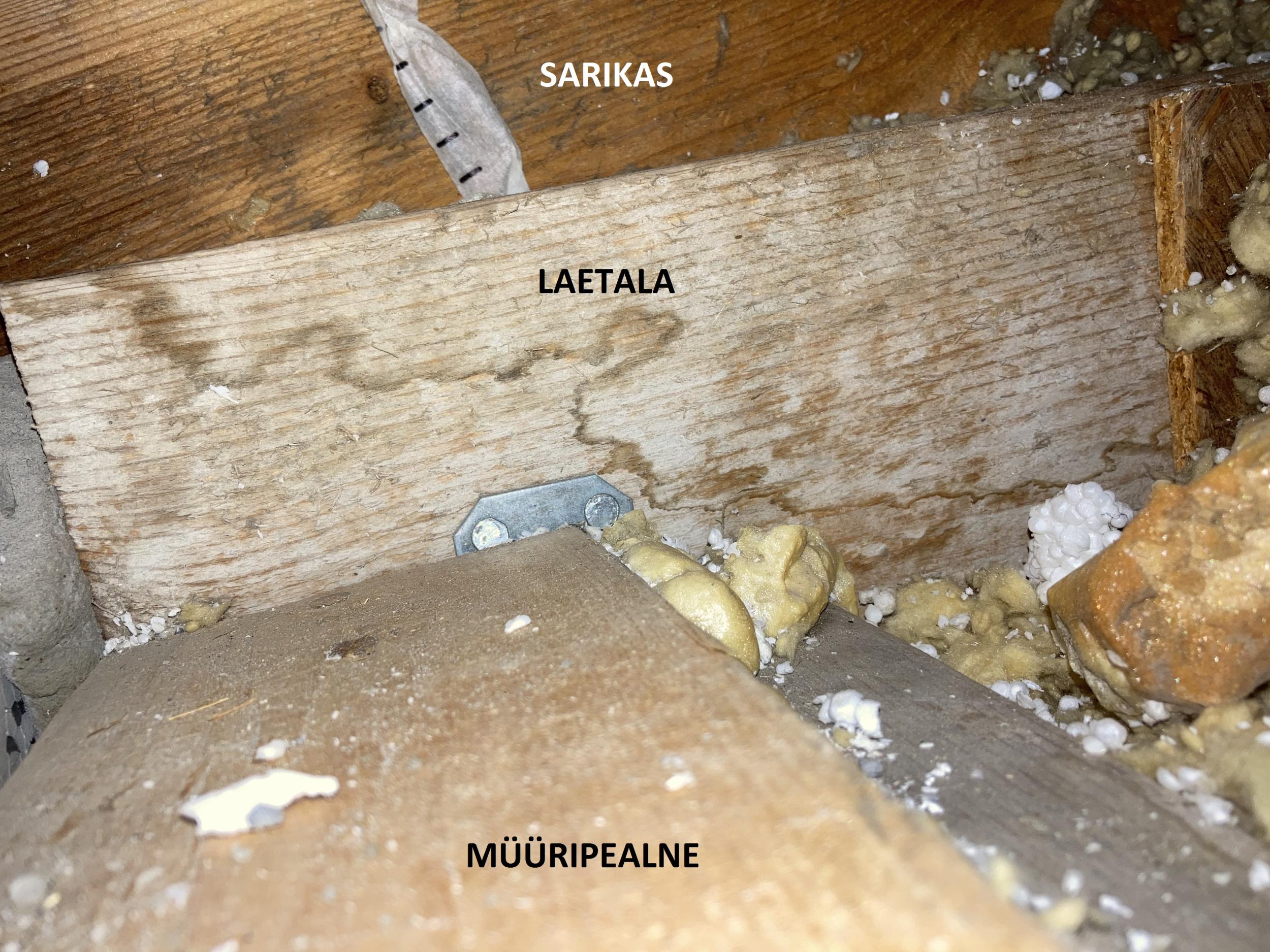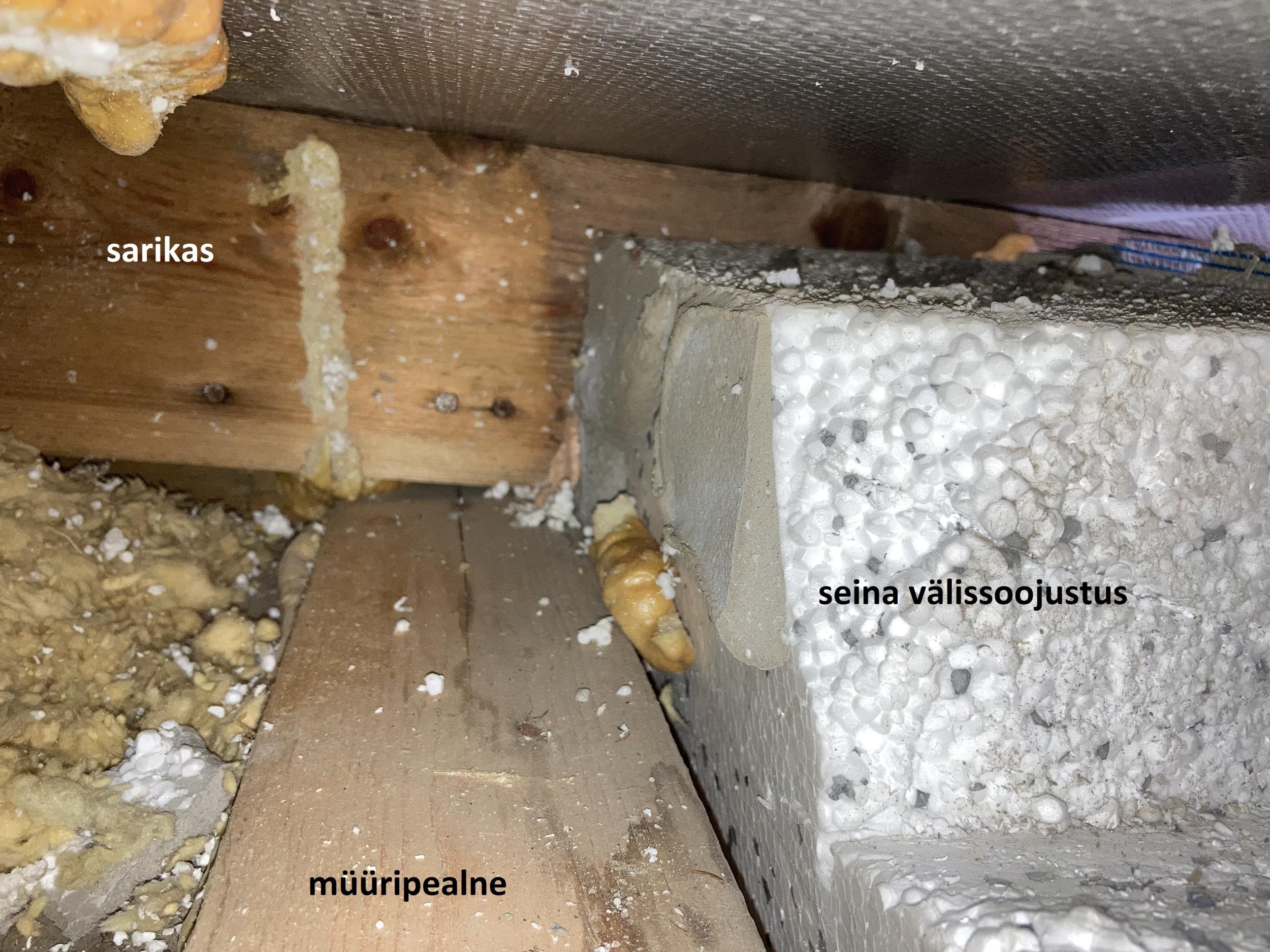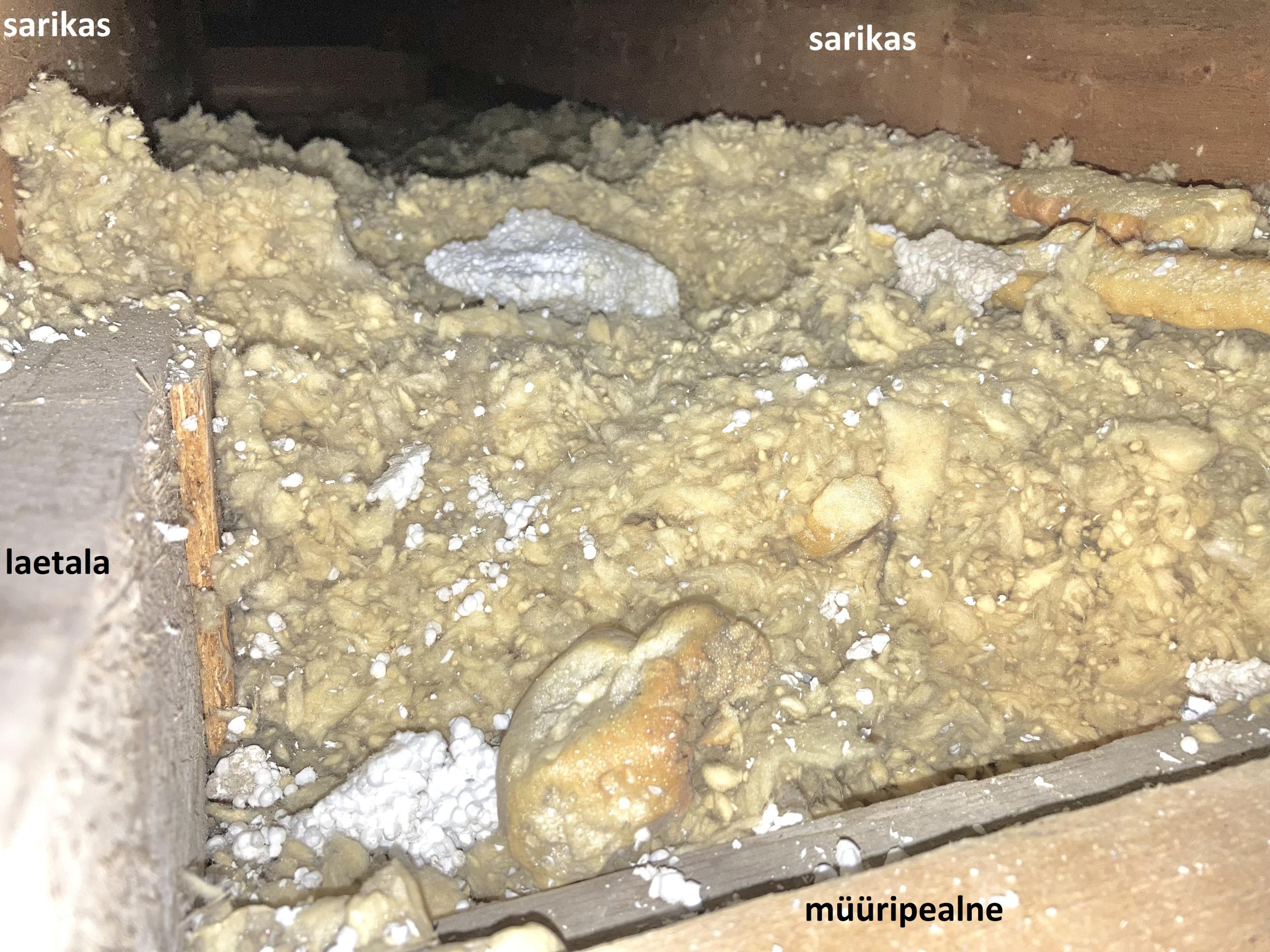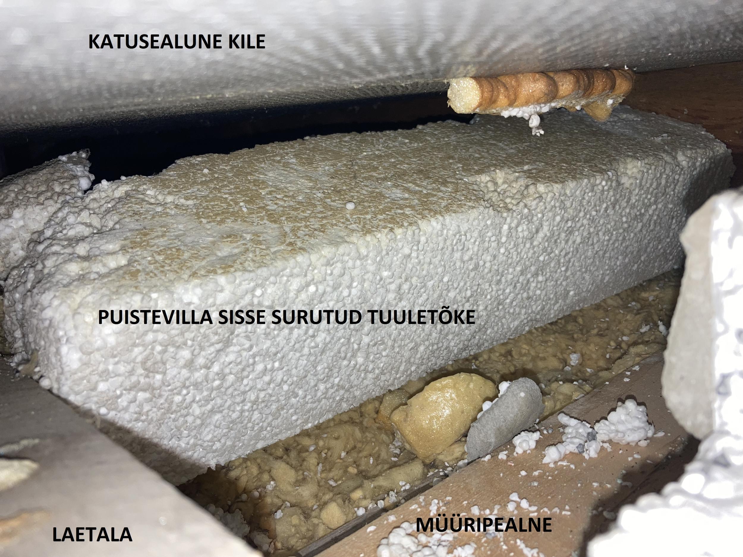Üks naabritest soovis oma madalamasse räästasse tuulutusavasid teha ja värbas selleks töömehed. Ilma minu loata ja teadmata tehti avad ka minu räästaossa. Pööningu konstruktsiooni tundmata ja puudulike teadmistega soojustuse toimimisest puuriti augud avatud tuulekasti kaudu läbi EPS-soojustuse otse puistevilla sisse või vahetult selle kohale. Töö käigus murdusid osadel EPS-plaatidel servad, osa plaate aga suruti lihtsalt liimist lahti ja lükati villa sisse pikali. Mõnes sarikavahes on ripakil väline krohvikiht, mõnes on vigastatud katuse aluskilet. Nüüd on mõnes kohas müüri ääres villakihi paksus isegi alla 20 cm. Lõhutud kohtades puudub enne puistevilla tuuletõkkebarjäär ja kontrollimatul õhuvoolul on vaba tee otse villa sisse.