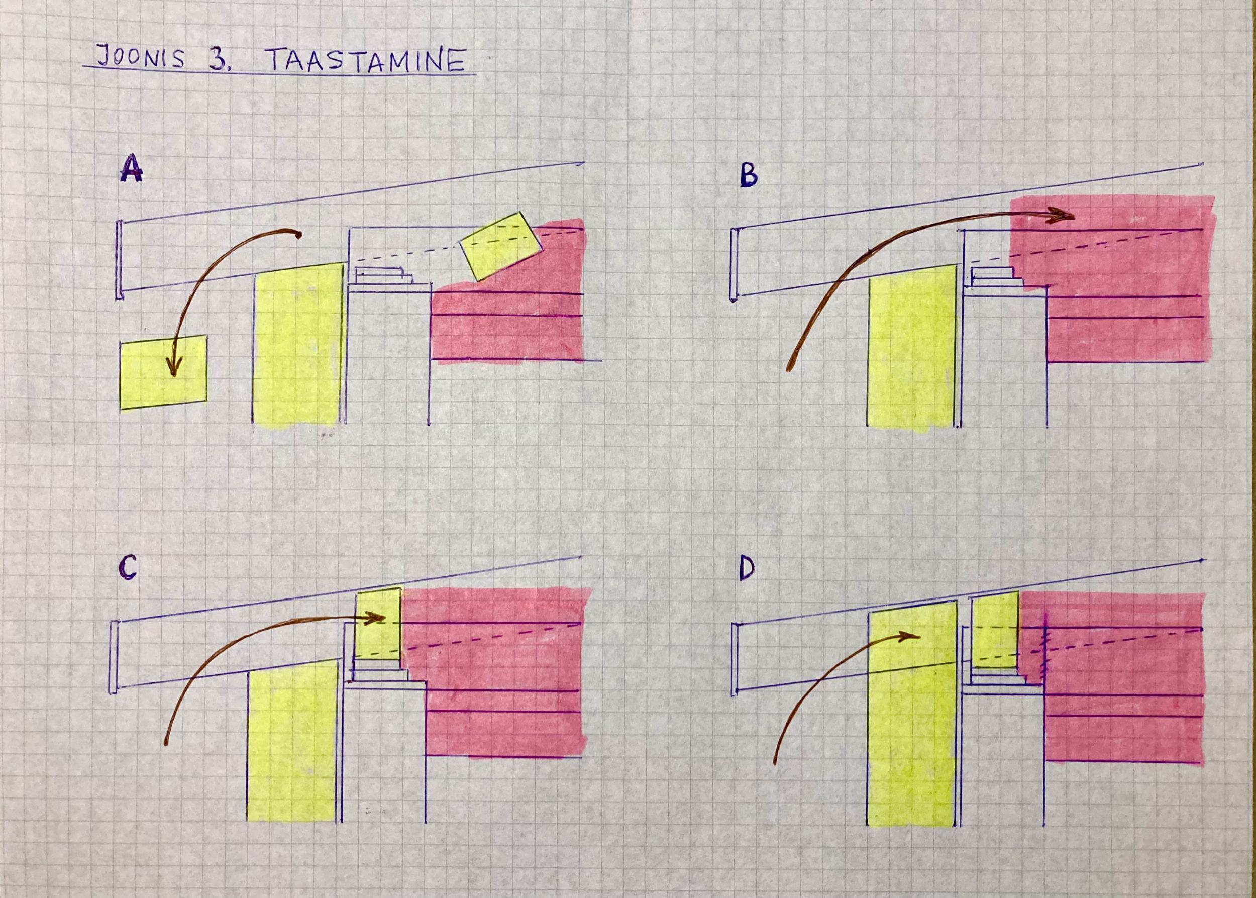 6. Panna müüri ja katusekile vahele uus sobivast materjalist tuuletõkkeplaat või plokk. (joonis3C)