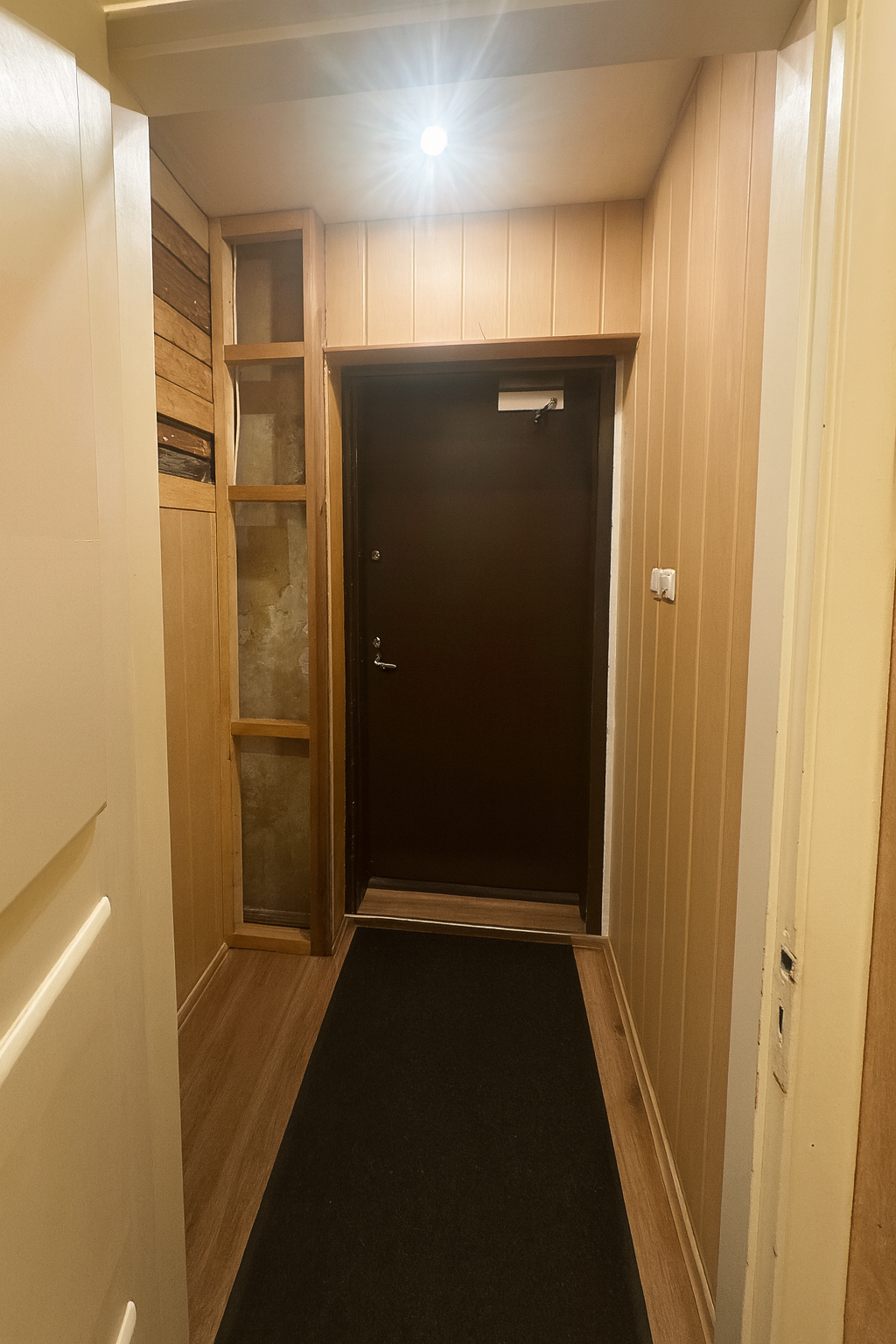 Kõrval oleva väikse koridori vana laminaadi eemaldamine ja uue paigaldus ca 8x1,5m. Seina värvimine 155x2,50cm