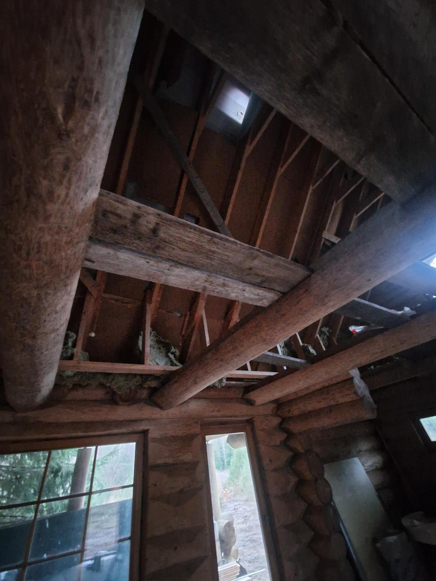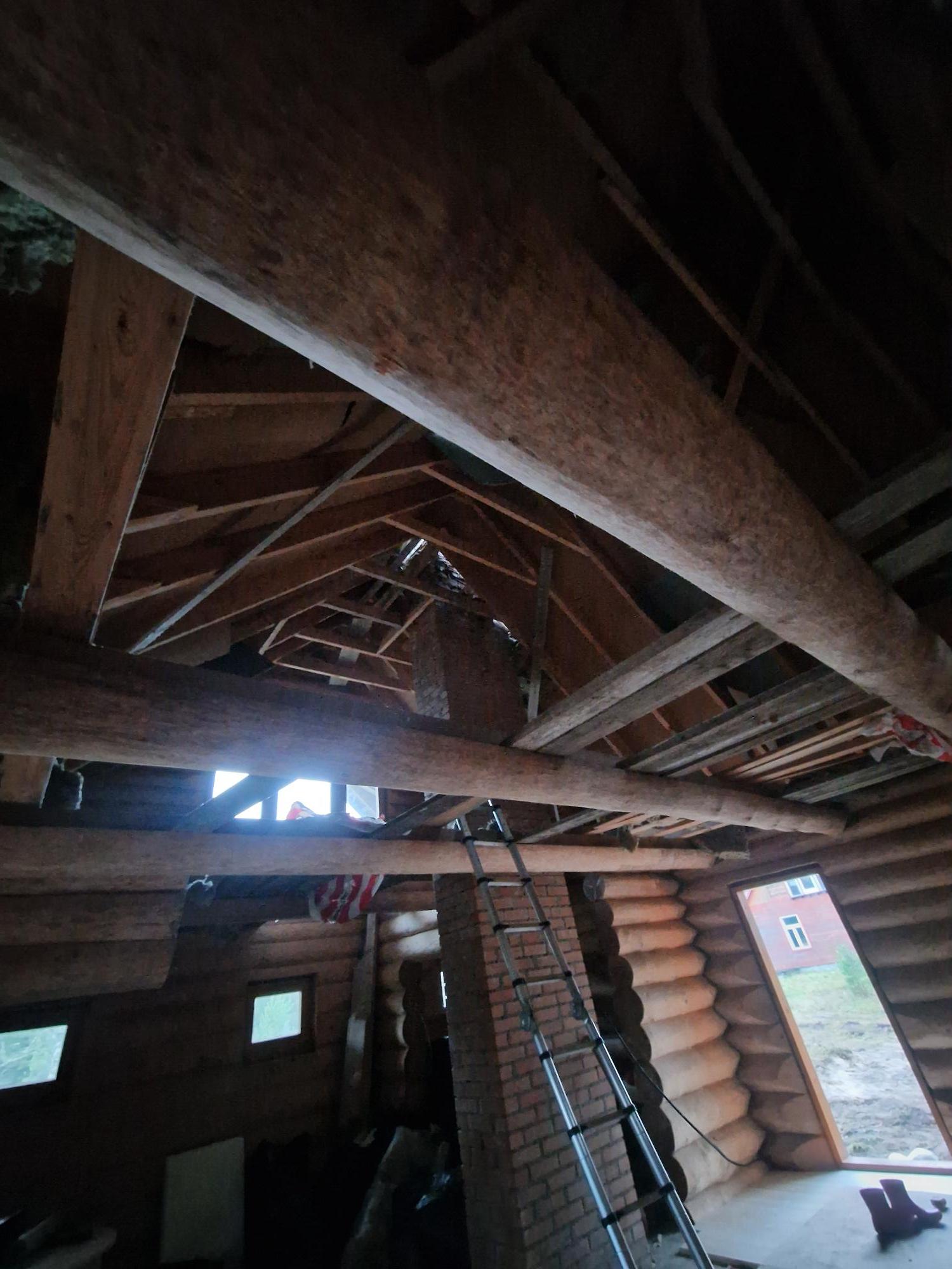 2 korruse pindala on 43 m2 ja põrandalaud oleks kuusk. Katuse all on osaliselt tuuletõkkeplaat ära kukkunud või pole üldse, see oleks vaja korda teha, kuna ehitus on seisma jäänud aga korralik