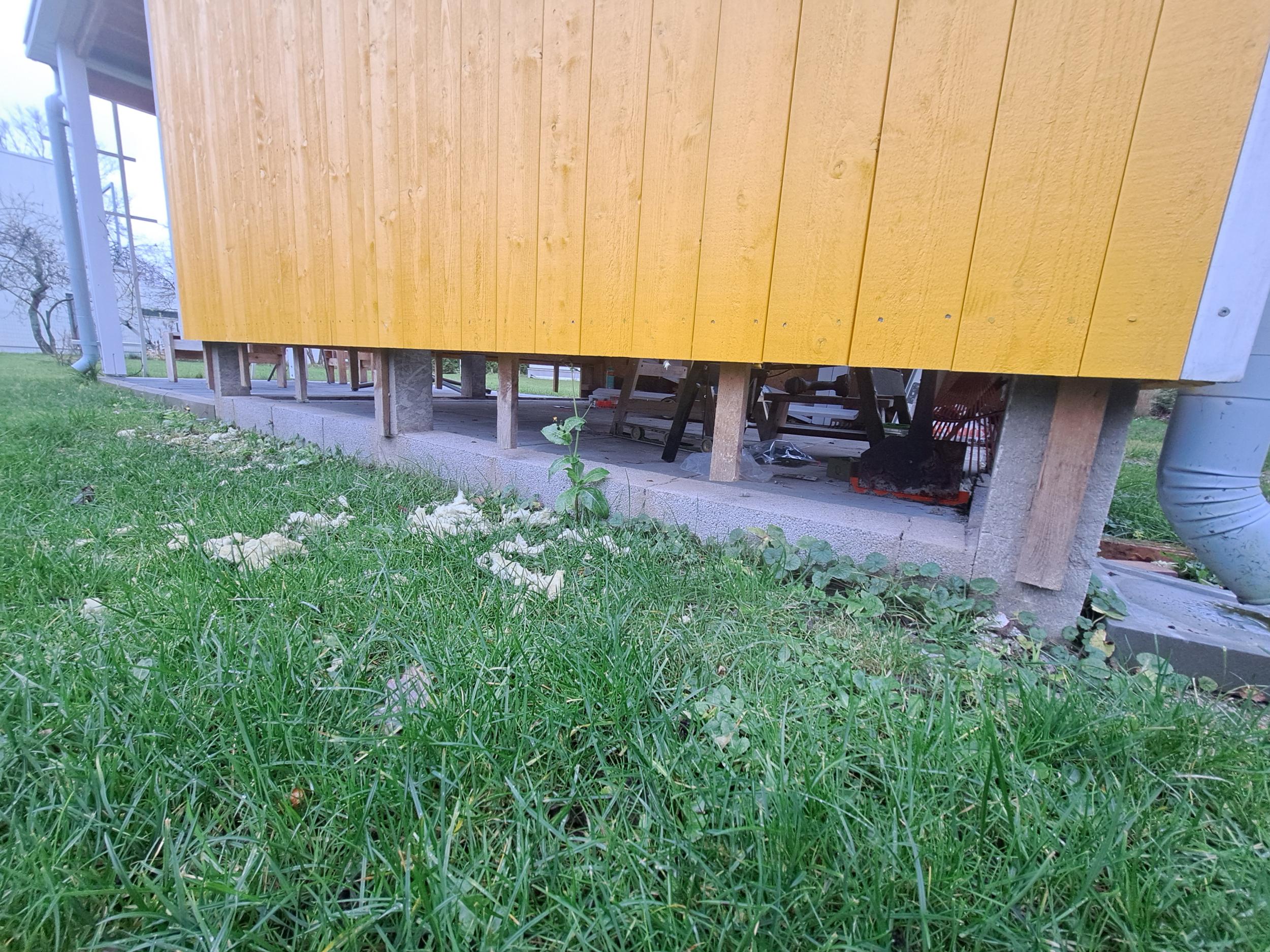 Bauroc poorbetoonist plokkidest teha sokliosa, mis praegu puudub, kuigi seinad ja hoone ise on valmis. Ehitatav sokliosa toetub bet.plokile ja täidetava ava kõrgus on 32 cm (kuni olemasoleva seina alumise rõhtprussini). Bauroci ja prussi vahele mingi isolatsioonikiht samuti. Sokliosa teha hoone otsa 3 külge, kogupikkuses 8m