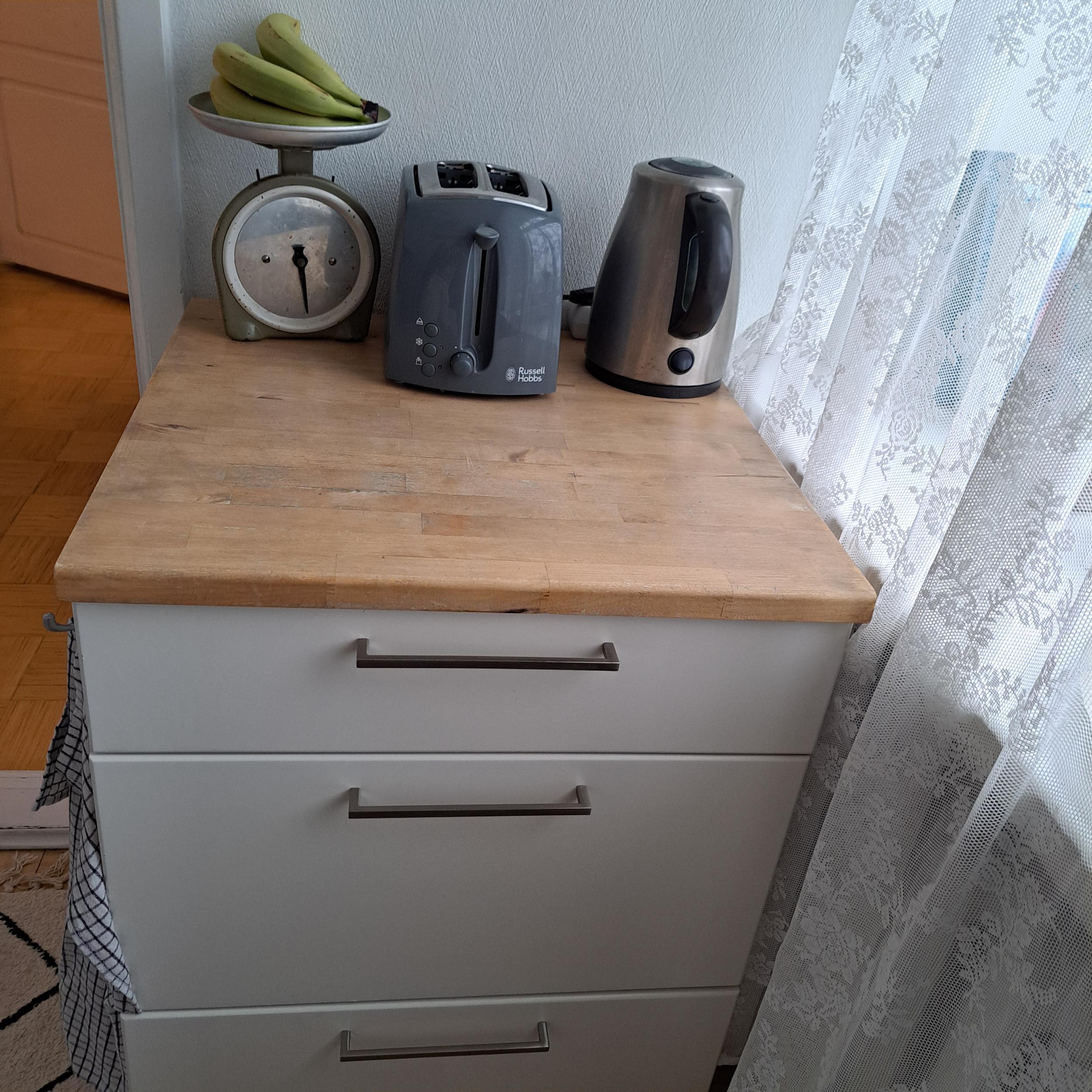Oleks vaja vahetada köögis puidust töötasapinnad Ikea laminaadist töötasapinna vastu - üks pikem töötasapind, milles on valamu ning all kardina taga on pesumasin ja nõudepesumasin (kappe ei ole all) ning väiksem tööpind sahtliboksi peal. Töö tegija peaks tooma Ikeast uue töötasapinna - pilt on lisatud, eemaldama vanad töötaspinnad, lõikama uued töötasapinnad mõõtu, need paigaldama ning tegema lõpuks ka silikoonimistööd.