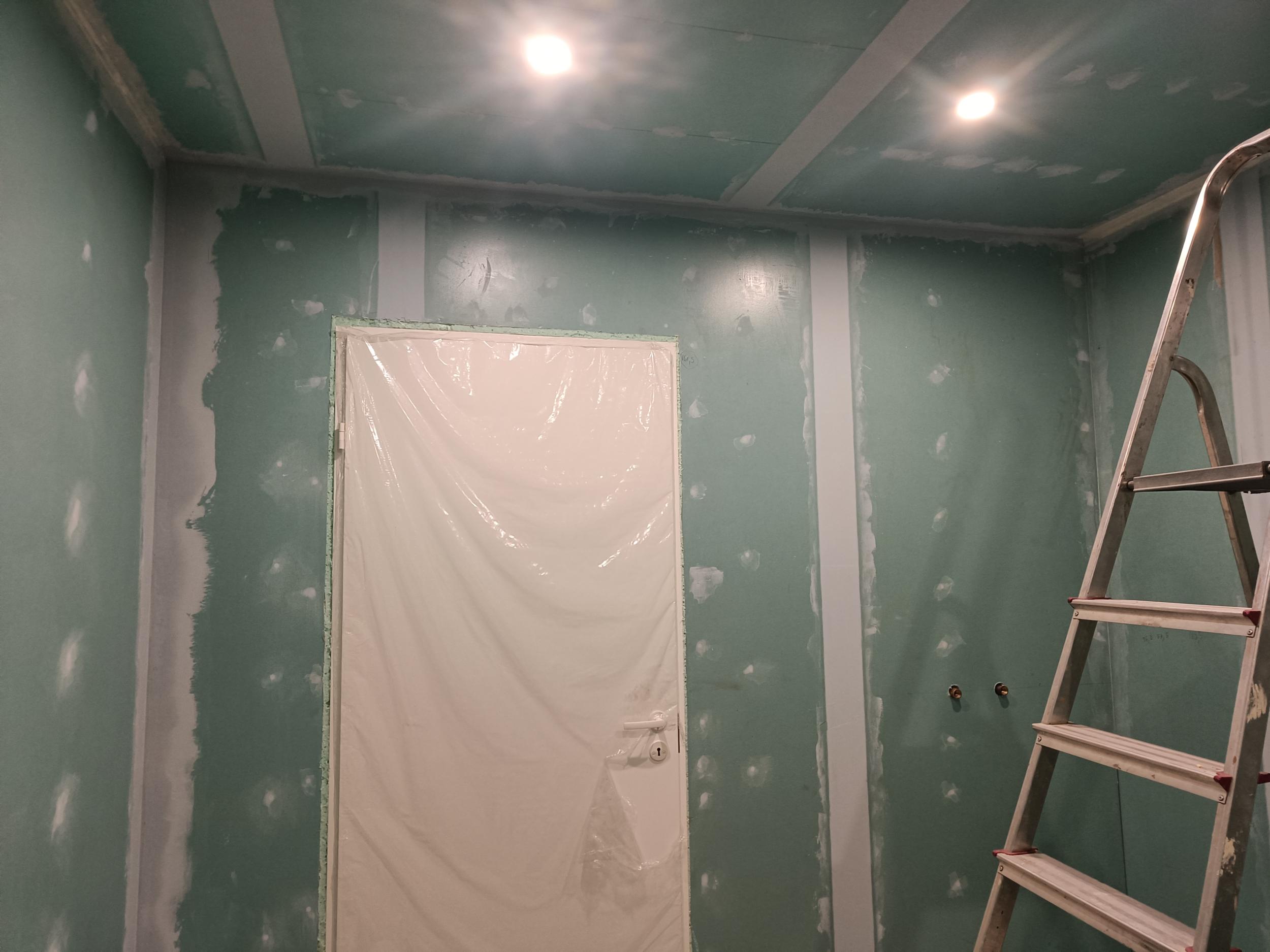 Oleks vaja plaatida betoonpõrand ning 3 kipsseina (üks sein on juba dekoratiivselt värvitud). Keraamilised plaadid on olemas, mõõtudes 20x20 cm. Kipsplaadid on töödeldud hydrostopiga ja ühenduskohad pahteldatud veekindla pahtliga. Lisaks plaatmisele oleks tarvis ühendada wc-pott, boiler ja segistid (olemas).