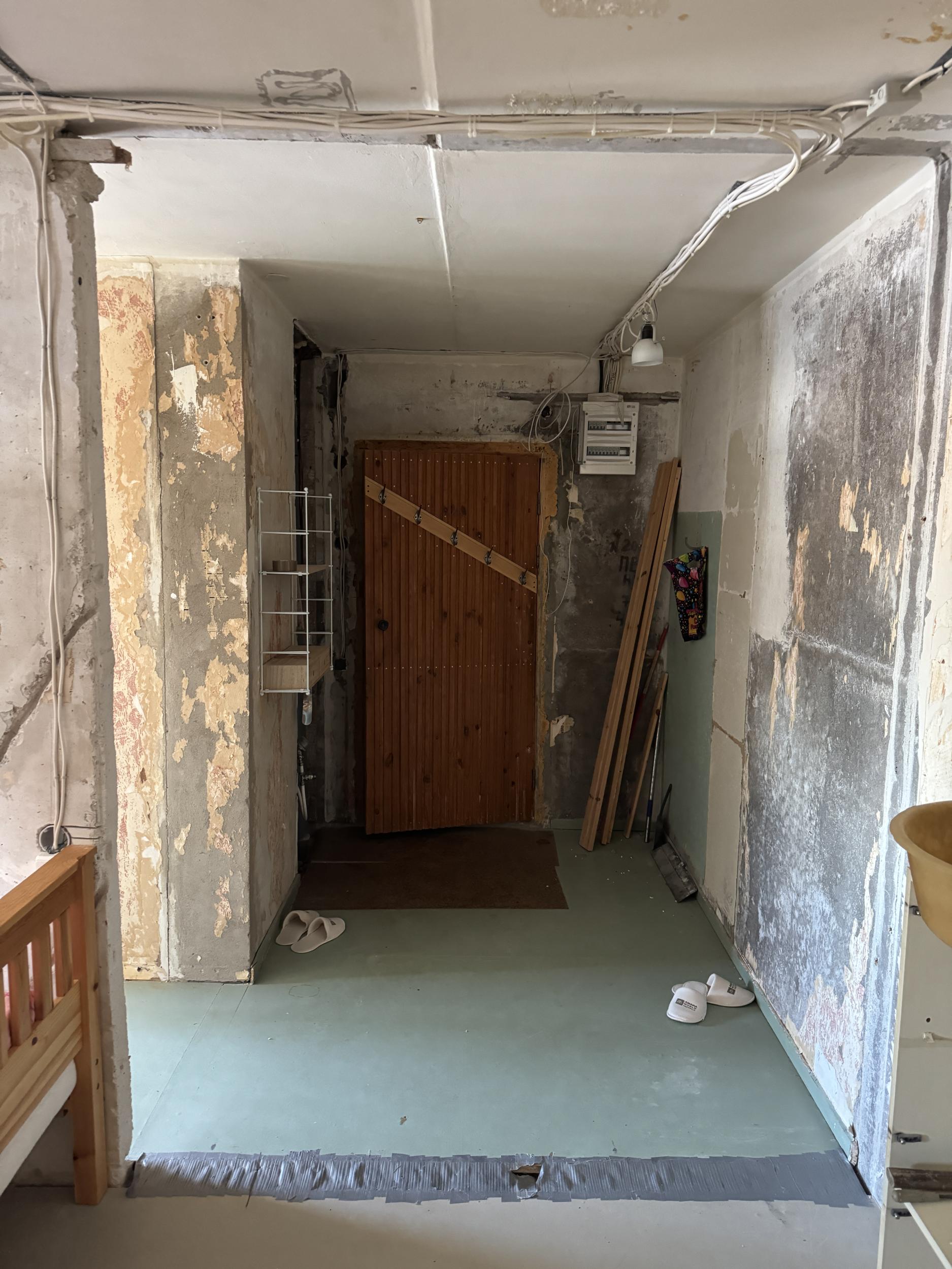 Palume hinnapakkumist korteri täielikuks remondiks. Lammutustöödest oleks vaja veel teha vannituba (vanad seinad maha võtta ja uued seinad üles ehitada, sellega koos laiendada ka vannitoa pinda, nagu see joonisel tehtud). Lisaks välisuks vahetada.