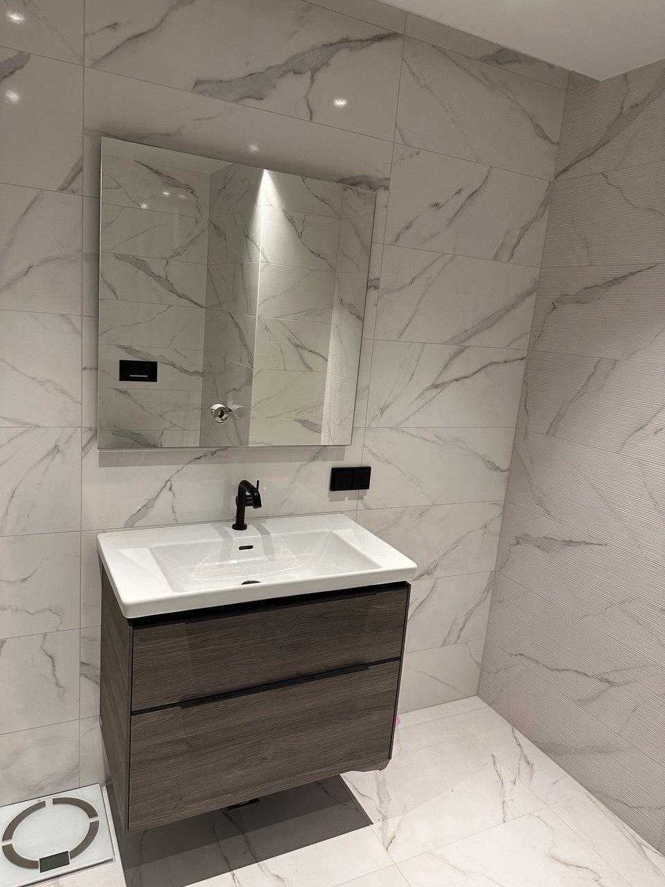 • Tõsta peegel, valamu ning elektripistikud ca vasakule poole (täpne nihke pikkus määratakse kohapeal).