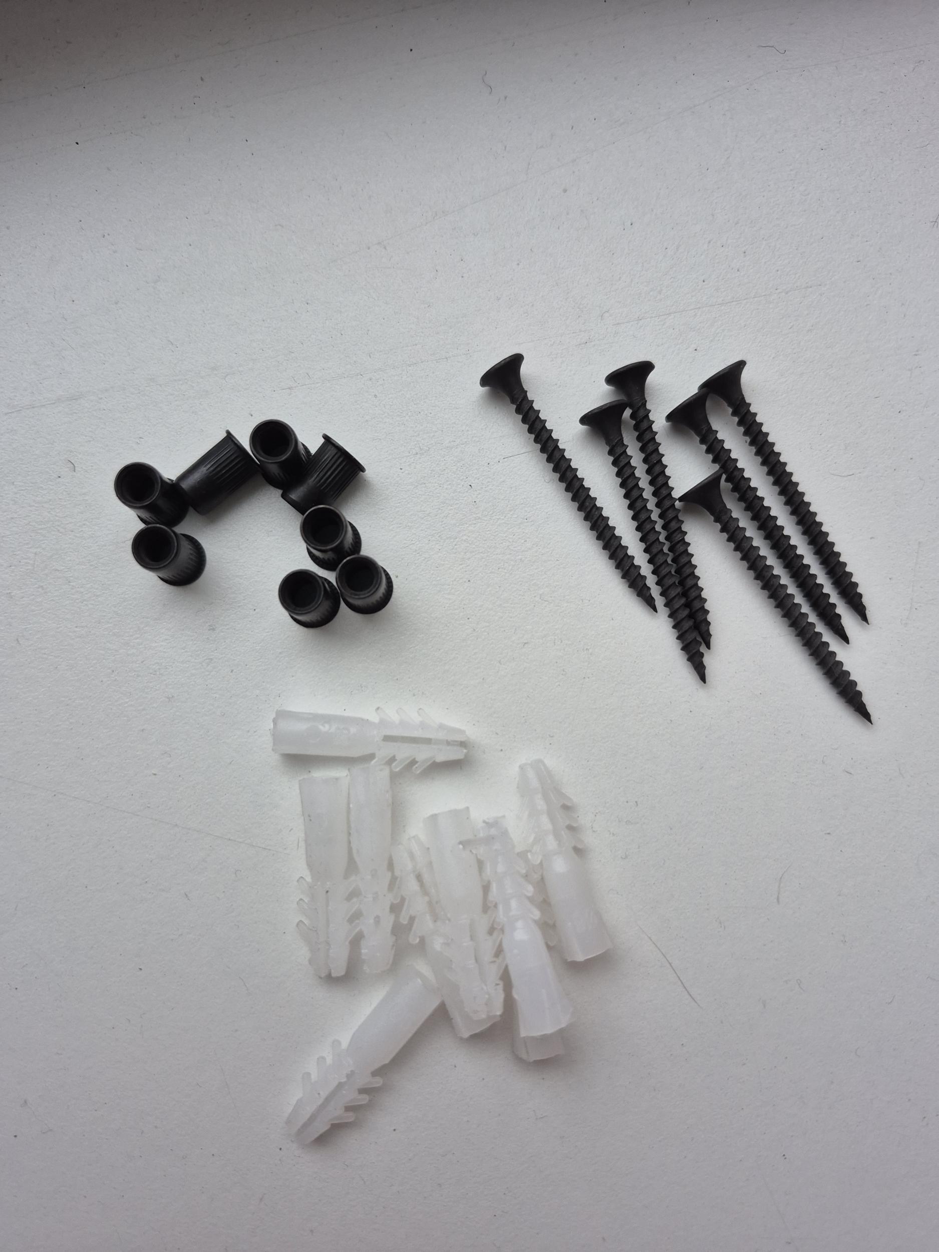 Vajalik metalleseme seinale kinnitamine. Tegu on kipsseinaga, kaasa tulid pildil näidatud kinnitusvahendid. Võimalik, et need on tarvis välja vahetada. Kohapeal puudub akutrell.