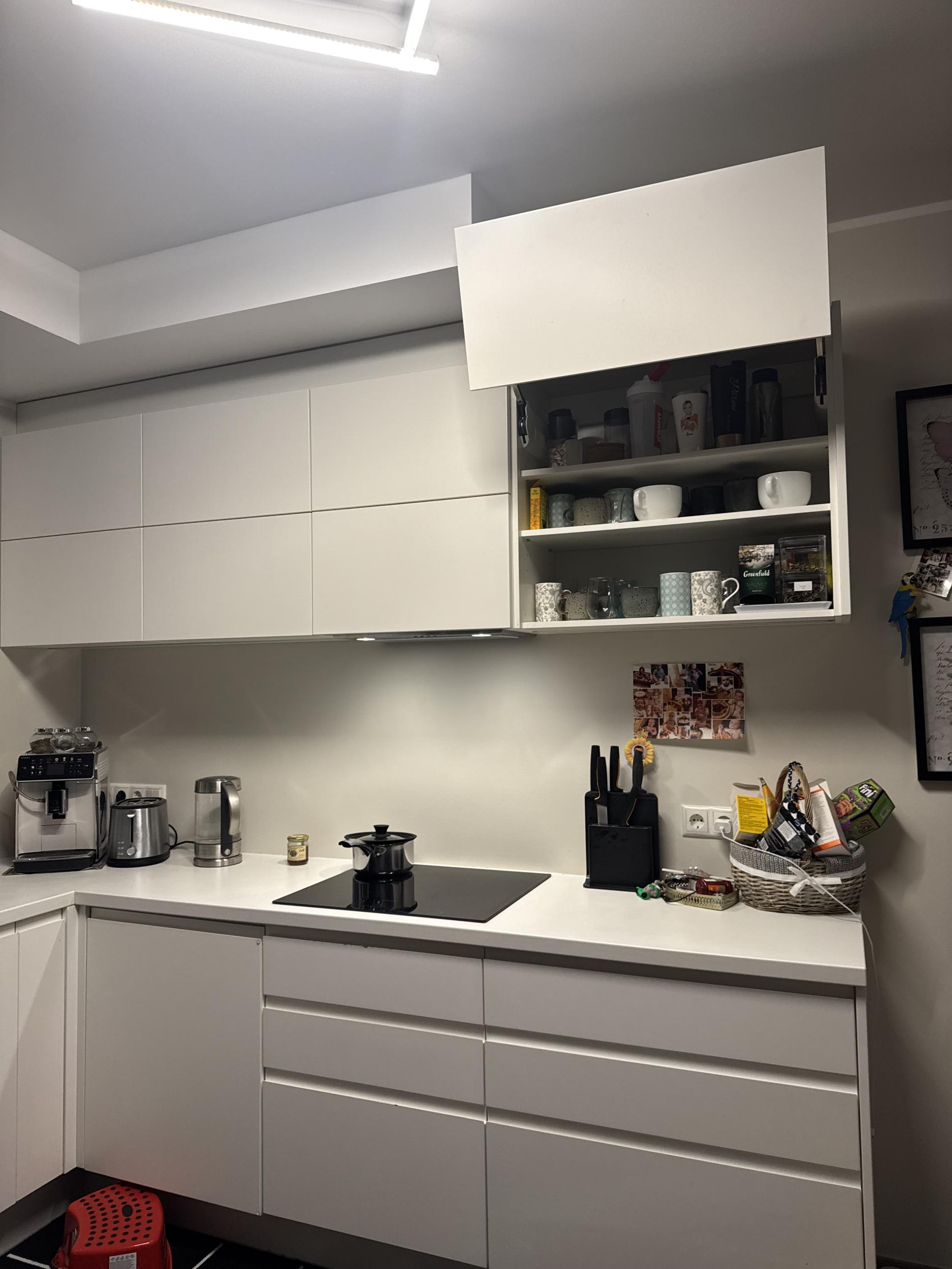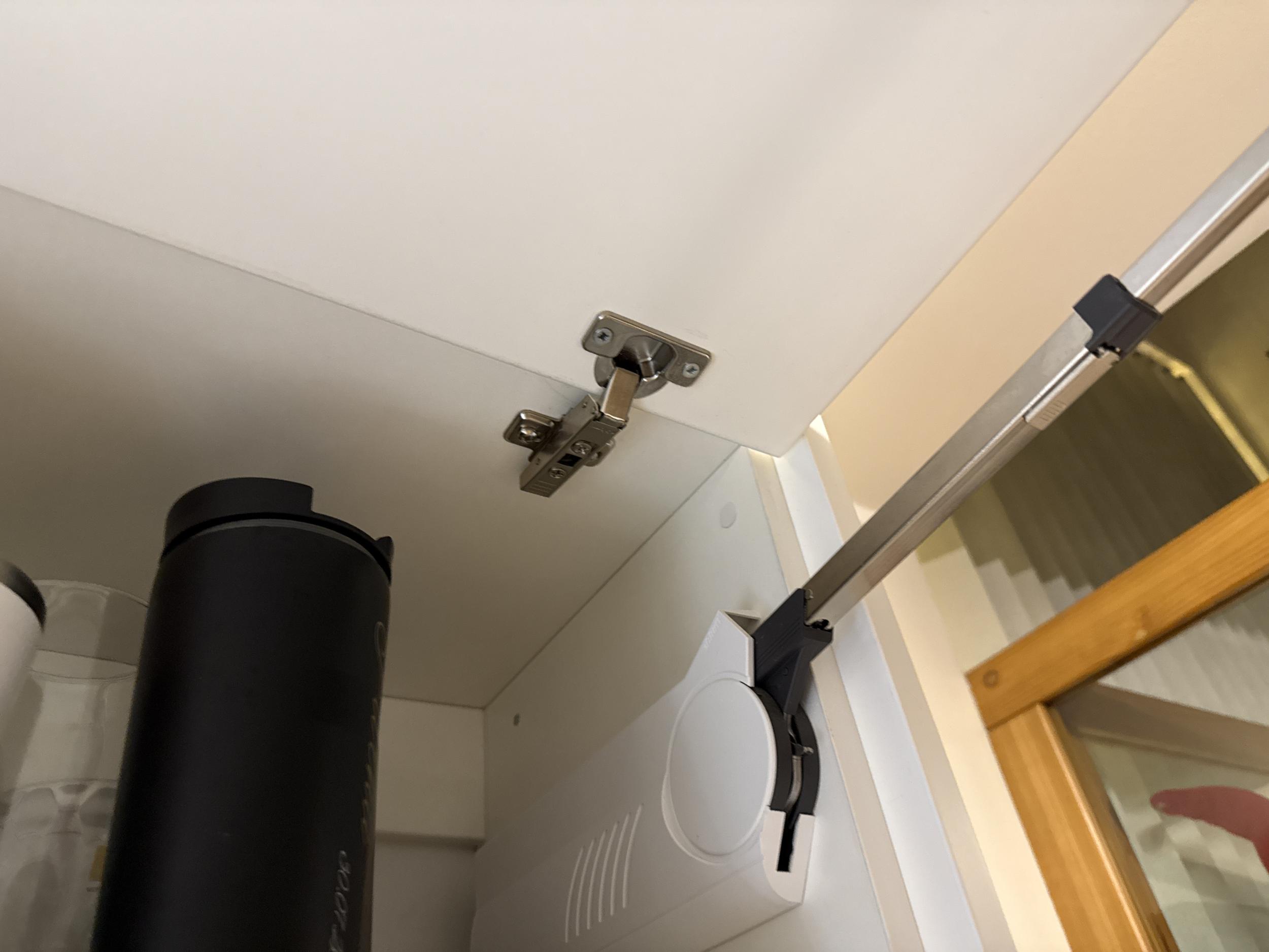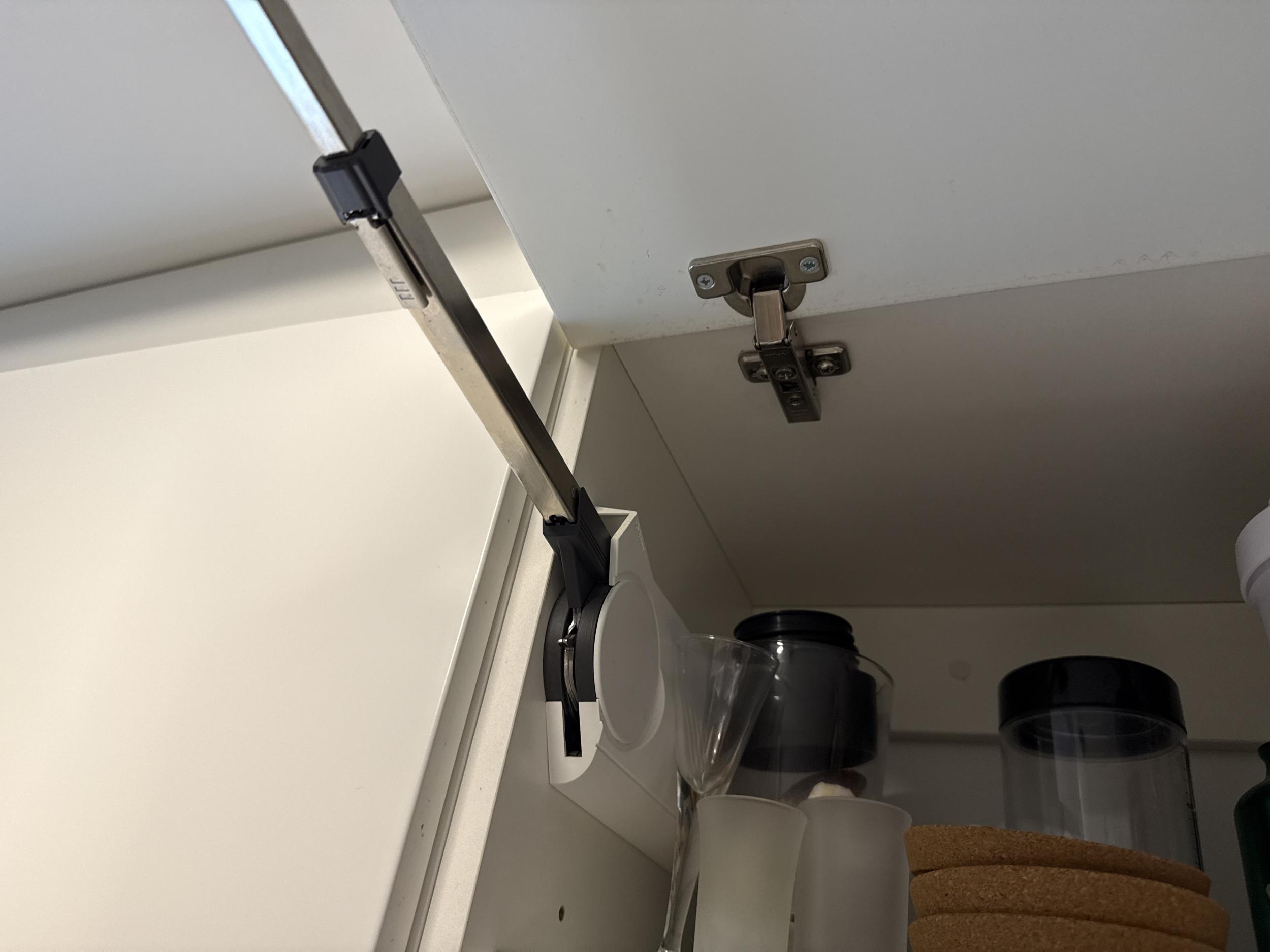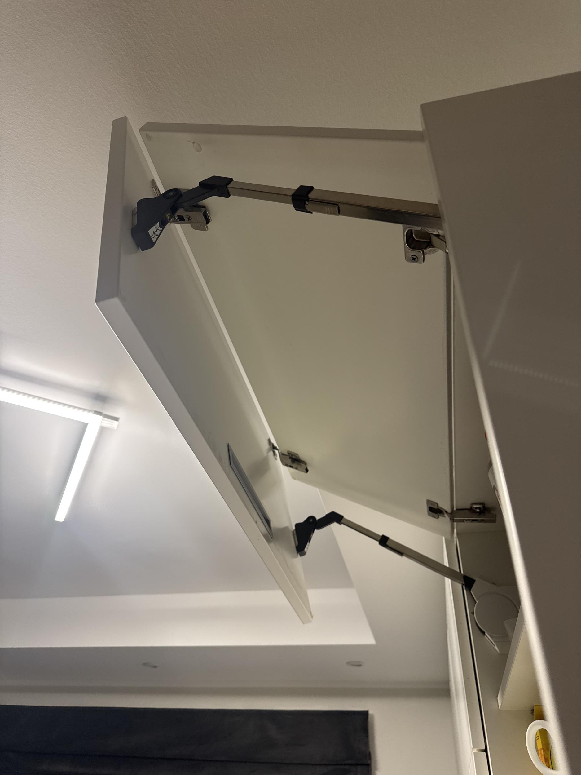 Ühe uksehinge kinnitus kapis vajab väljavahetamist/parandust, sest see ei püsi enam korralikult kinni. Teised hinged vajavat reguleerimist.