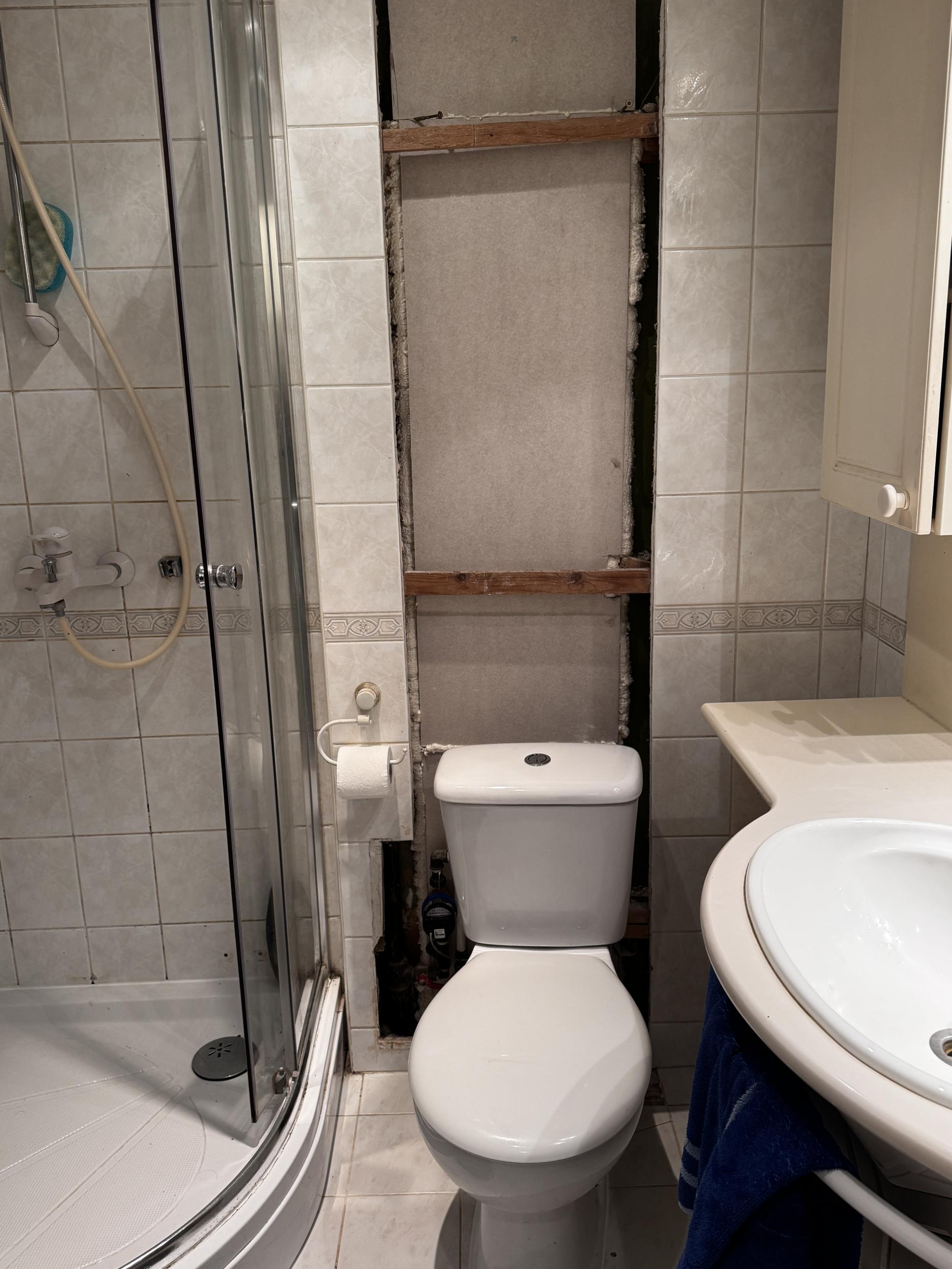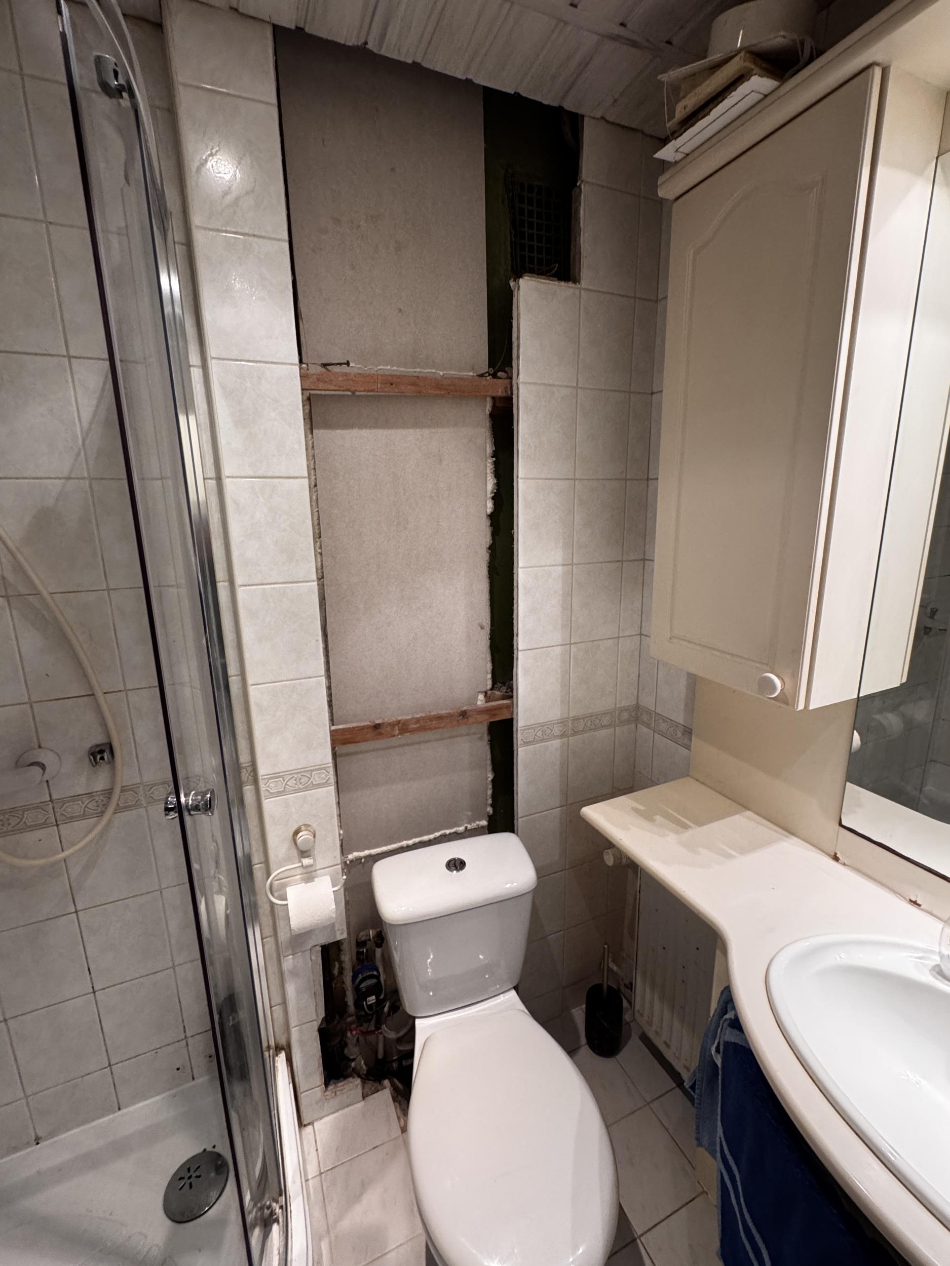 Vaja oleks taastada vannitoa siseviimistlus, peale püstaku vahetust.Lisada ventilatsiooniava nagu pildil ja juurdepääs veemōōtjale.Lisaks vannitoaukse lävepakul vajab vahetamist paar plaati. Seinaplaadid vaataksin ise juurde.