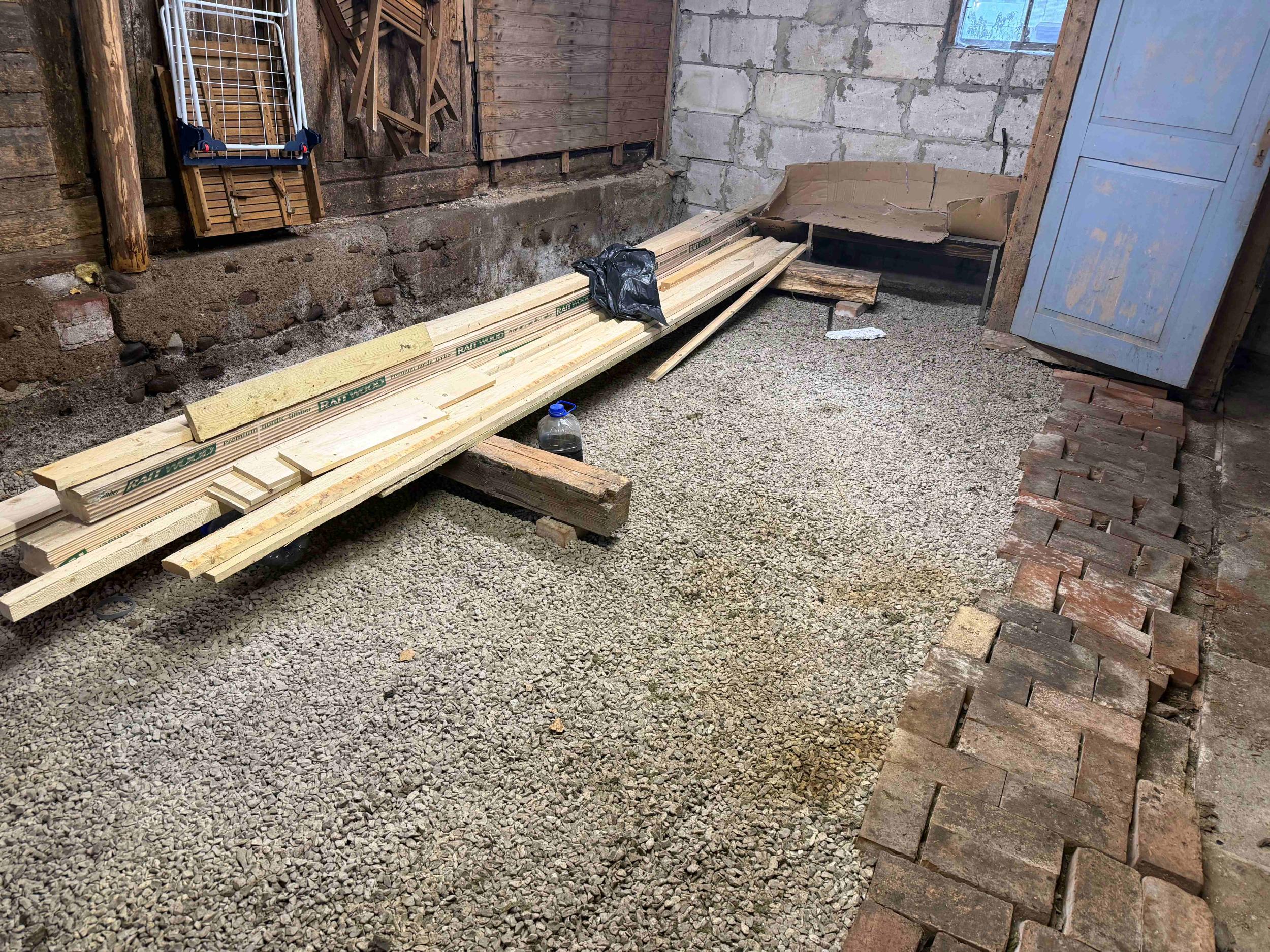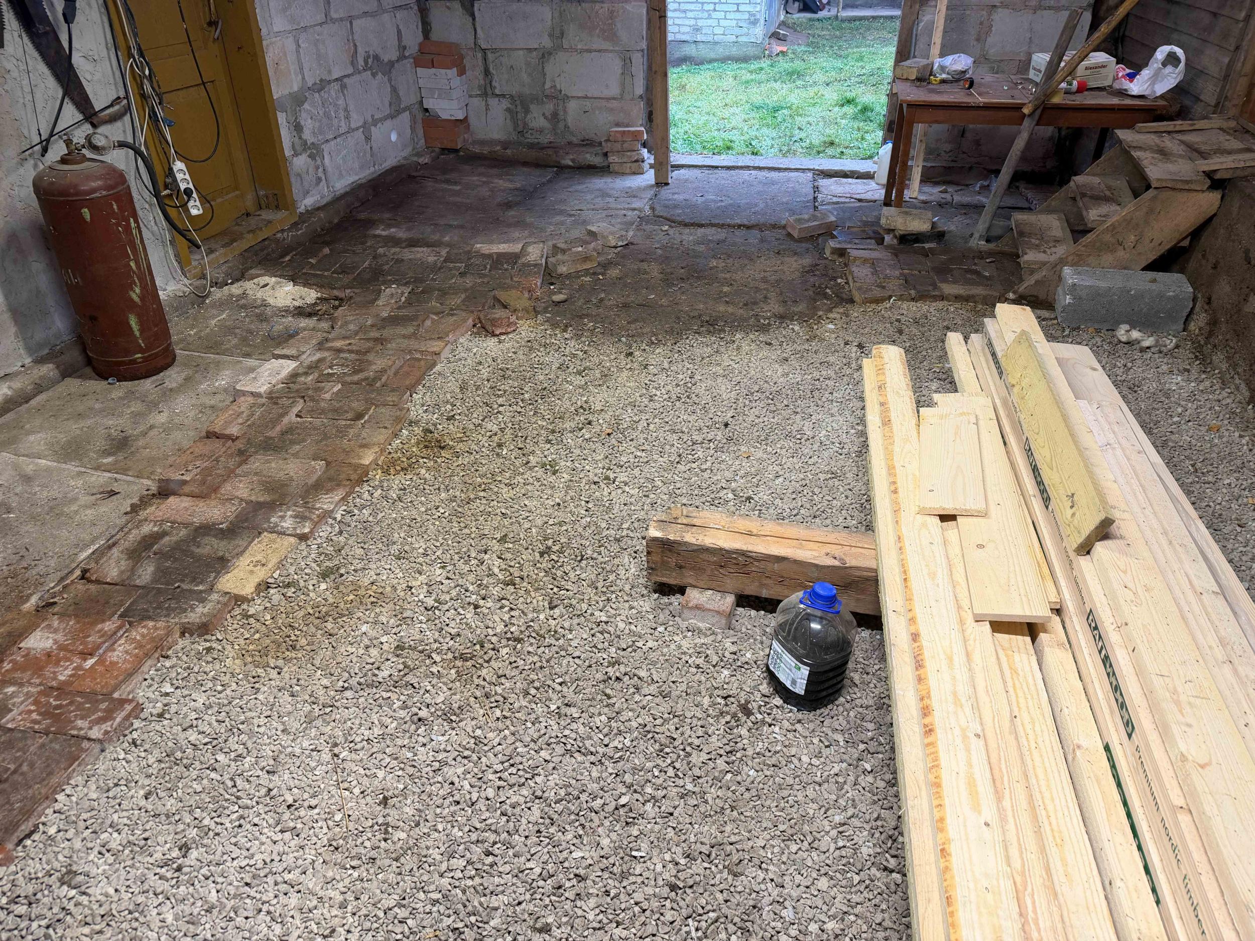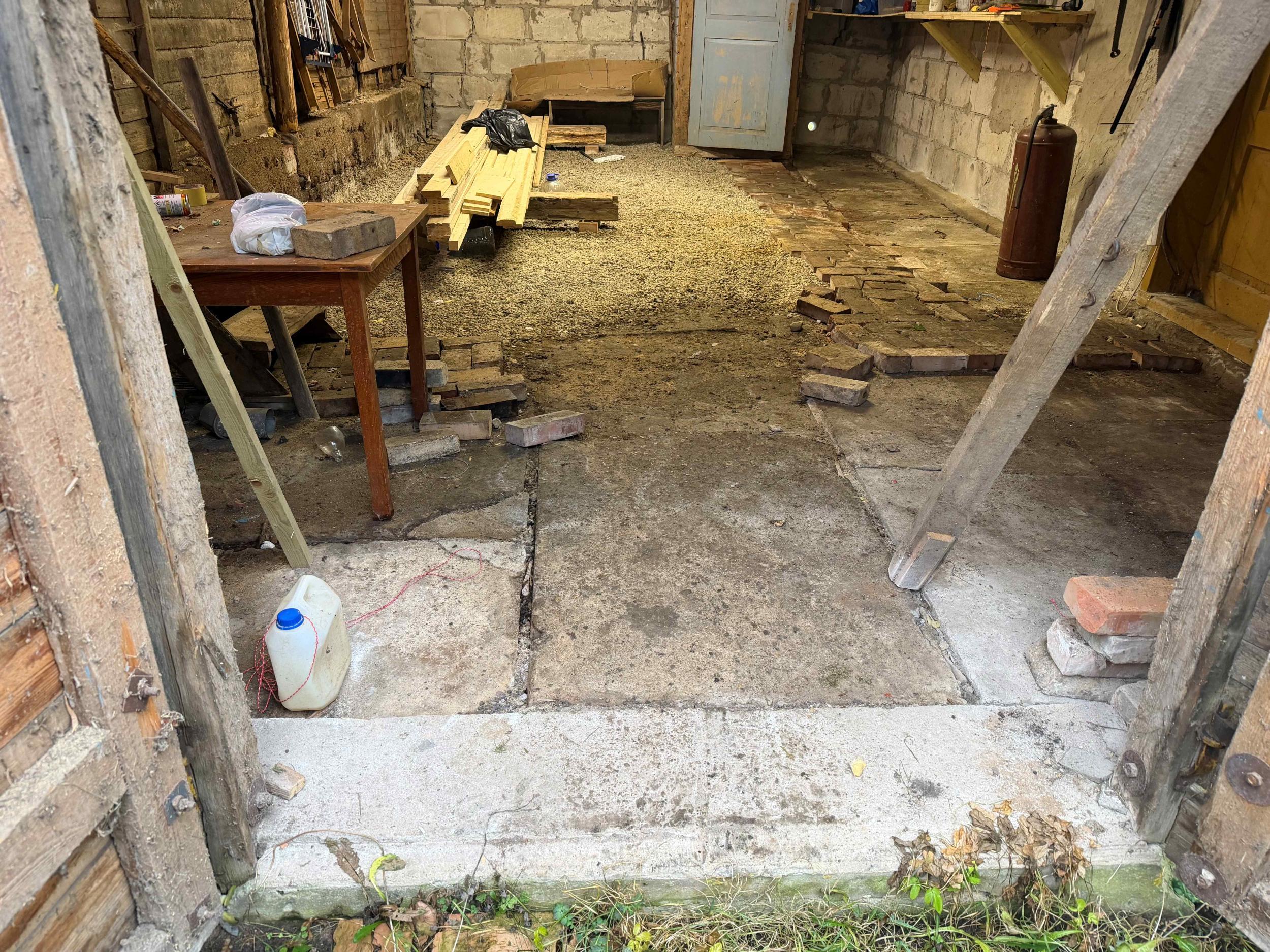 Teostada kuuri täielik tühjendamine ja ettevalmistus uue betoonpõranda rajamiseks. Tööde hulka kuulub vana kuivkäimla lammutamine, kogu olemasoleva puitmaterjali eemaldamine ja utiliseerimine, põrandal oleva killustiku ning vanade telliste äravedu. Kogu ruumi ulatuses tuleb olemasolev betoonpõrand välja piigata (plaadi paksus ca 7 cm) ning seejärel teostada pinnase väljakaeve ca 25 cm sügavuselt. Kõik tekkivad jäätmed tuleb ära vedada ja nõuetekohaselt utiliseerida.
