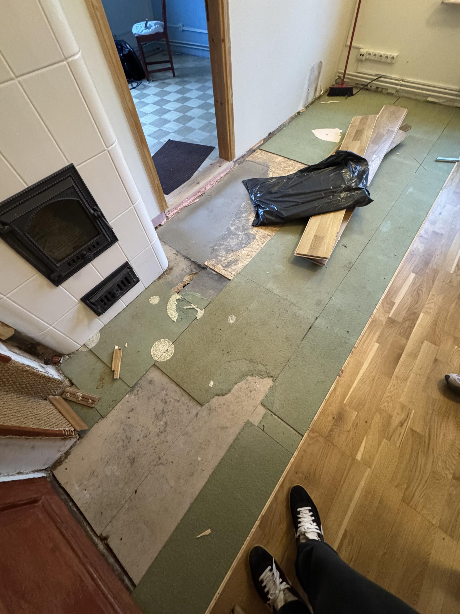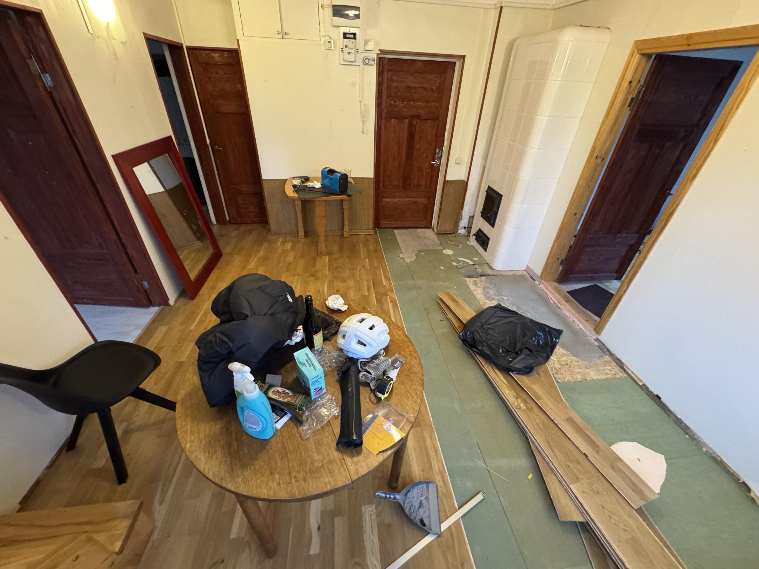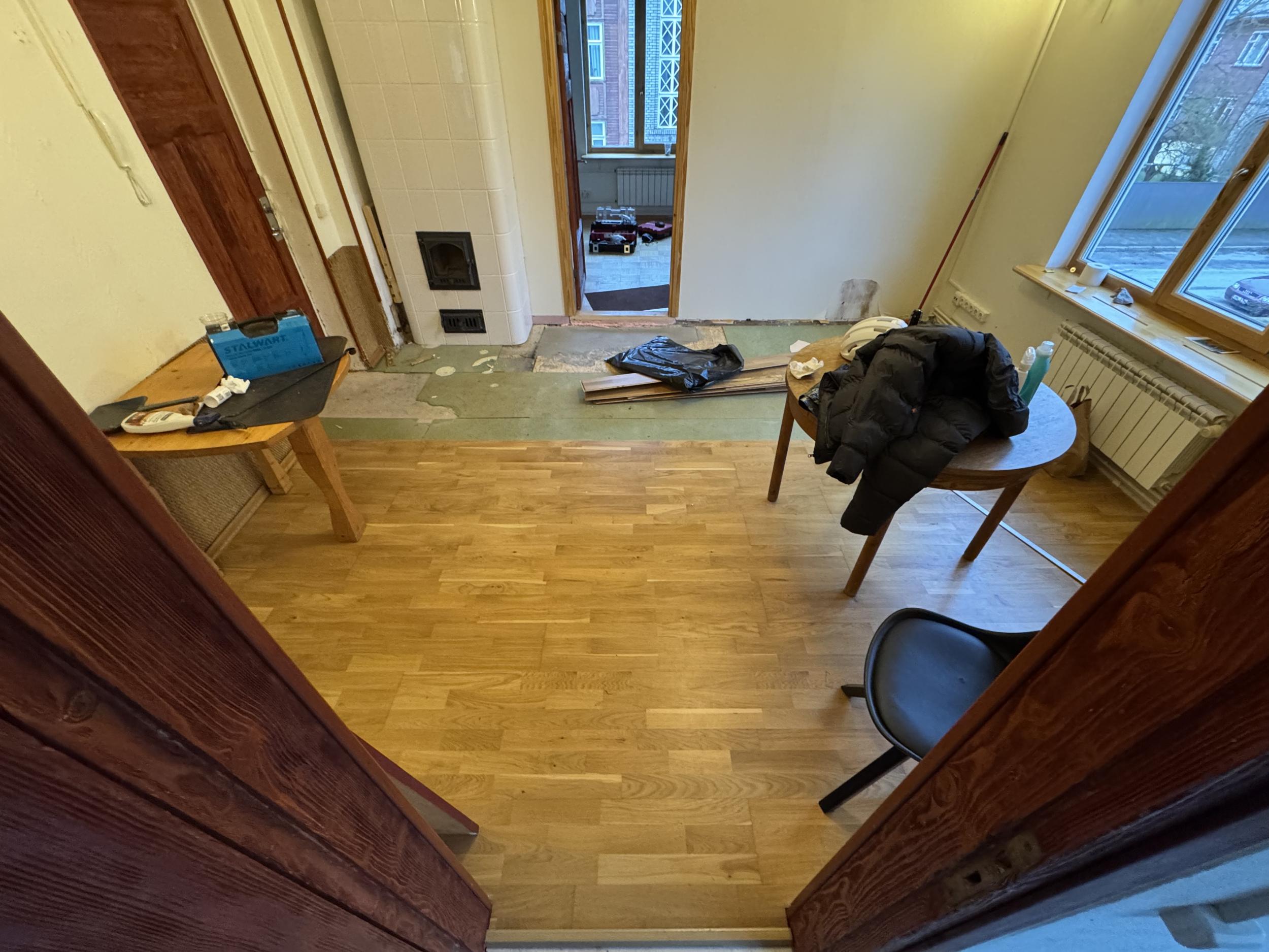 Põrandad vaja demonteerida kuni vahelae talani. Köögiosas on vajalik töö teostamiseks demonteerida köögimööbel ja see koos tehnikaga teisele korrusele teisaldada hoiustamiseks (mööbel peab terveks jääma).