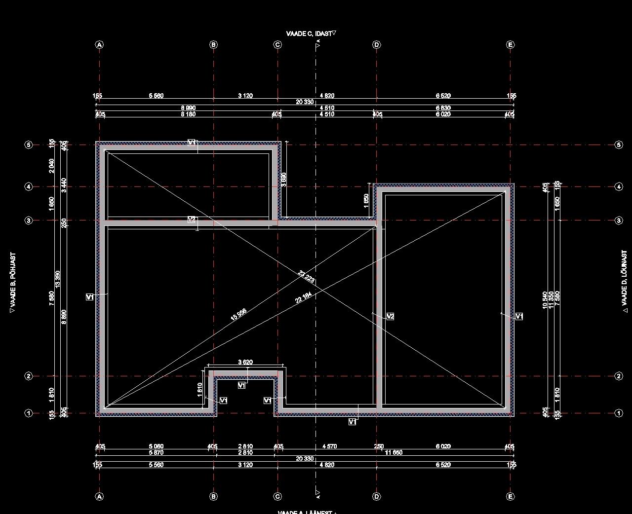 vee ja kanalisatsiooni läbiviikude täpset märkimist ja teostamist vundamendis