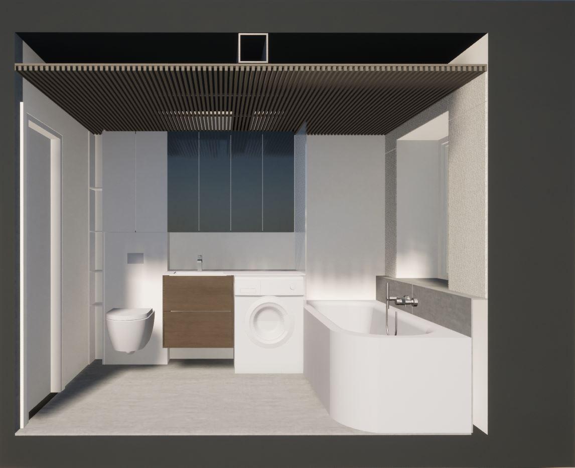 - valamu , pesumasina, soojatarbeveega käterätikuivati ja vanni jaoks veeotsade ja kanalisatsiooni vedamine (osaliselt seina süvistatuna)