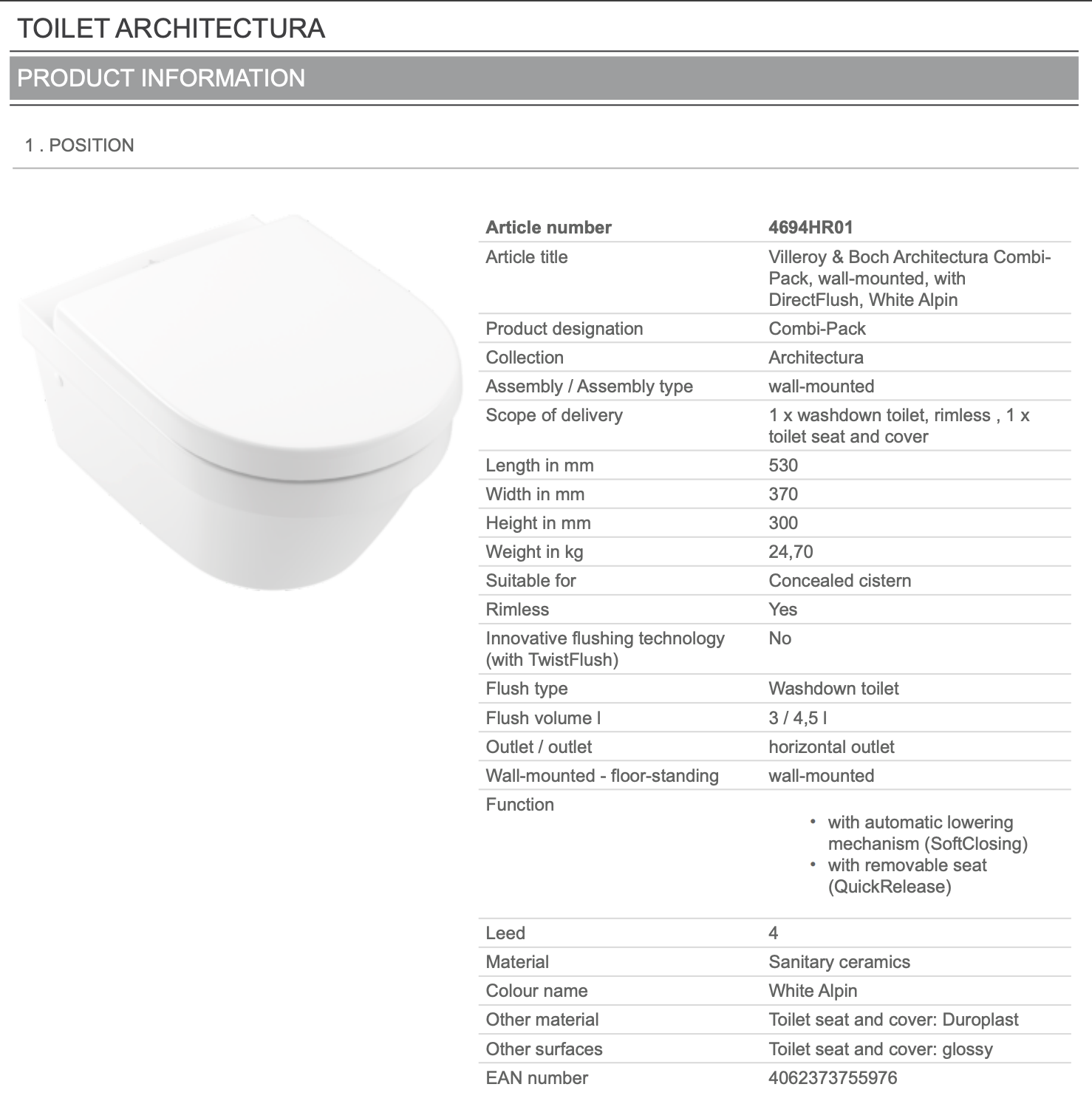 Paigaldusraam, sisseehitatud loputuskast, loputusmehhanism, loputusnupp ja seinaplaadid jäävad muutmata ning neid ei eemaldata.
